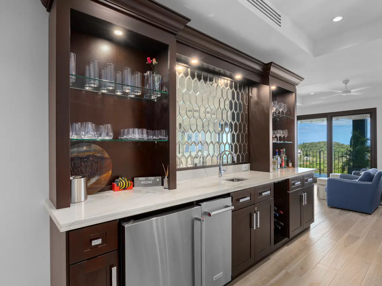 Enjoy luxury living with stunning ocean views in this incredible 4-bedroom, 4-bathroom home spanning 3390 sq ft. Located in the exclusive 360 Splendor del Pacifico Flamingo #502 is a beautiful property that offers breathtaking views of the ocean, sandy bays, and mountain ranges from every room. This property comes fully-furnished and decorated with imported high-end furniture and artwork from the US. A highlight of this home is the private 1500 sq ft rooftop retreat, complete with a jacuzzi, kitchen bar, and a cozy lounging area—ideal for entertaining or relaxing while taking in the panoramic views. Upon entering the condo you are immediately greeted with a spacious kitchen, designed for both functionality and style. Solid wood cabinetry, high-end appliances, gorgeous granite countertops, along with a full-wall custom bar with an ice maker and wine fridge are sure to delight! The kitchen flows seamlessly into the open-concept dining and living areas. The living room, with 2 seating areas, extends effortlessly onto a generous outdoor veranda, creating the perfect setting to enjoy the serene beauty of the coastline. There are 4 generous-sized bedrooms, each one beautifully decorated. Three of them have King beds with oversized ensuite bathrooms with marble walls and showers with a view! The fourth bedroom has a Queen bed and a balcony that overlooks Playa Flamingo. They all come with built-in closets and direct access to a private balcony, ensuring comfort and elegance for every guest. As part of 360 Splendor del Pacifico Flamingo, residents enjoy access to resort-style amenities, including a sparkling infinity pool overlooking the white sands and tropical waters of Playa Flamingo, a fully equipped rooftop gym, a breakfast restaurant and bar, jacuzzis, 24 hour security, elevators, shuttle golf carts down to the Marina or beach, and an elevator parking garage. Whether you want to lounge poolside, stay active, or explore the vibrant Flamingo Beach area, this community offers everything you need for an exceptional coastal lifestyle. This condo is located just up the hill on the Northridge past the brand new Flamingo Marina! Can you imagine seeing your boat from your condo! Nearby there are wonderful restaurants, a medical center and pharmacy, shopping, and grocery stores. This condo would make a perfect full-time or part-time residence. What truly sets this community apart are the spectacular, uninterrupted views of the Pacific Ocean, Flamingo Marina, and the surrounding lush landscapes. From sunrise to sunset, every corner of this community provides picture-perfect scenery, making it a one-of-a-kind paradise. 360 Splendor del Pacifico Flamingo #502 offers the perfect combination of modern luxury, coastal charm, and world-class amenities. Don’t miss this opportunity to own a piece of paradise. Contact us today to schedule a viewing!