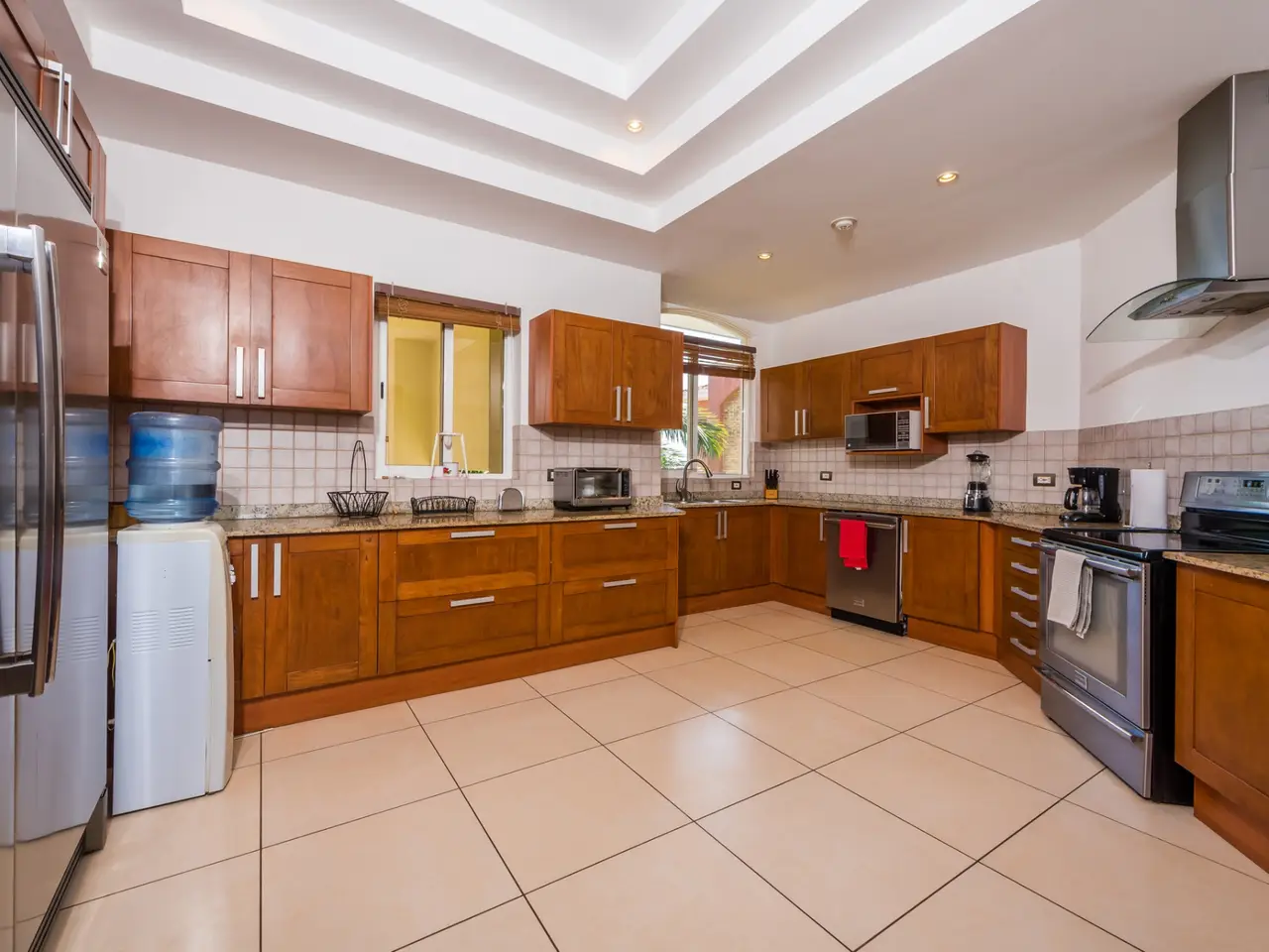 This stunning Penthouse offers the ultimate luxury living experience with its prime location soaring above a white sand beach and breathtaking views of the Pacific ocean. The spacious floor plan spans 5200 sq ft of the 6th floor and is designed to cater to all your entertainment needs, including a billiard table in the main living area. There are two indoor living rooms, an indoor and outdoor dining table, and there is a massive terrace off the living area featuring a large hot tub and plenty of space for outdoor entertaining, while soaking up the incredible views of the ocean! This double Penthouse offers 5 bedrooms and 6 bathrooms and it sleeps 16 people. Four of the five bedrooms have ocean views, and each bedroom includes its own spacious balcony. Whether you're looking for a permanent home or an investment opportunity, this penthouse is an excellent choice. Currently, it is used as a vacation rental, and its location across the street from the beach and near world-class surf breaks make it a popular choice for visitors. The complex boasts world-class amenities including two resort-style pools, two gyms, a rooftop deck with panoramic ocean and mountain views, and two clubhouses with common BBQ areas, refrigerators, and ice machines. Additionally, the penthouse comes with a membership to the exclusive Langosta Beach Club. This members-only Beach Club offers a full service restaurant and bar with both pool and beachside seating, cabanas, wellness center and unique on-site tours and activities. Enjoy lounging by the infinity pool while sipping your favorite drink and basking in the sun. Located in Playa Langosta, just south of Tamarindo in the Guanacaste Province of Costa Rica, this area is known as the "Golden Coast" and is renowned for its spectacular beaches along the Pacific Northwest. This area has some of the best surfing, snorkeling, deep sea fishing, sunset catamaran tours, and turtle excursions available. There are private schools, many restaurants, and clinics nearby. It is located 1 hour from the International Liberia Airport. Don't miss the opportunity to experience the luxury of coastal living in your very own real estate investment. The Penthouse is calling for you!