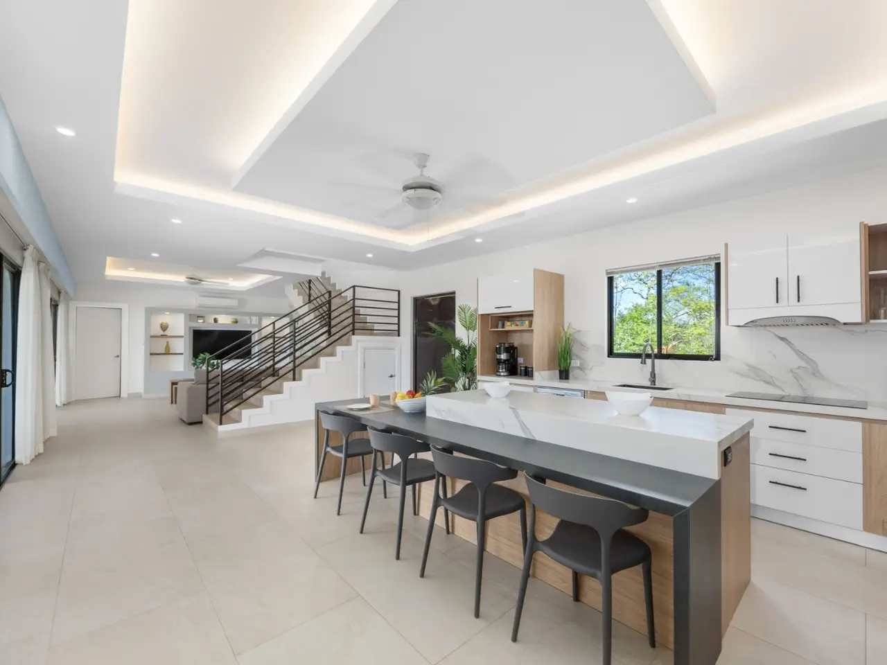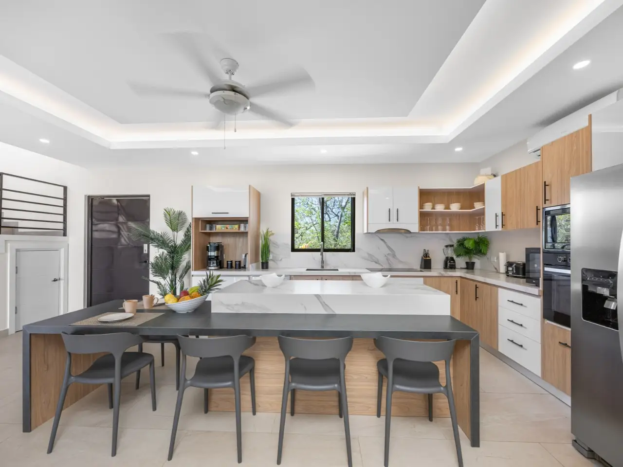 Villa Chiric – Luxury Hilltop Villa with Breathtaking Ocean Views Welcome to Villa Chiric, a stunning hilltop estate with panoramic views of Tamarindo and Playa Grande. This luxurious retreat offers the perfect balance of elegance, comfort, and tropical charm, making it ideal for family vacations, romantic getaways, or a private escape with friends. Featuring a beautifully designed main home with 4 bedrooms and 4.5 bathrooms, along with an attached but separate 2-bedroom, 2-bathroom guest casita, Villa Chiric provides ample space and privacy for all. The main villa has been decorated with care by a French interior designer, giving each room a stylish and welcoming atmosphere. All four bedrooms are spacious and have large floor to ceiling patio doors that showcase the ocean and jungle views. Each bathroom is thoughtfully finished with walk-in showers, modern fixtures, and elegant touches to create a spa-like experience. The open-concept living area flows naturally onto the outdoor terrace, with cozy seating, a flat-screen TV, and high-speed internet, making it a perfect space to unwind after a day in the sun. At the heart of the home is a fully equipped gourmet kitchen with modern appliances, ideal for cooking your favorite meals. Just a short drive away, you'll find a shopping center and the popular Automercado grocery store, offering a wide selection of international products to meet your needs. Step outside and enjoy the breathtaking infinity pool that overlooks the coastline of Playa Grande and the estuary. The large terrace is perfect for relaxing under the sun or enjoying a cocktail at sunset, with shaded areas, sun loungers, and multiple cozy seating spots. An outdoor dining area and barbecue setup make it easy to enjoy meals al fresco while taking in the views and ocean breeze. The private guest casita includes 2 additional bedrooms, 2 bathrooms, a comfortable living space, and its own kitchen. It's the perfect spot for visiting guests, extended family, or even as a rental opportunity to generate extra income. Villa Chiric is just minutes from the vibrant town of Tamarindo, famous for its surf-friendly beaches, beautiful scenery, and lively restaurants and shops. Playa Grande and nearby nature reserves are also close by, offering even more ways to explore the best of Costa Rica’s Pacific coast. With its unbeatable views, luxurious design, and prime location, Villa Chiric is a rare find in Tamarindo. Whether you’re looking for a peaceful retreat, a family home, or a smart investment, this villa delivers it all in style. Reach out today for a private showing!