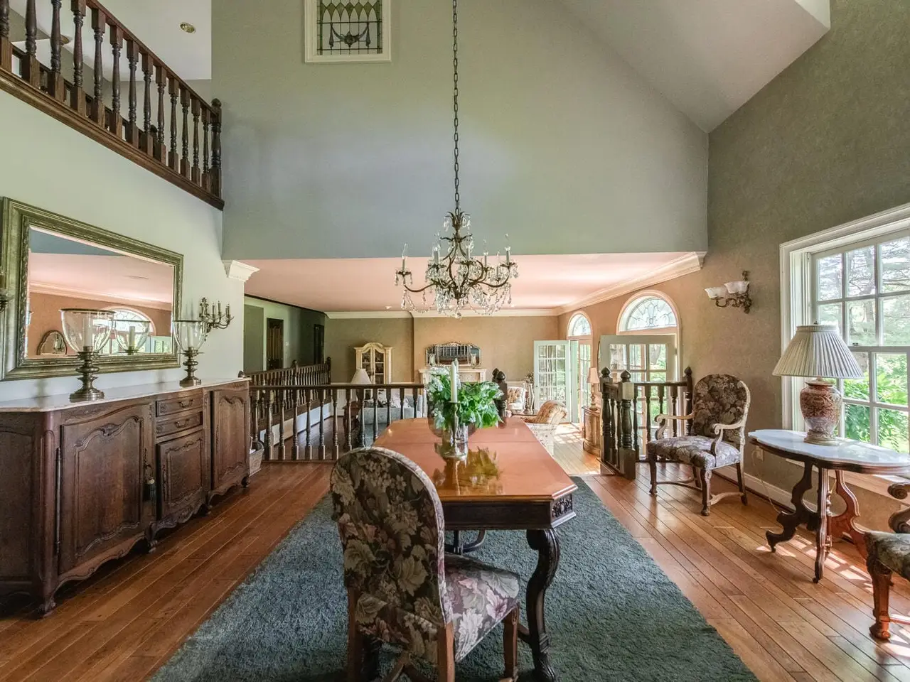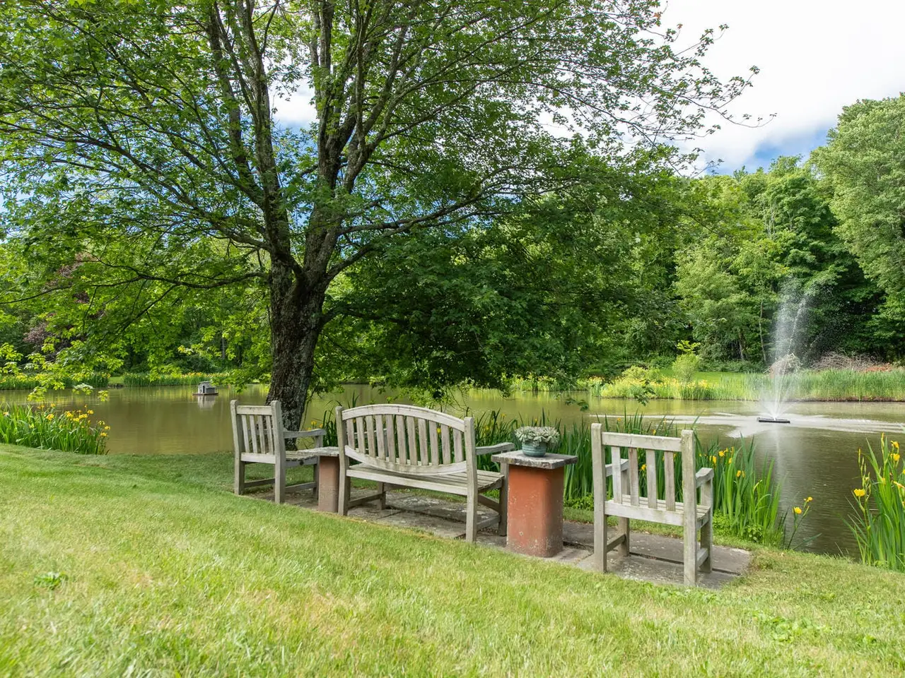 An Enchanting Stone Manor-First Time Offered. Set amidst exquisitely landscaped grounds in the heart of the Hudson Valley, this extraordinary stone manor is a triumph of design, craftsmanship, and setting gracefully secluded, yet just minutes from the bucolic village of Millbrook. Meticulously conceived and built to the highest standards, the estate is being offered for the very first time. Approached via a private drive and framed by blooming perennials and mature ornamental trees, the residence exudes timeless elegance. Inside, a welcoming foyer opens to a soaring great room, where floor-to-ceiling windows bathe the space in natural light and frame captivating views of the landscape beyond. The flowing floor plan encourages effortless living and entertaining: a formal dining area seamlessly adjoins the great room, while a chefs kitchen expansive and beautifully appointed offers space to gather, create, and celebrate. A walk-in pantry, laundry suite, and mudroom connect to the three-car garage, ensuring discreet everyday functionality. Adjoining the kitchen, the relaxed and inviting family room centers around a classic wood-burning fireplace, leading to a sunlit conservatory wrapped in glass, where tranquil views of a spring-fed pond and rolling lawn unfold a sanctuary in every season. The main level features a flexible bedroom suite ideal as a primary suite or luxurious guest quarters alongside a second bedroom and a stately home office. Upstairs, a sprawling primary suite serves as a true retreat, complete with an elegant bath, a massive custom walk-in closet, and an additional space perfect for a studio, craft room, or dressing lounge. Beyond the main residence, an extraordinary party barn offers limitless versatility host grand events, showcase a car collection, or create a sport court or gallery space. Below, a bespoke winemaking facility includes a climate-controlled, glass-enclosed cellar designed for aging and displaying a curated collection. Perfectly positioned with convenient access to dining, hiking and biking trails, the Taconic State Parkway, and Metro-North rail, this estate offers an exceptional lifestyle amid the timeless beauty of the Hudson Valley.
