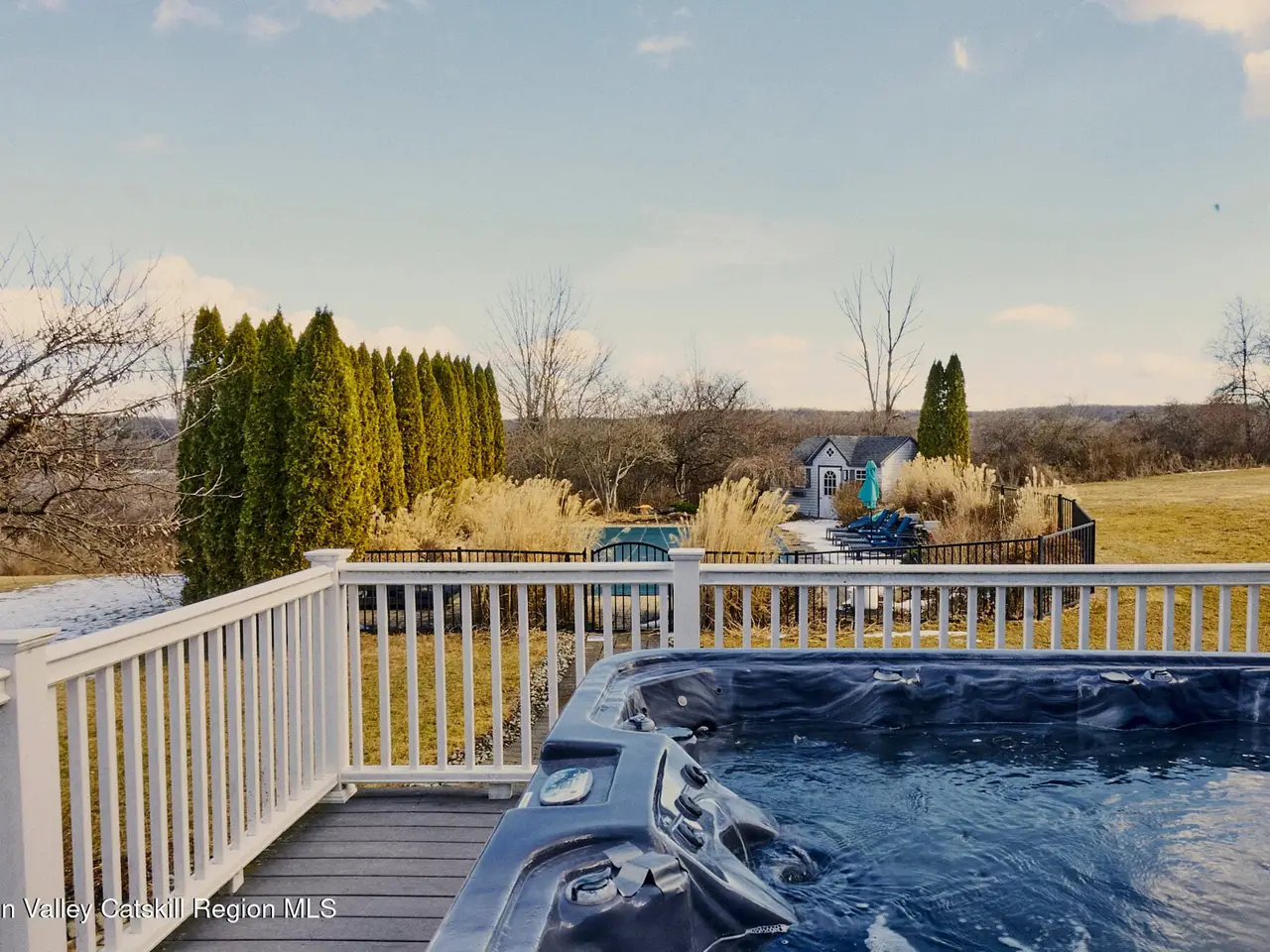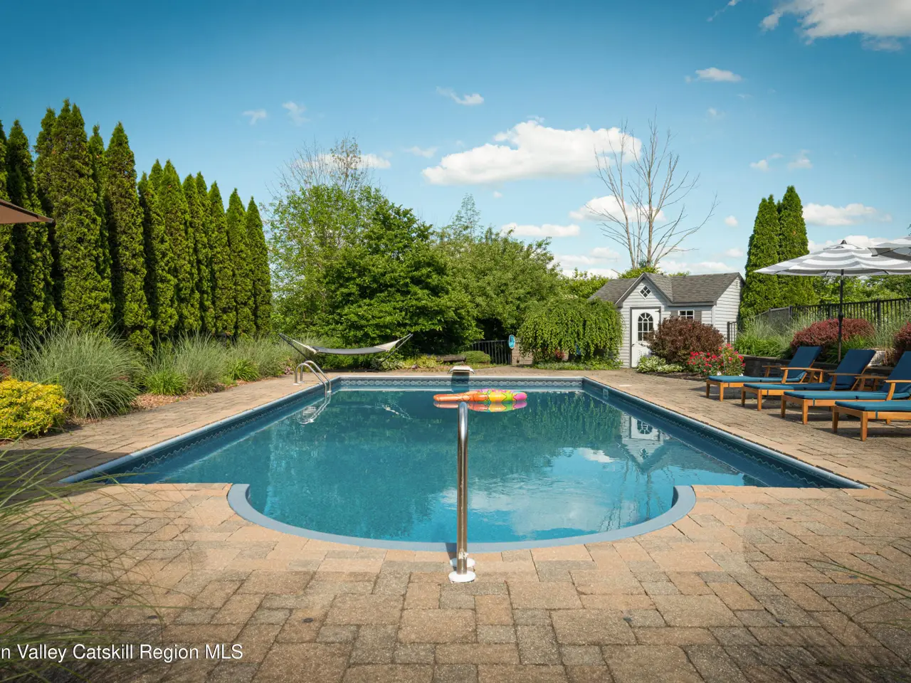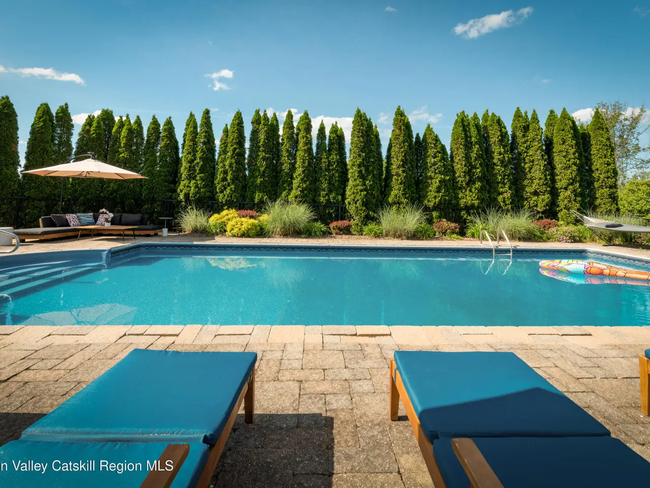 Set amid the rolling hills of Pleasant Valley, The Gallagher offers a harmonious blend of financial opportunity and country tranquility, boasting nearly 200K in annual rental revenue. Designed for gatherings and getaways, this 5-BR, 3.5-BA home unfolds across an open, light-filled layout. The heart of the home is the expansive chef's kitchen - outfitted with dual convection ovens, a gas range and wine fridge, it's designed to handle everything from intimate meals to festive gatherings.Cherry cabinetry provides ample storage, while the granite countertops and large island with prep sink offer abundant workspace. A separate casual dining area is the perfect spot for coffee, bathed in morning light from the large bay window and adjacent to the kitchen is a formal dining room with seating for 10.The massive 1st Fl primary suite is a serene retreat, featuring a gas fireplace, private deck with hot-tub and an ensuite bath with glass shower and dual vanities. Upstairs, two generously sized bedrooms with walk-in closets share a full bath. A cozy loft lounge overlooks the main living area, providing a serene space for reading or working from home.The finished walkout lower level is a haven of entertainmentwhere movie nights stretch late in the home theater and friendly competition takes center stage in the game room. Outside, the heated saltwater pool and hot tub invite guests to linger a little longer.Sitting on 5.62 private acres, the central location offers access to some of the Hudson Valley's most charming towns and attractions. Rhinebeck, with boutique shopping and farm-to-table restaurants, is just a short drive away. Millbrook, known for its equestrian culture, wineries and rolling countryside, is equally close. For outdoor enthusiasts, Taconic Hereford State Forest and Innisfree Garden provide miles of trails. The Gallagher is an income-generating retreat that balances investment savvy with the soul of a countryside escape, all just 2hr from NYC.