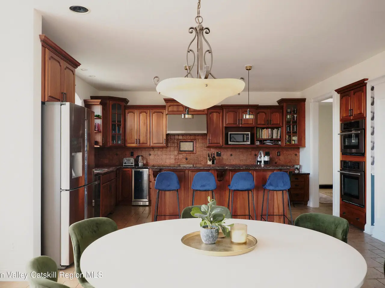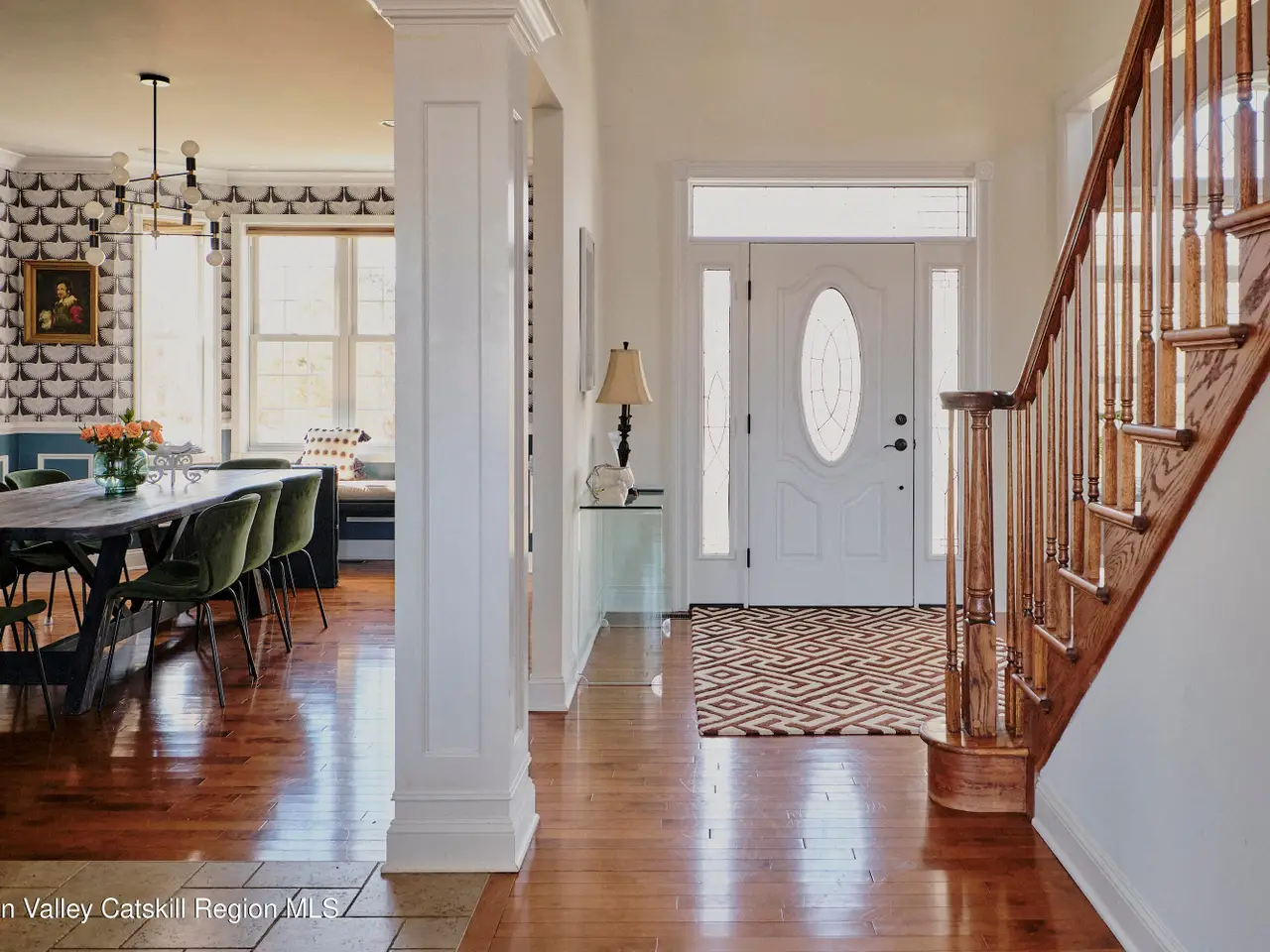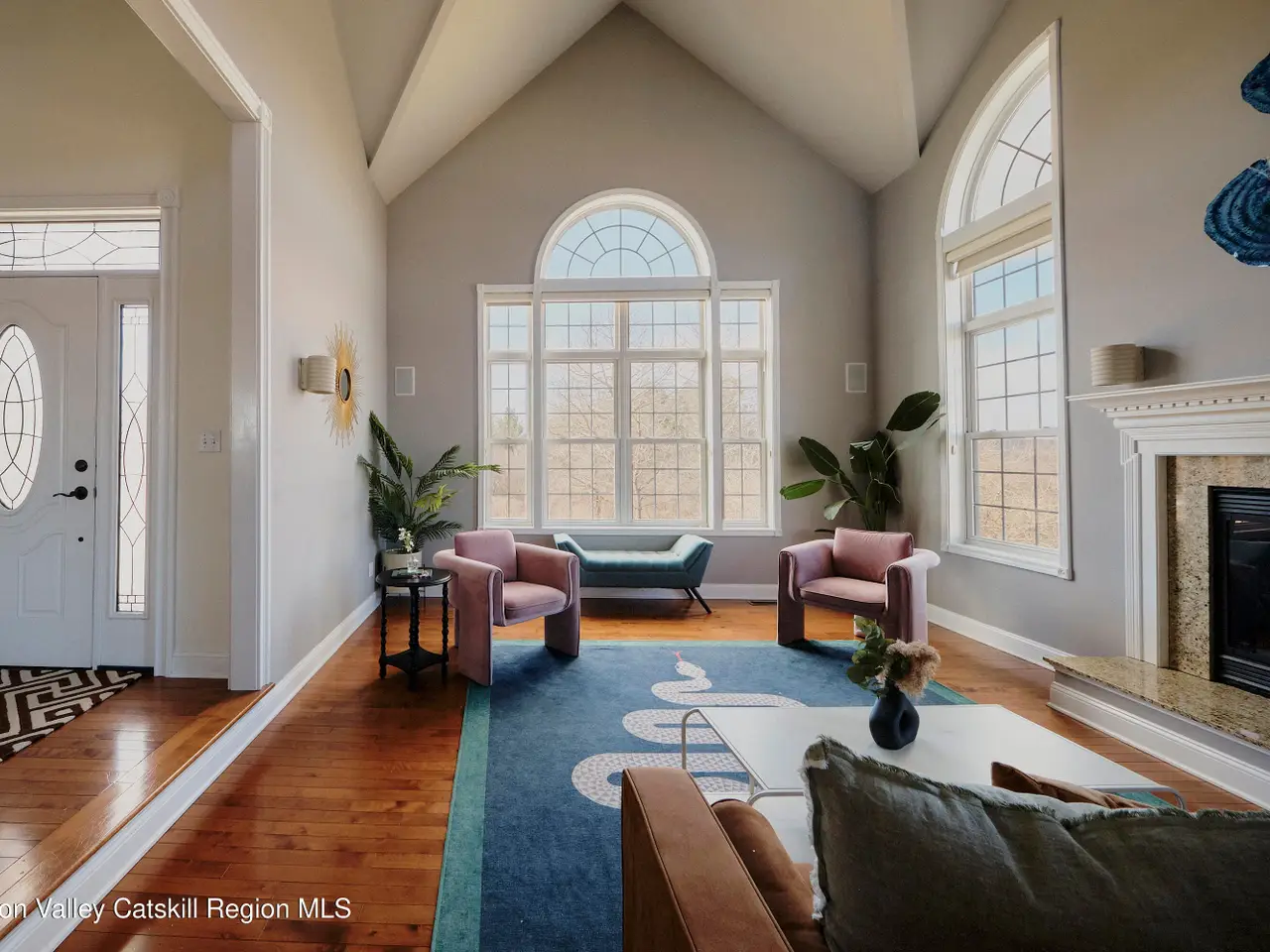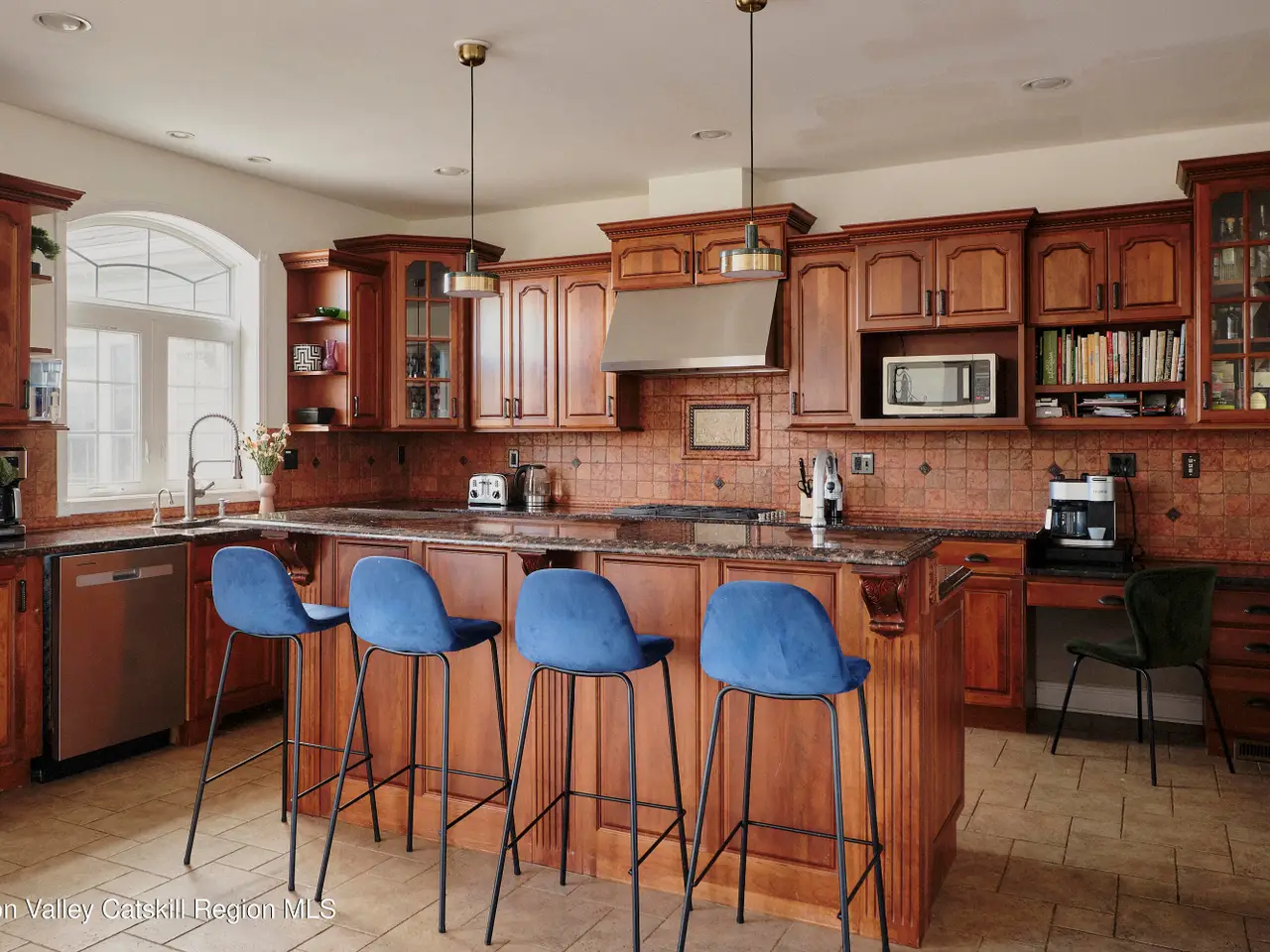 Set amid the rolling hills of Pleasant Valley, The Gallagher offers a harmonious blend of financial opportunity and country tranquility, boasting nearly 200K in annual rental revenue. Designed for gatherings and getaways, this 5-BR, 3.5-BA home unfolds across an open, light-filled layout. The heart of the home is the expansive chef's kitchen - outfitted with dual convection ovens, a gas range and wine fridge, it's designed to handle everything from intimate meals to festive gatherings.Cherry cabinetry provides ample storage, while the granite countertops and large island with prep sink offer abundant workspace. A separate casual dining area is the perfect spot for coffee, bathed in morning light from the large bay window and adjacent to the kitchen is a formal dining room with seating for 10.The massive 1st Fl primary suite is a serene retreat, featuring a gas fireplace, private deck with hot-tub and an ensuite bath with glass shower and dual vanities. Upstairs, two generously sized bedrooms with walk-in closets share a full bath. A cozy loft lounge overlooks the main living area, providing a serene space for reading or working from home.The finished walkout lower level is a haven of entertainmentwhere movie nights stretch late in the home theater and friendly competition takes center stage in the game room. Outside, the heated saltwater pool and hot tub invite guests to linger a little longer.Sitting on 5.62 private acres, the central location offers access to some of the Hudson Valley's most charming towns and attractions. Rhinebeck, with boutique shopping and farm-to-table restaurants, is just a short drive away. Millbrook, known for its equestrian culture, wineries and rolling countryside, is equally close. For outdoor enthusiasts, Taconic Hereford State Forest and Innisfree Garden provide miles of trails. The Gallagher is an income-generating retreat that balances investment savvy with the soul of a countryside escape, all just 2hr from NYC.