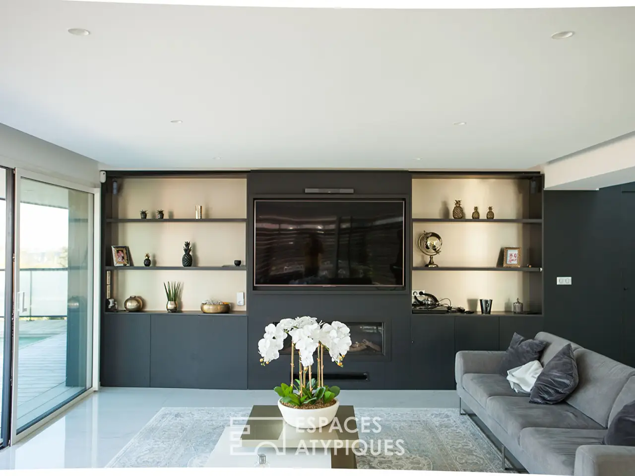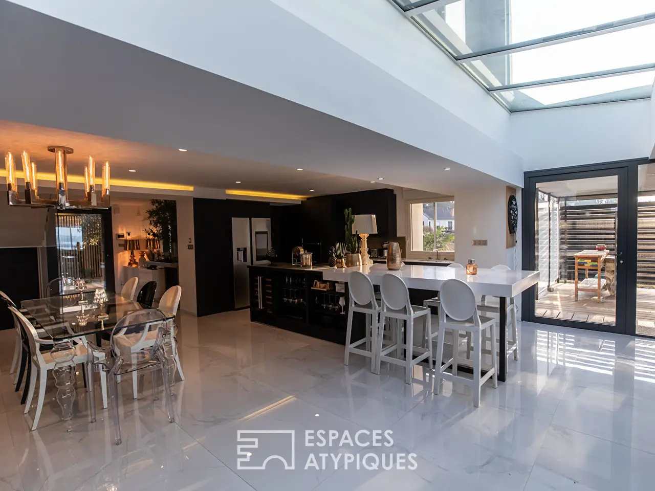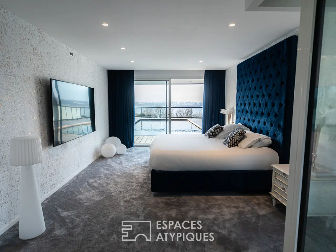 Located in the town of Plougastel-Daoulas, placed in a dominant position facing the sea, this villa of 300 m2 with swimming pool is erected on a plot of approximately 1600 m2. Nestled in peace, this resolutely contemporary property multiplies the sea views of the harbor of Brest to offer, in the evening, the spectacle of sunsets over the sea and the lights that illuminate the city and its port. Past the entrance, we are literally caught up in the panorama before our eyes. The sculptural living room of more than 90 m2 plays with minimalism so that the sea view always remains in the foreground. Here, the lounge-living room and kitchen spaces come together to decline softness, light and color, and display, in a contemporary vein, a spirit of conviviality. The modern kitchen is adorned with a central island allowing you to have lunch with the family. The masterful living room of almost 45 m2 and its large bay windows, abolishes the border between the interior and the exterior to open onto the terrace and its breathtaking view. In the continuity we discover a very large parental suite widely open on the terrace and its swimming pool and equipped with an XXL dressing room and a bathroom. A back kitchen completes the services of this first level. A flight of steps leads us to the first level and serves 4 generous bedrooms, 3 of which open onto the big blue, and a bathroom. The lower level, meanwhile, houses an independent apartment of more than 60 m2 to accommodate family, friends, or people wishing to develop a professional or rental activity independently. It consists of a kitchen, a living room, 2 bedrooms and a bathroom. This level also houses a gym that can easily be transformed into a projection room, a wine cellar, a double garage of 55 m2 and a technical room. On the outside, fitted out with several spaces, the terrace and its unparalleled view of the maritime ballet will allow you to share convivial moments and dive into the azure blue of the swimming pool for refreshing swims to the extent of your desires. In the evening, you can enjoy the wonderful sunset over the sea and the city of Brest comfortably installed in the jacuzzi. Adjoining the house, sheltered from prying eyes, we discover a real living room with a summer kitchen and its dining area will certainly allow you to spend real moments of sharing with family or friends. To complete the services of this property, the property has a double carport and a storage space. Graphic and refined lines, a magnificent luminosity, very beautiful volumes, comfortable and functional spaces, are the assets of this beautiful house ideally located? an invitation to the sweetness of life. This property, unique in its kind, offering a sea view, with these sublime sunsets, an exceptional quality of life, a magical place will delight lovers of contemporary habitat with sea spray. Here, the city, although very close, is nothing more than a distant memory: you can contemplate it but not hear it. Located a few 10 minutes from the city center of Brest, 3 km from amenities and a few steps from the seaside ENERGY CLASS: B / CLIMATE CLASS: A. Estimated average amount of annual energy expenditure for standard use, based on energy prices for 2021: between EUR1,500 and EUR2,060 Contact: Laurent on 06.62.33.89.91 RSAC: 852199579 BRESTREF. 1543EAFAdditional information* 12 rooms* 7 bedrooms* 1 bathroom* 2 shower rooms* Floor : 1* Outdoor space : 1100 SQM* Parking : 6 parking spaces* Property tax : 1 818 €Energy Performance Certificate Primary energy consumption b : 81 kWh/m2.yearHigh performance housing*A*81kWh/m2.year2*kg CO2/m2.year B*C*D*E*F*G Extremely poor housing performance* Of which greenhouse gas emissions a : 2 k
