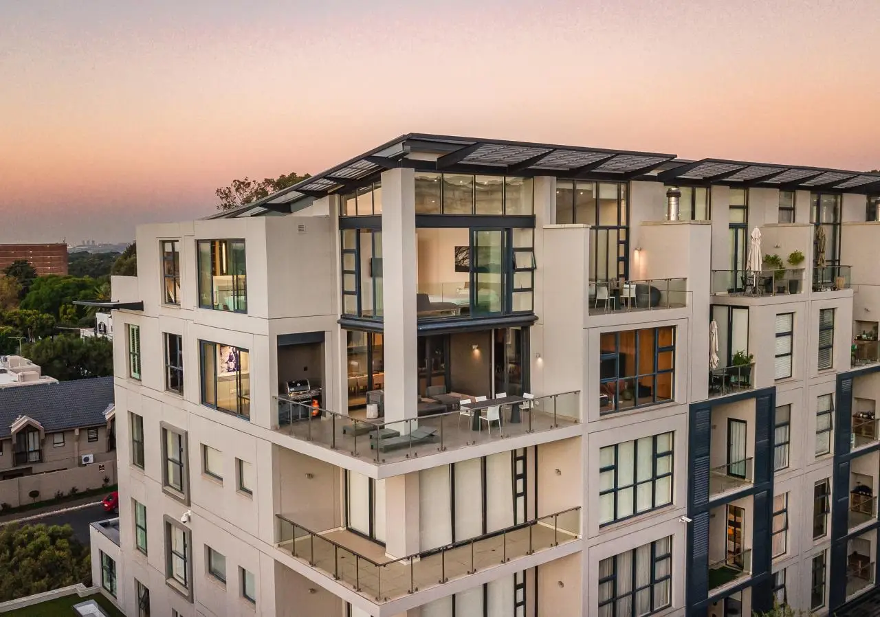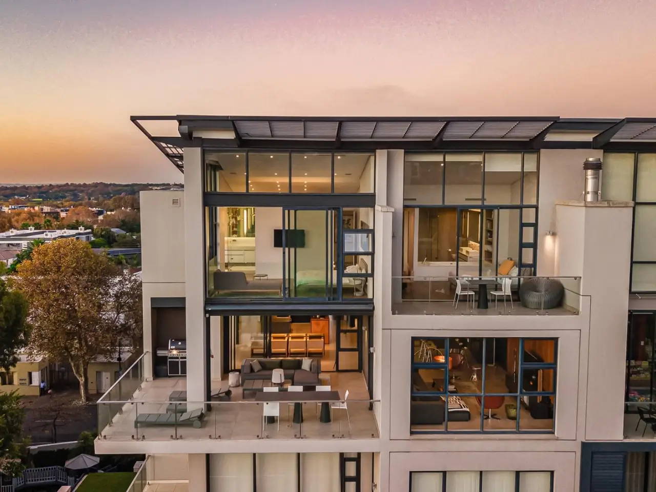 Experience an unparalleled lifestyle in this exquisite 520 sqm penthouse, perfectly situated in the prestigious Houghton Estate. This sprawling residence is designed to offer complete privacy as a bookend penthouse apartment, and showcases unobstructed views of the beautifully manicured Jack Nicklaus designed golf course as well as the vibrant skylines of Rosebank and Sandton. The penthouse features four generously sized bedrooms and four luxurious bathrooms, each thoughtfully designed with elegant finishes and superior comfort in mind. The living spaces are a testament to ultra-modern living, featuring an expansive chef's kitchen equipped with high-end Siemens appliances, complete with scullery and laundry areas. The seamless integration of the kitchen with the dining and living rooms creates an inviting open-plan space that is perfect for entertaining. A private study, a T.V room, a dining area, and a special playroom for kids make it an ideal setting for family living. The perfect covered outdoor entertainment area with magnificent views to enjoy life to. Special attention has been given to the unique amenities that elevate this property into a class of its own. These include a temperature-controlled wine room with an innovative rack system made from German reinforced polystyrene, and a Control 4 smart AV system that can be controlled via an app, ensuring your environment is always perfectly attuned to your preferences. The living experience is further enhanced by state-of-the-art B&O ceiling-mounted speakers, centralized water heating, backup generator, ducted air conditioning, and underfloor heating throughout the apartment, ensuring comfort and convenience no matter the season. This penthouse is more than just a place to live, it is a sanctuary where every detail works in harmony to create an atmosphere of refined elegance and luxurious tranquility. Make it your new home and embrace a life of sophistication and serenity at The Houghton Estate.