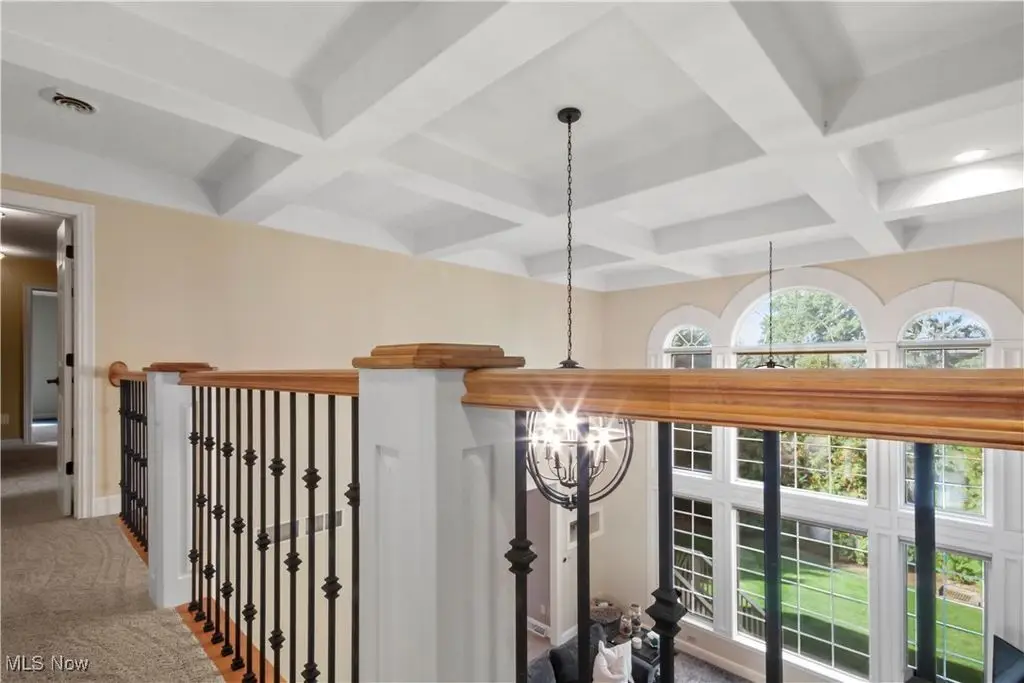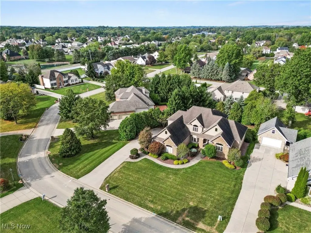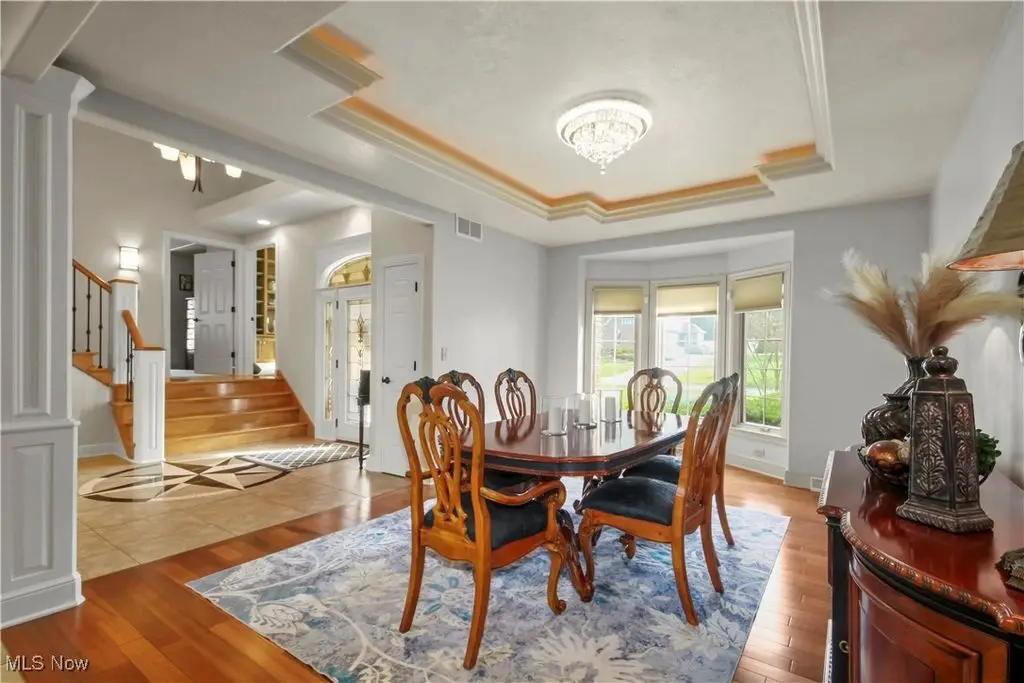 This luxurious custom-built home with over 5,500 sq ft of living space welcomes you in Canterbury Creek. Step inside the grand foyer with custom decorative tile, soaring chandelier, and hardwood staircase with wrought iron accents.The main level offers a formal dining room with tray ceiling and bay window, a dramatic great room with a wall of arched transom windows, grand fireplace, coffered ceiling, and catwalk views, plus an eat-in kitchen with granite counters, a massive island with bar seating and prep sink, 5-burner range, and walkout to the raised deck with access to lower patio. A spacious laundry room with tons of storage and counter space, and a powder room complete the main floor. On the landing of the stairs, the luxurious master suite features triple tray ceilings, dual walk-in closets, and a spa-like bath with jacuzzi tub, floor-to-ceiling tiled shower, and double vanities. Nearby, a private home office with custom built-ins and vaulted ceilings offers the perfect workspace. Upstairs, french doors open to three bedrooms - two sharing a Jack-and-Jill bath and one bedroom with a private bath. A large vaulted bonus room provides space for a 5th bedroom or media room. The walk-out basement is the entertainer's dream with a full bar, electric fireplace, large living area, storage room, plumbing for a future kitchen, and direct access to the paved patio in your private backyard. Your new pool awaits you with direct access to the full bathroom from the walk out basement. A private gym and versatile man cave add even more space for hobbies and relaxation. Outside, enjoy the paved patio, raised deck, or walk up from the basement to your spacious 3-car spacious garage offering ample storage.