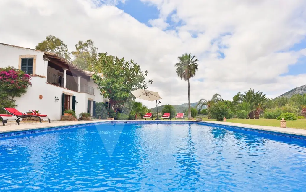 This spectacular finca in Mallorca is located on a 21,000 m2 plot near Pollensa and is ideal for horse lovers. This beautiful, high-quality property consists of two separate, approximately 150-year-old houses that have been painstakingly and tastefully restored with great attention to detail and using the best quality materials. The main house offers two spacious living rooms on the ground floor, an open, rustic, Mallorcan-style kitchen with an adjoining dining area and access to a covered terrace, as well as a cloakroom and a guest toilet. On the upper floor there are three large double bedrooms with en suite bathrooms, two of which have their own terraces (covered and open). The second house also consists of three double bedrooms with en suite bathrooms, a central living room and its own kitchen. Further extras include the horse paddock, a private pool area with a spacious terrace and summer kitchen, a pool house with a Turkish steam bath and a billiards room. A recommended property.