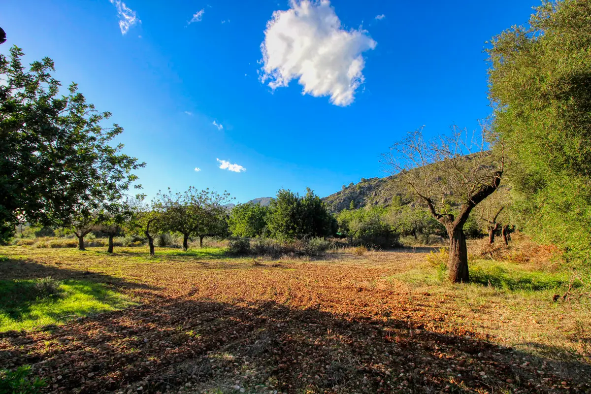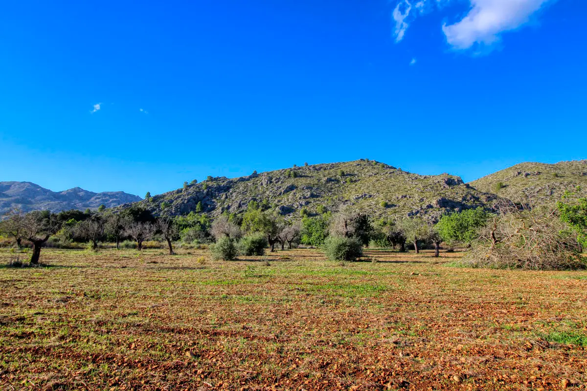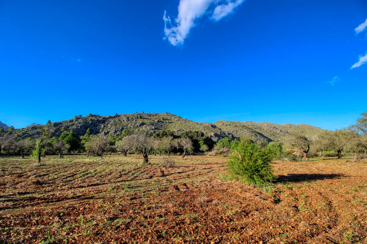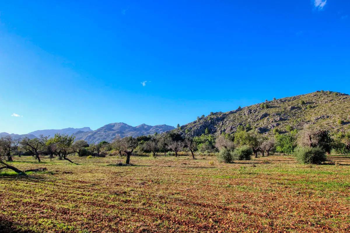 For sale is this large plot of land with an approved project in a good location just three kilometers from Pollensa. It is a large plot of more than 2.4 hectares with approved project to build a house of 300 square meters, about 110 square meters of terraces, verandas and pool. Distributed on one floor the project provides for a small hall, living room of more than 52 square meters, kitchen of almost 24 meters, laundry room, four bedrooms with bathrooms en suite (five bathrooms in total). Outside semi-covered parking space for two cars. This beautiful finca currently has numerous native trees, carob, almond, olive and holm oak trees, providing warmth and privacy. Completely surrounded by a "Pedra en Sec" Mallorcan stone wall. This interesting plot has its own well, a good location, beautiful mountain views and thanks to the approved license you have the opportunity to start construction. Contact us for more information. Well connected and easily accessible, in a quiet area 3km from Pollensa, just over four kilometers from Puerto Pollensa and the fantastic Cala San Vicente.