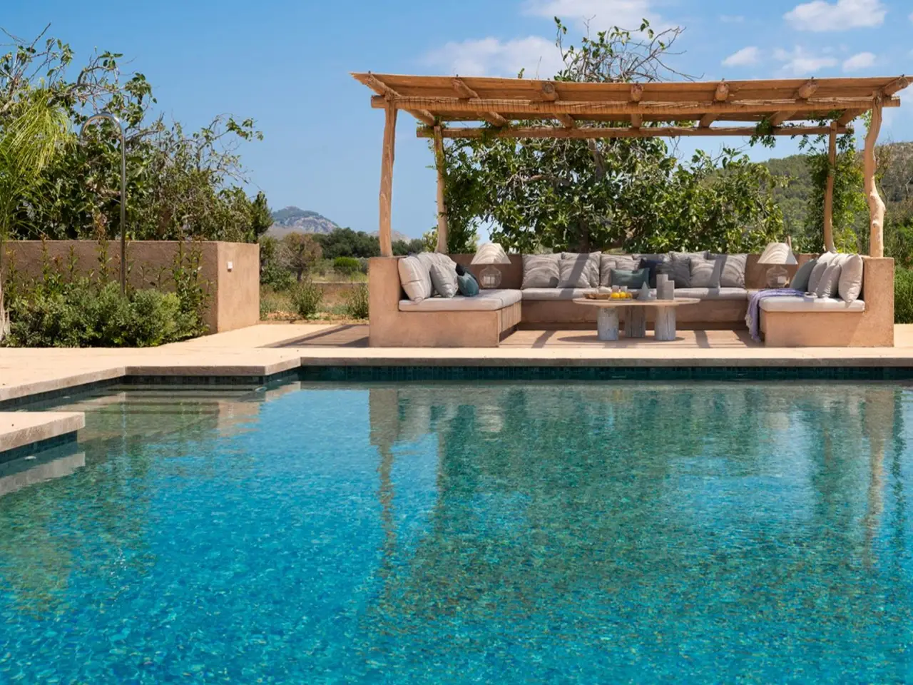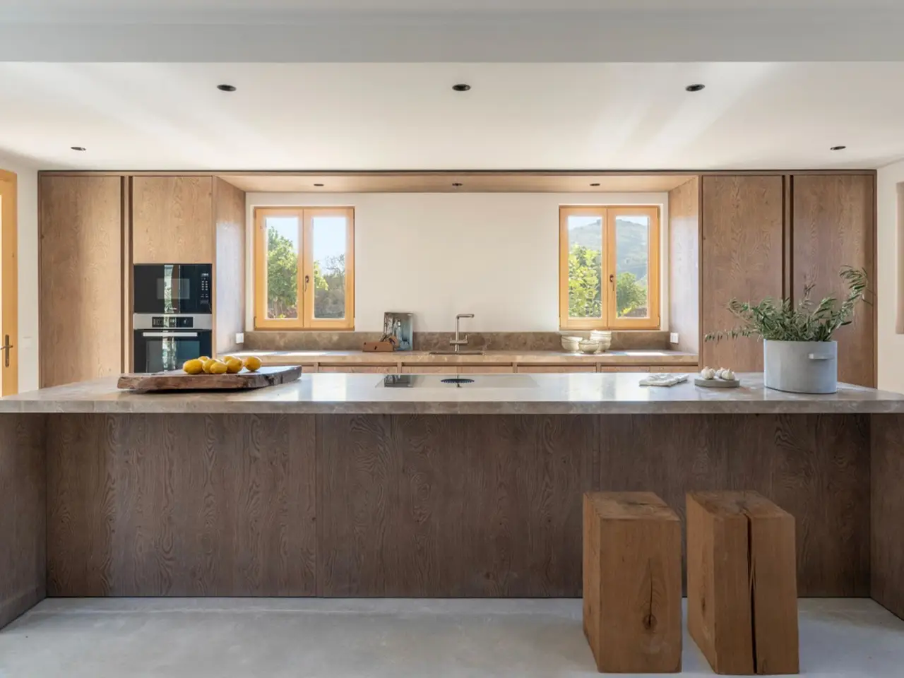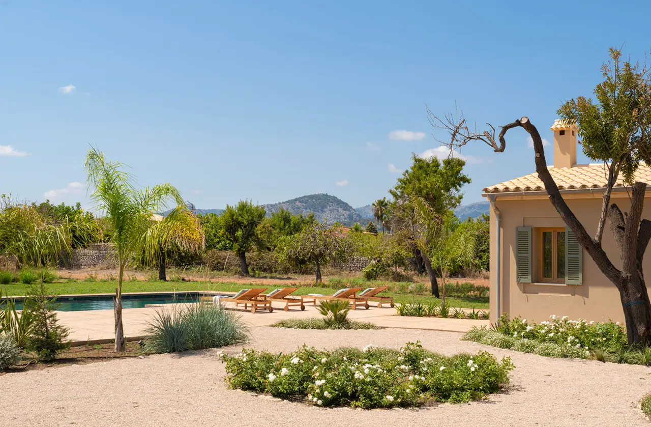 Located in the Mediterranean countryside, close to Puerto de Pollensa, this estate is perfect for those who wish to enjoy privacy while being close to the town. Just a few minutes by car to any point in Pollensa or the port, with its magnificent white sandy beach. With a plot of approximately 18,108 m², the owners can enjoy the tranquility of the countryside, with expansive views towards the mountains. The property offers approximately 368 m² of living space, distributed over two floors. It houses a total of four generously sized bedrooms, each with its own en-suite bathroom, offering private and comfortable space for all inhabitants. Three of the bedrooms are located on the ground floor, each with direct access to the exterior, allowing residents to enjoy the countryside views. On the upper floor is the master suite, the true gem of the property, including a spacious bedroom, en-suite bathroom, walk-in closet, and private terrace. There is also a small room that can be used as a library or office. The ground floor is highlighted by a large kitchen-dining area, designed to function as the heart of the home, inviting family and friends to gather. The space extends into a spacious living room that leads out to a large outdoor terrace and a fantastic green garden. In this area, the pergolas provide shade and create an ideal space to relax after a refreshing swim in the saltwater pool. The materials used in the construction are of the highest quality, reflected in every detail of the property. Abundant natural light filters through large windows, framing the lush green landscape and surrounding mountains. Underfloor heating, air conditioning, and a fireplace ensure comfort throughout the year. Additionally, the estate has its own water well. With its mix of space, comfort, and strategic location, this estate is an exceptional opportunity to acquire a residence in one of the most sought-after areas on the island.