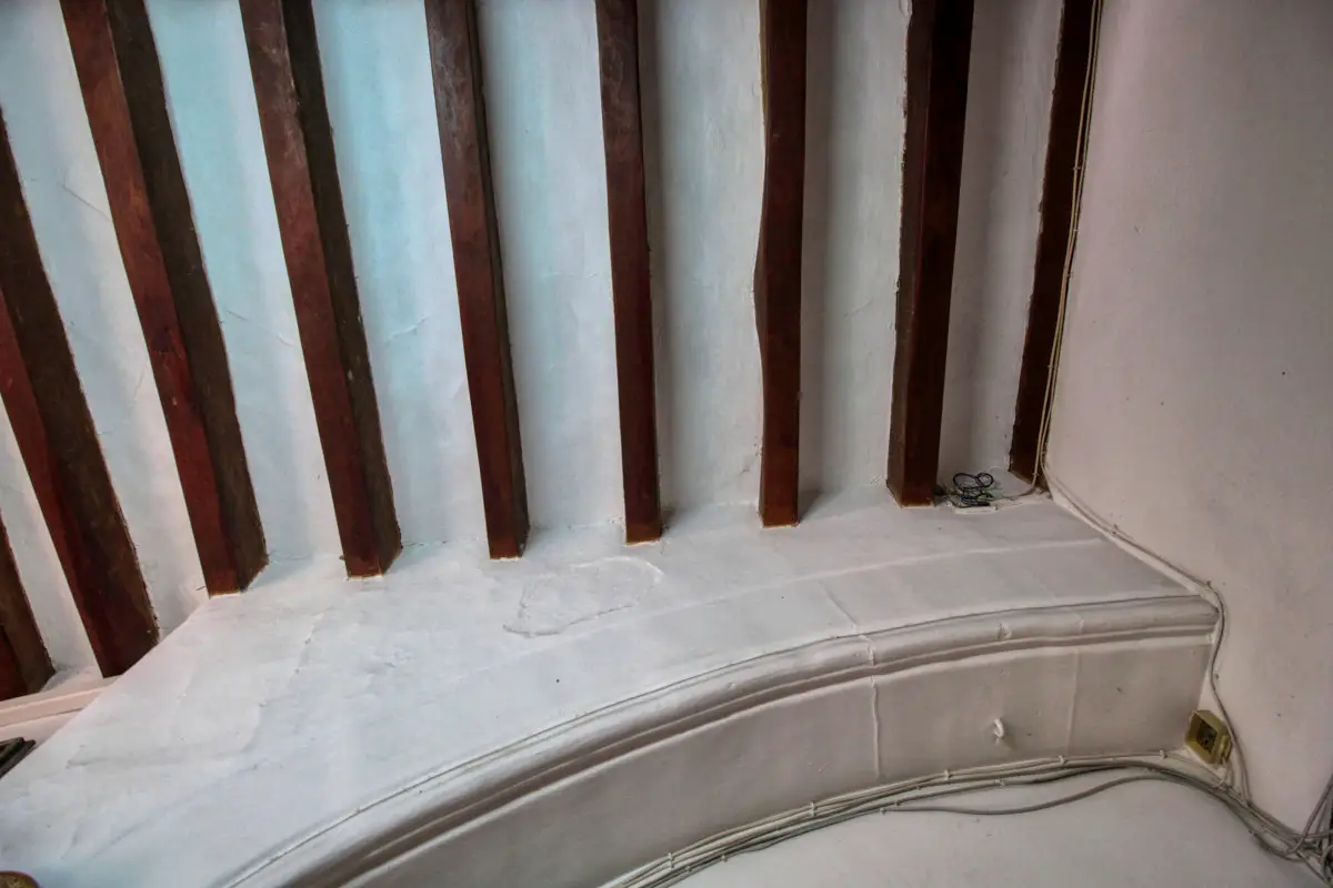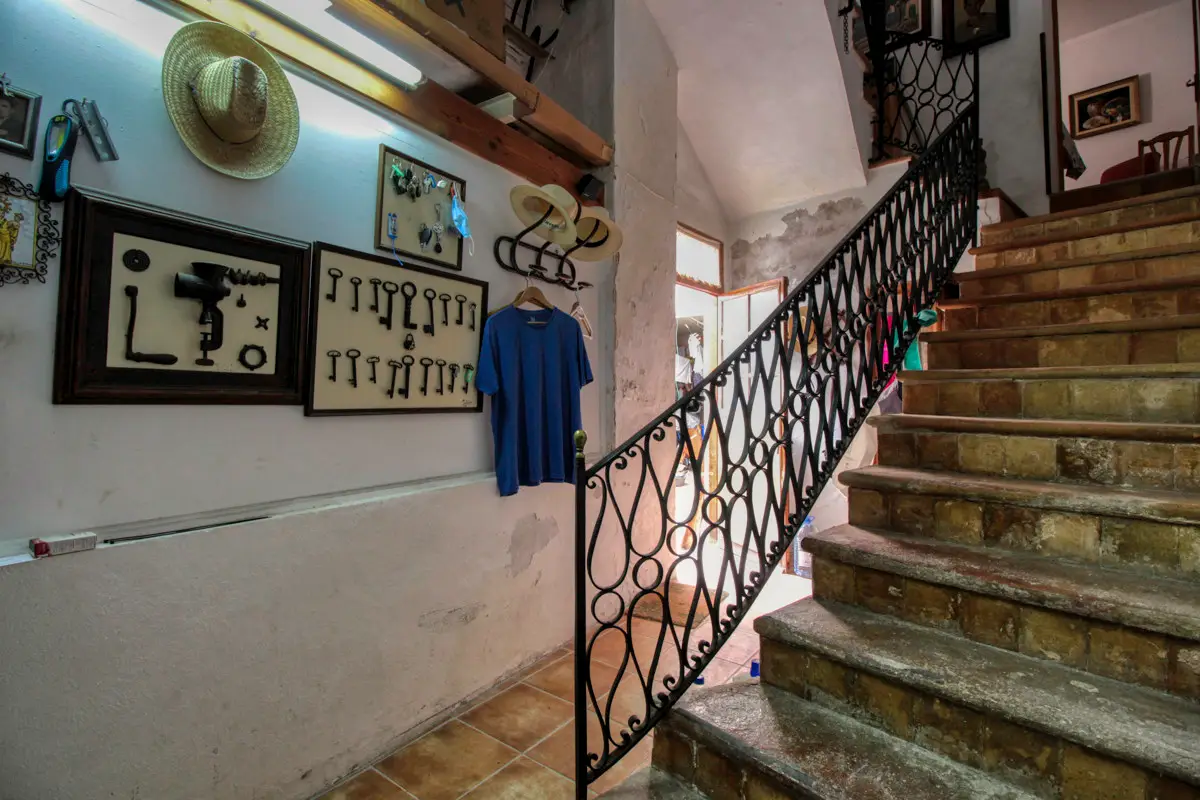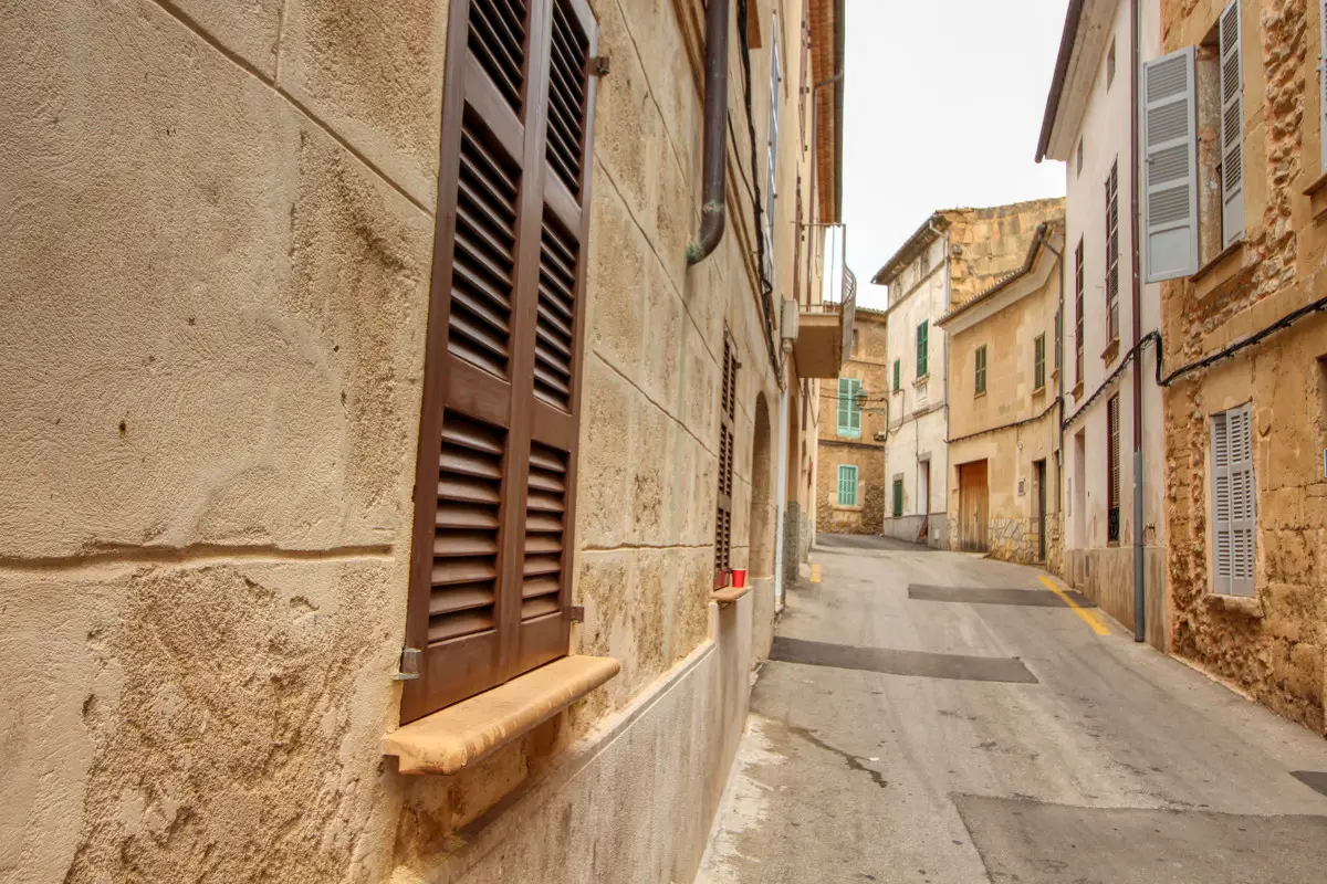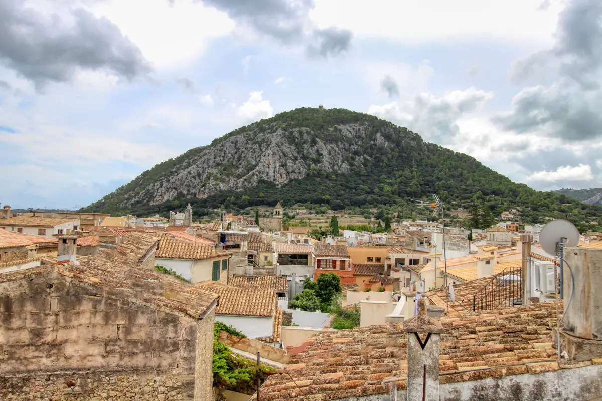 Large house for sale, with garage, small interior patio and terraces with views to the village of Pollensa and Puig de María. Situated on a corner in the old town of Pollensa, this interesting house with thick stone walls and distributed over three floors. A total of about 255 square metres, 96 on the ground floor, 87 on the first floor and on the second floor 72 square metres of warehouse space with sloping roofs on various levels. On the ground floor cosy inner courtyard of approximately 12 square meters, adjoining is a room of approximately 9 square meters extra, ideal to enlarge the courtyard. Spacious entrance hall of about 40 meters with high ceilings, connected to the garage with space for one vehicle and easy access, the staircase leads to an intermediate floor where the large kitchen of more than 30 meters is located, on the first floor the bathroom using the stairwell and four bedrooms, the loft on the third floor leads to several upper terraces. The property is a sturdy traditional house which still retains its style. It features a stone façade, all walls about 70 centimetres thick, high ceilings with wooden beams, large old north wooden doors and a beautiful semicircular staircase. With a beautiful reform this property has a lot of potential.