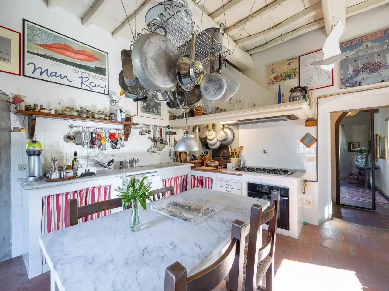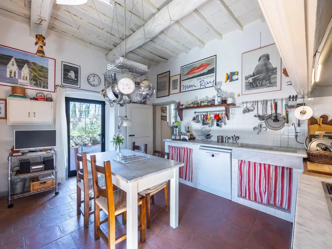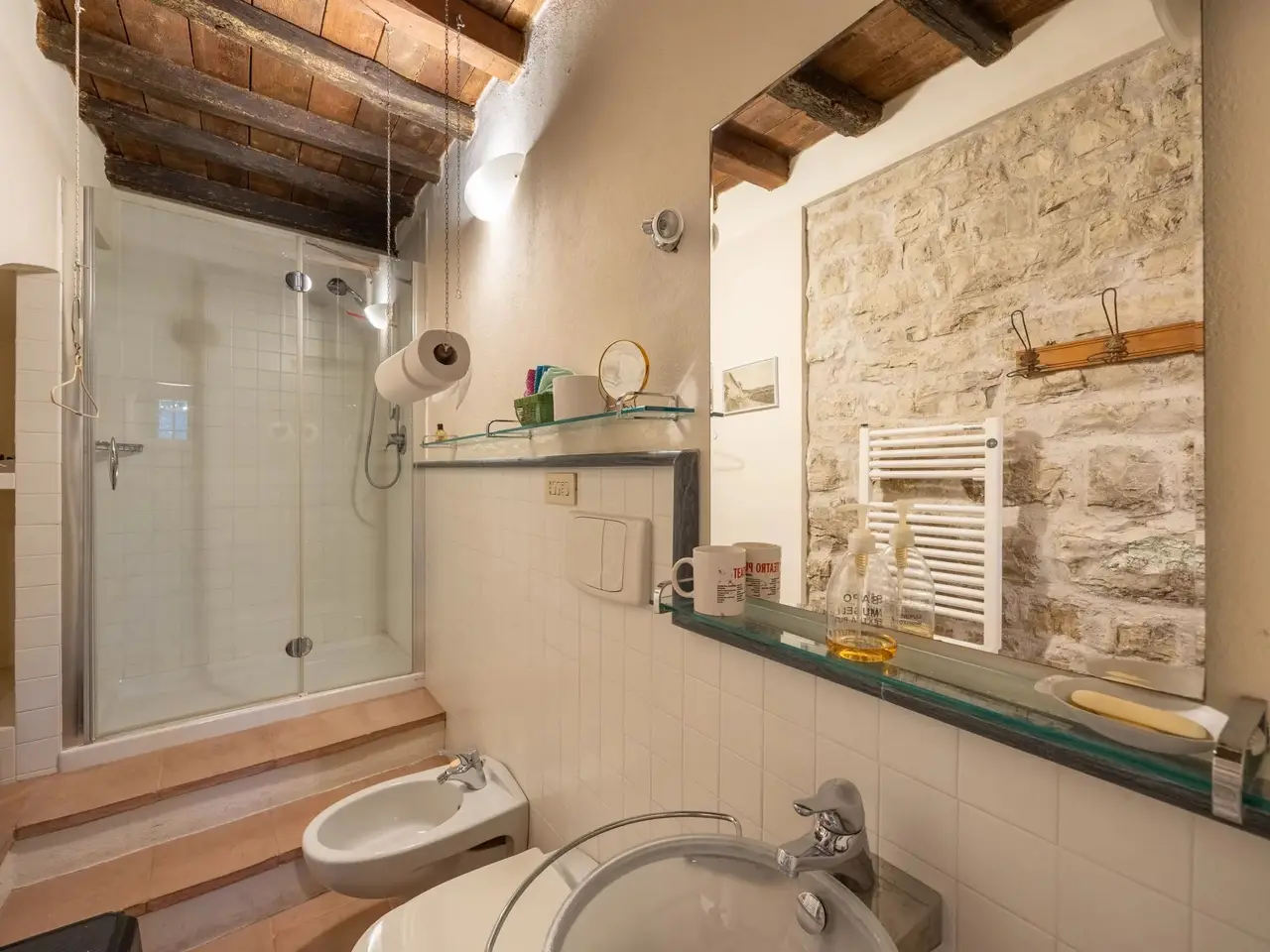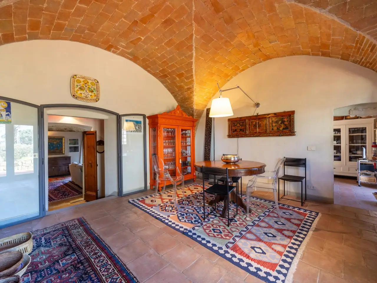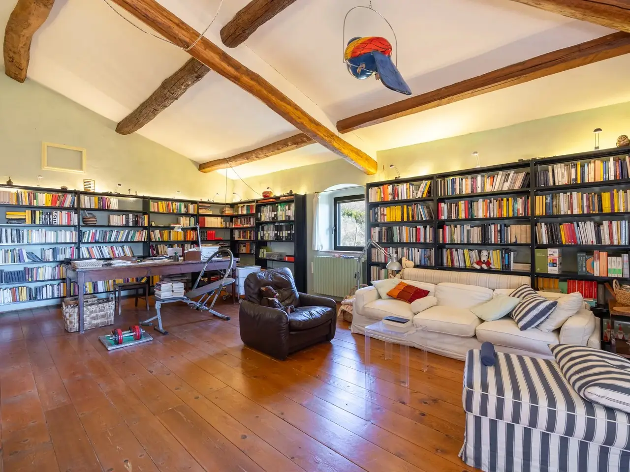 The property is located in the hamlet of “Tigliano” in the municipality of Pontassieve, which has been part of the Fattoria di Grignano for many centuries.It originated as a tower house in the 12th century. Subsequent enlargements resulted in the “scapicozzatura” of the tower, and before being used as a farmhouse, it was used for religious purposes, as specific finishes, in the present living room, suggest.Tigliano is a delightful hamlet where peace and quiet is assured.The property, regular in shape and free on four sides, was renovated in the 2000s by the current owners and continuously improved in subsequent years.It is arranged on two levels. On the ground floor we find a large living room with an important working fireplace, ceiling with exposed beams and “handmade” terracotta floors. Communicating with the living room is the beautiful eat-in kitchen and dining room. The kitchen is characterized by the beautiful Carrara marble details with which the solid wood countertop was made unique with the sink, cooktop and tabletop. The brick ribbed ceiling characterizes the dining room. Both rooms have direct access to the large outdoor slab with a terracotta floor that extends the living area during summer periods. Adjacent to the dining room is a large room used as a pantry. Also on the same floor a second living room that can be used as a study/bedroom. Two bathrooms. A stone staircase leads down to the charming cellar with brick vaults.The upper floor consists of a large living room/library at the living room with a fireplace below, four bedrooms and two bathrooms.Thanks to the presence of two connecting stairwells, an independent portion can be obtained from the consistency of the property.The property is characterized by ceilings ranging between 3.20 m and 3.50 m, open spaces, and many openings to the outside, features not easily found in farmhouses. The stone portals on the ground floor are valuable.On the basement floor a functional technical room.In addition to the terracotta slab mentioned above, a lovely garden completes the property.The hamlet and the property are located in a position from which, as far as the eye can see, no settlements such as factories, highways, railways. The landscape is, therefore, made up of woods and estates cultivated with olive trees and vines. Clearly visible are the Consuma Pass and the forest of Vallombrosa with the bell tower of the Abbey.The area enjoys a favourable climate, both because of its protected position from the north and its height above sea level (400m).It is 16km from Florence, and there is a public bus service to Florence, with a stop 150m from the property.At the Sieci train station (8 km away) 4 trains per hour guarantee a connection with Florence (Campo Marte station in 11 minutes, S.M.Novella station in 16/20 minutes).