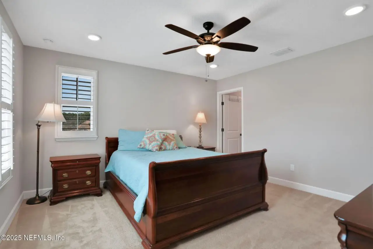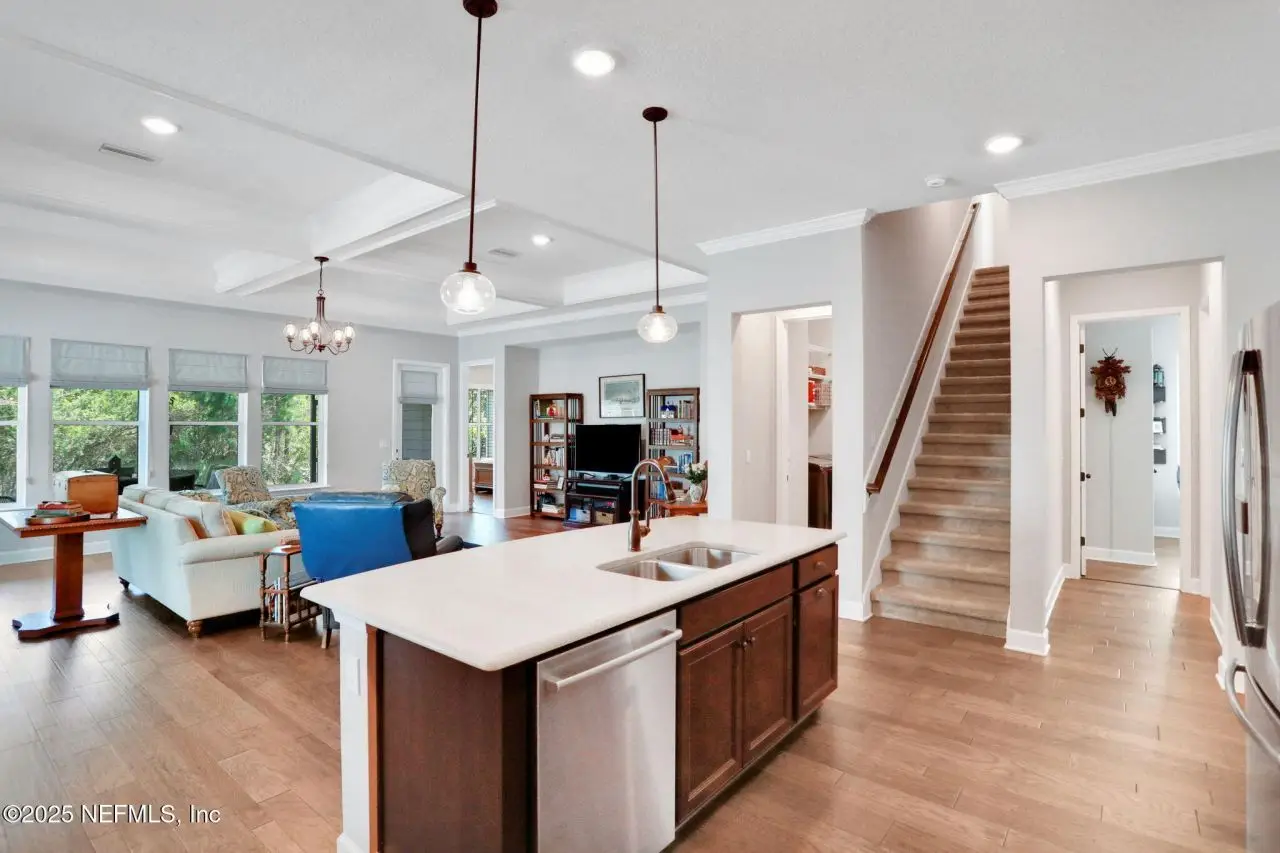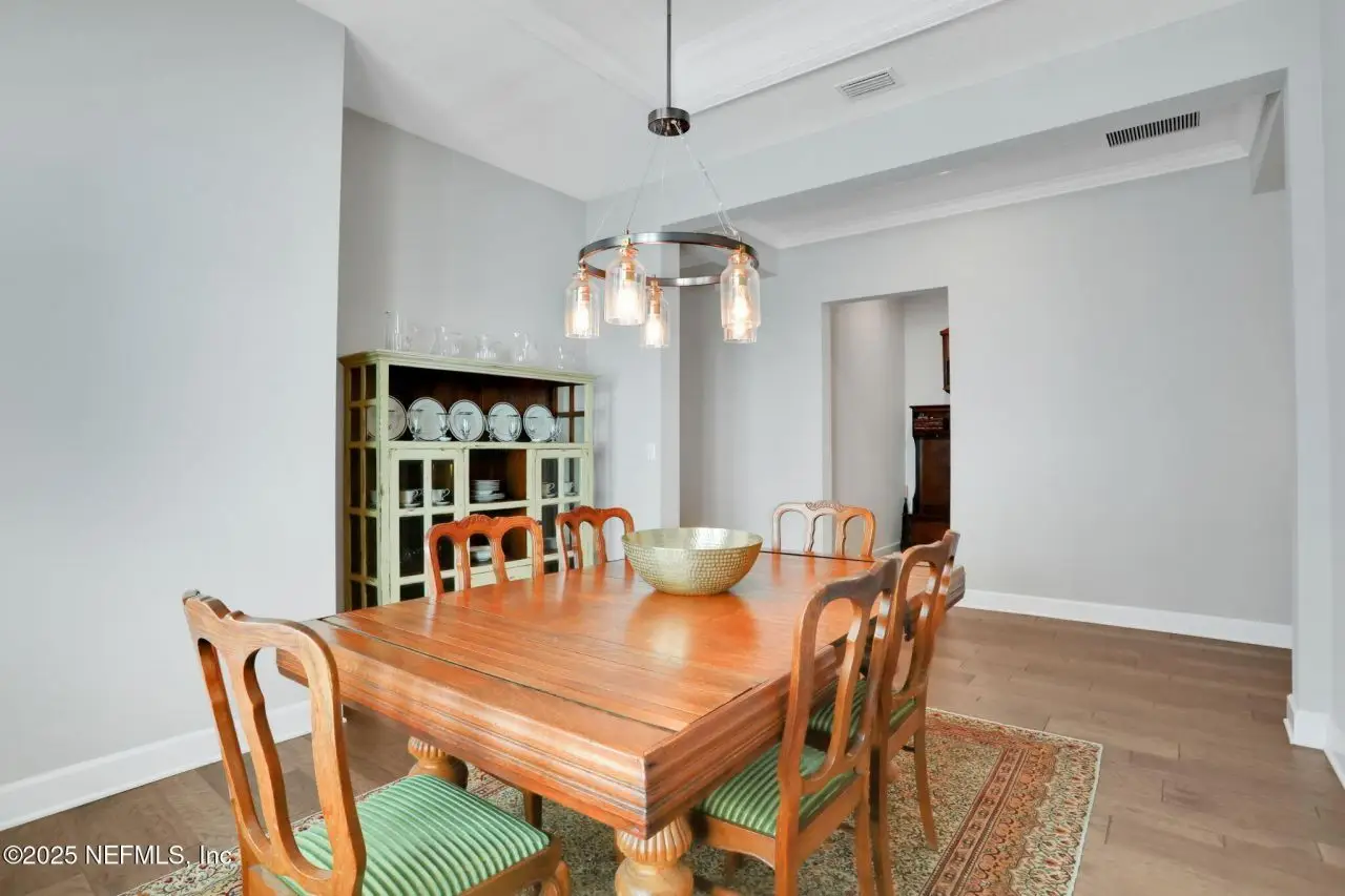 Welcome to your dream home in Twenty Mile of Nocatee, FL! This stunning two-story residence boasts 4 spacious bedrooms and 4 full bathrooms, offering ample space for family and guests. Home finishes include elegant wood flooring throughout the first floor, adding a touch of warmth and sophistication to your living spaces, crown molding and coffered ceiling in the spacious living room and tray ceilings in the formal dining room and primary suite. The primary suite offers both shower and separate soaking tub. Shutters and Roman shades complete the warm feeling of this home. The chef's kitchen features a gas cooktop with externally vented hood, island, stainless steel appliances and spacious pantry. On the second floor you will find an additional bedroom and bathroom, a private retreat for guests or an ideal home office setup. The scenic backyard with screened lanai has a view of the serene preserve, perfect for unwinding and enjoying nature's beauty.