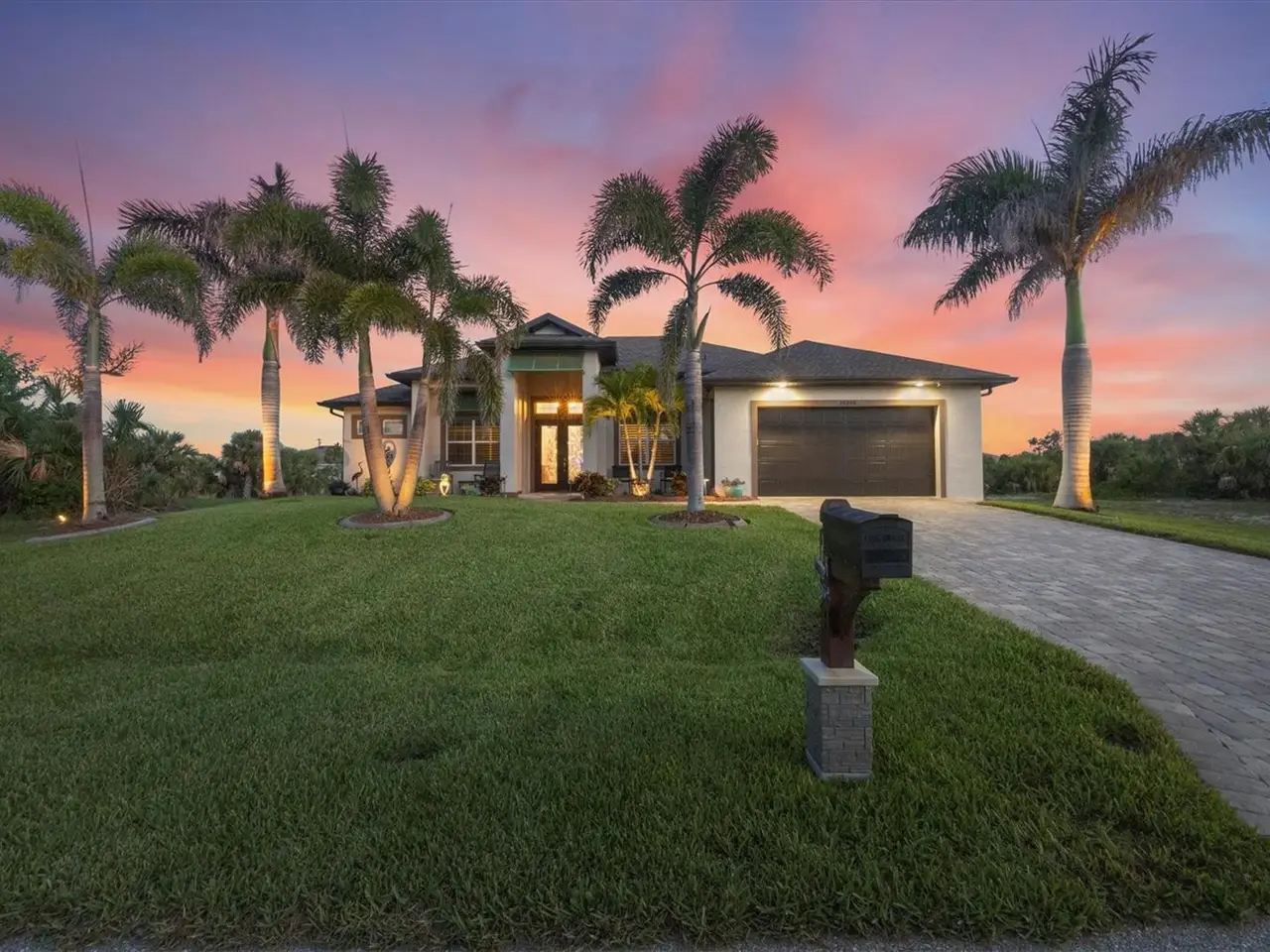 Tucked in a serene Florida waterfront community, this elegant 3-bedroom, 2-bath custom home is the perfect blend of luxury, comfort, and smart design. From the moment you arrive, it’s clear that every inch of this property has been thoughtfully crafted—from the paver driveway and travertine entrance to the gorgeous etched glass double doors that make a striking first impression. Inside, you’re greeted by rich wood-look tile flooring, custom tray ceilings, and a welcoming open layout that flows effortlessly from room to room. The living space is bright and open, with oversized sliders framing stunning water views that never get old. Whether you’re hosting a holiday party or simply relaxing by the electric fireplace with family, this home makes it easy to live beautifully. And the kitchen? It’s a chef’s dream. With a massive 9-foot quartz island, an Electrolux 5-burner induction cooktop, wall ovens, an oversized refrigerator/freezer, and high-end fixtures, cooking becomes a joy — not a chore. You’ll find yourself gathering here often, whether for morning coffee or sunset hors d'oeuvres. The primary suite is a peaceful retreat. Wake up to water views and step directly out to the lanai. The spa-style en-suite bathroom features an oversized walk-through shower, dual vanities, and a 13x8 walk-in closet so spacious it could be its own room. Across the home, two guest bedrooms ensure privacy and comfort for family or visitors. Step out onto the lanai and your private resort awaits. A heated saltwater pool with a soothing water feature invites you in for a dip. Entertain at the fully equipped summer kitchen with a Webber Summit grill and expansive bar space—perfect for laid-back evenings with friends. New pool screens installed in 2023 keep everything fresh and beautiful. And when a storm rolls in? Just press a button—automatic hurricane shutters protect everything, no need to move a single chair. As the sun sets, stroll down the lighted captain’s walk to your private 16-foot composite dock, complete with water and electric hookups and a walk-around 10,000 lb. boat lift—making every boat day easy and effortless. This home is not just beautiful, it’s built for peace of mind. From impact-resistant glass and electric shutters to Icynene insulation, Nest smart home features, and a newly painted exterior (2023), it’s as smart and secure as it is stunning. There are too many extras to list—but one walk through will show you: this is more than a home, it’s a lifestyle. Schedule your private tour today and experience the very best in Florida luxury living.