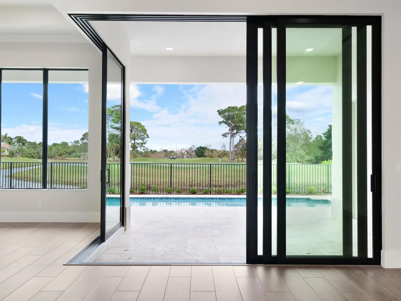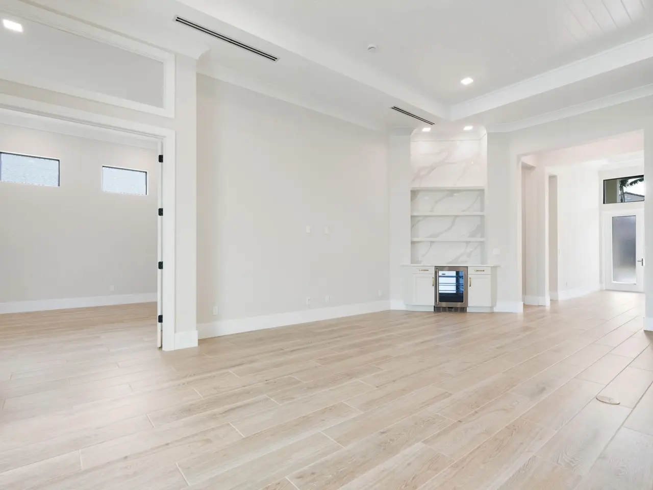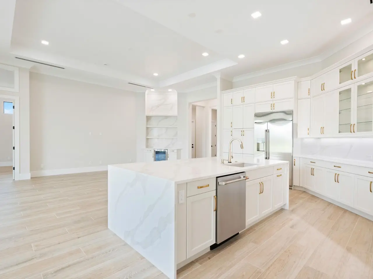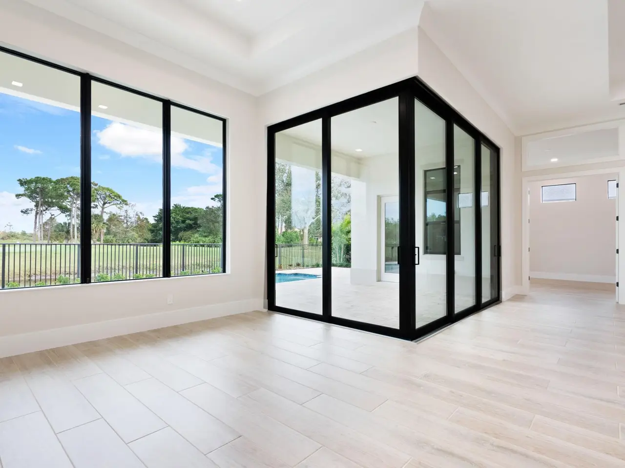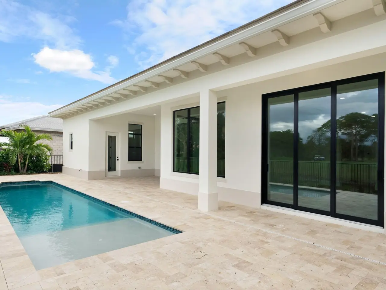 Refined living at its best in this Coastal Modern offering by GHO Homes. Featuring twelve ft. high ceiling with oversized storm guard windows & doors along with a large covered patio overlooking the pool. Family room, kitchen & dining create a one of kind living experience. Club room with full cabana bath is ideal for play or could be a 4th Bedroom. The kitchen features: Cafe series appliances, natural gas cooktop, 42 double door frig., build in convection wall oven, quartz counter tops, stacked upper cabinets with glass accent doors along with walk in pantry. The primary suite feature, two closets with custom shelfs, 12 ft high tray ceiling, oversized sliding door with access to covered patio/pool area. Primary bath has two vanities, soaking tub & premium shower. Move in ready home.
