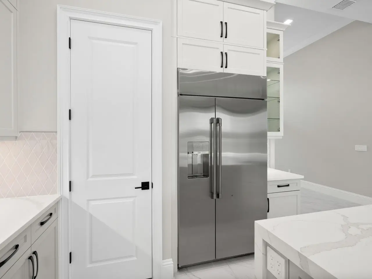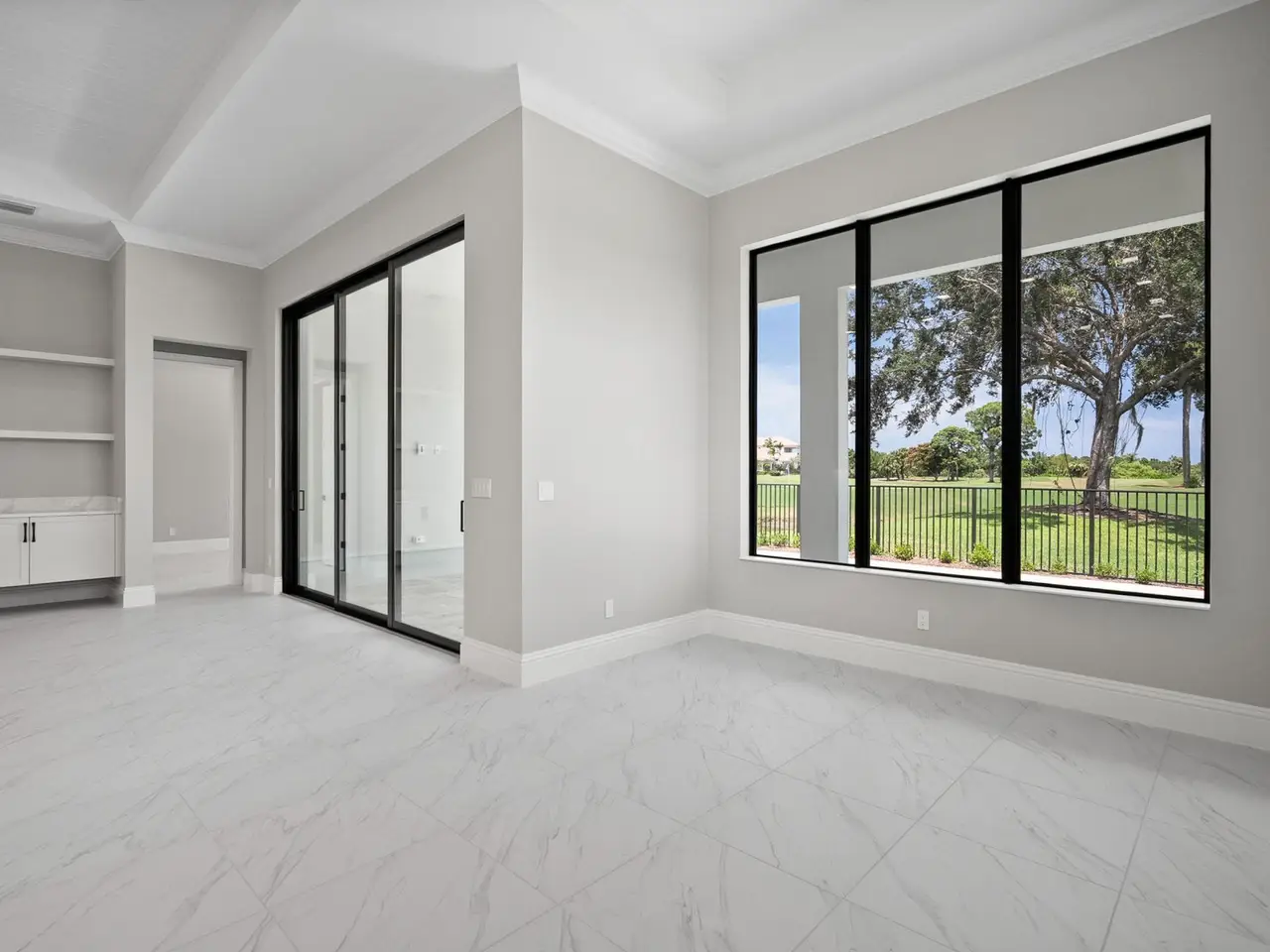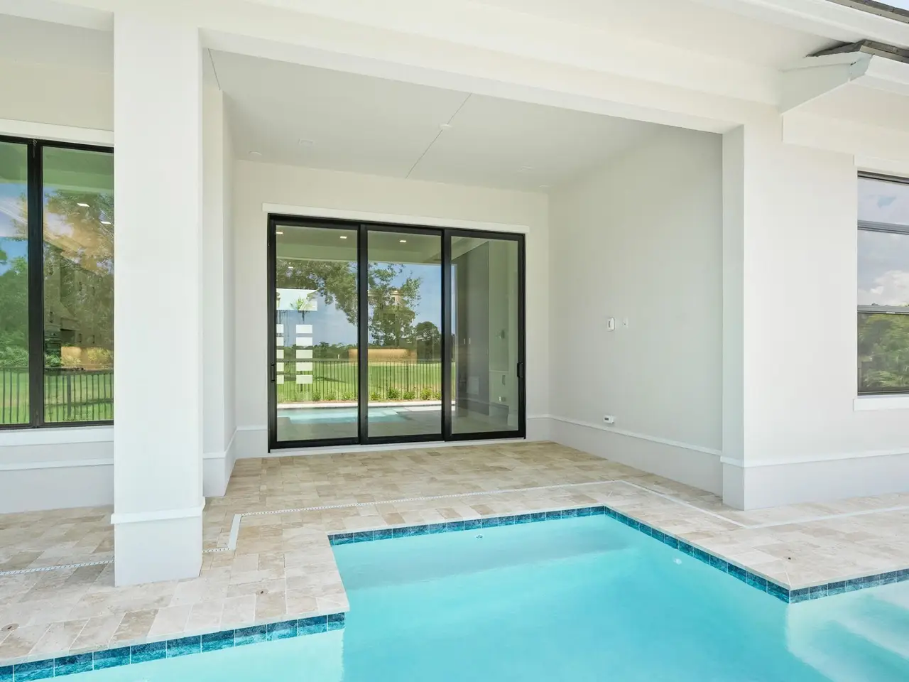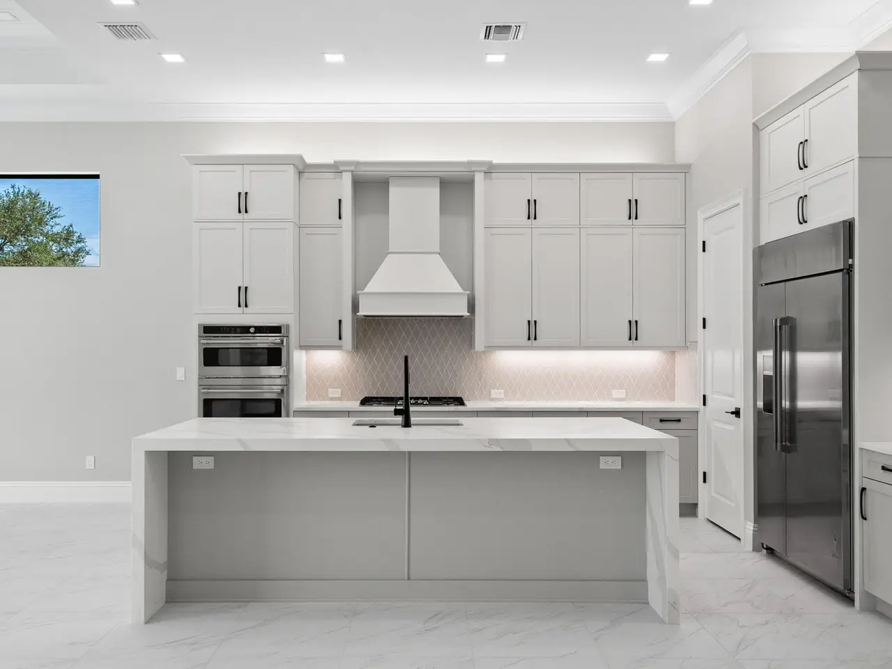Located in the prestigious Tesoro Club, this exceptional residence features a striking contemporary front elevation. Based on the Stella model, this residence boasts impressive high-volume ceilings and a chefs kitchen with top-of-the-line Cafe appliances, including a spacious 42-inch built-in refrigerator. The kitchen is designed for functionality and style, featuring an oversized central island with a stunning 2.5-inch waterfall edge, a walk-in pantry with custom shelving, and stacked cabinets above a natural gas cooktop. The great room is a focal point, enhanced by an electric fireplace surrounded by elegant tiling, creating an inviting and sophisticated atmosphere. The backyard is perfect for entertaining, with a luxurious pool and travertine paver patio that elevates outdoor living!
