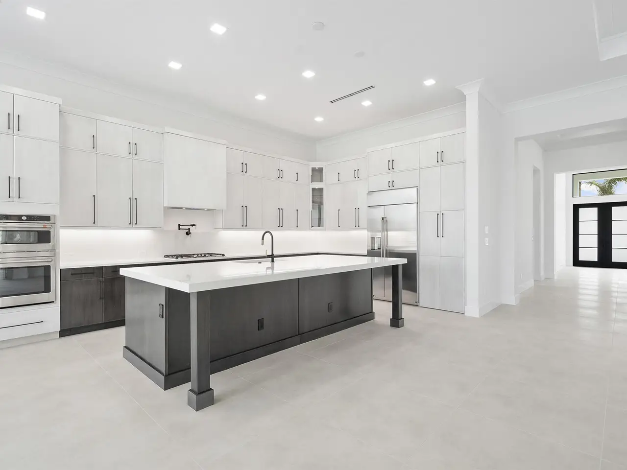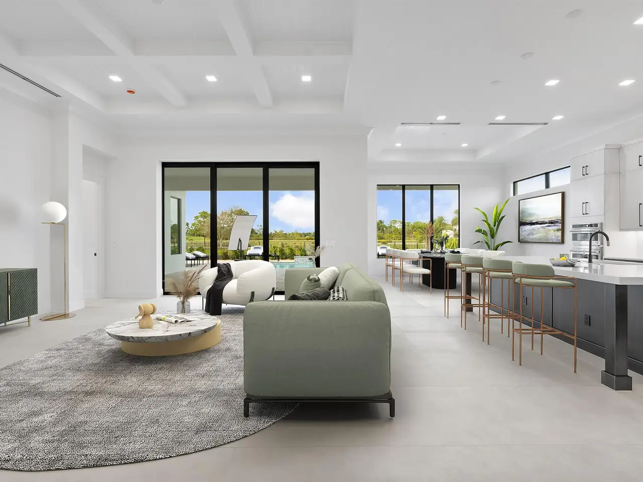 This home is located in the heart of "Tesoro", the Treasure Coasts premier golf club. The "Keenan" presents the perfect design and layout that enhances that Florida lifestyle. Entertaining at its best with a large oversized back covered patio including travertine pavers and a professionally designed pool enhanced with sun shelf and a water feature. Other outstanding finishes include 12ft. volume ceilings, oversized club room with wet bar, spacious kitchen including butler’s pantry, oversized center island, stacked cabinets, Cafe appliances including 42" built-in refrigerator, wall oven/microwave combo, washer & dryer and 32 x 32 tile flooring throughout. This home is located on a perfect lot in a premier golf club community of Tesoro, offering an impressive coastal-contemporary designed home. Bring your golf clubs and enjoy the best golf experience on the Treasure Coast!