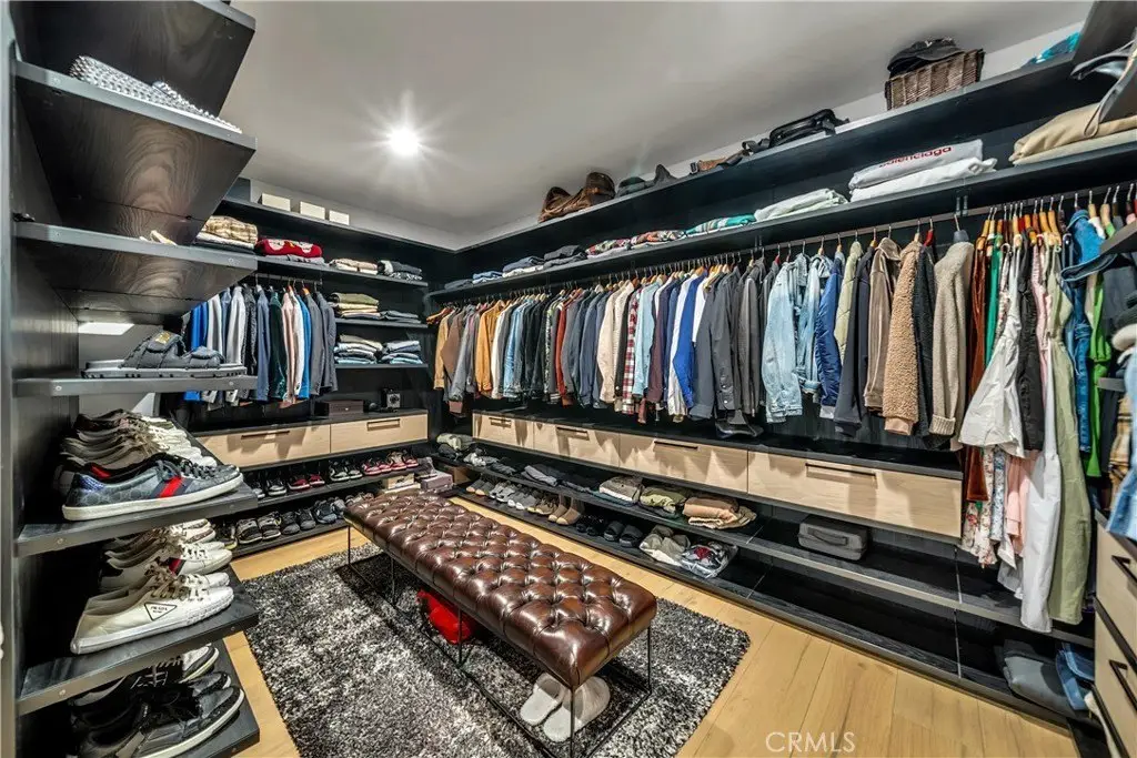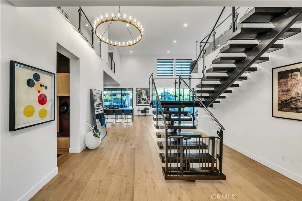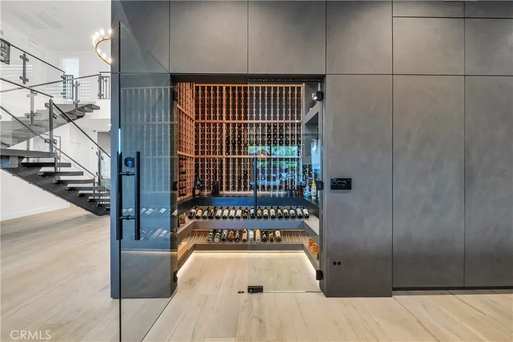 This luxurious residence sits on nearly 19,000 square feet—one of the largest lots available. Showcasing meticulously landscaped grounds with a grand driveway and a charming walkway lined with expensive age-old olive trees. Located behind the gates in the prestigious Westcliffe community, a guard gated enclave in the upscale Los Angeles suburb of Porter Ranch. This Vega floor plan- Cascades Collection is 4,932 square feet of living space, and it's no surprise that this layout is a favorite among many. As you enter, you’ll be captivated by the dramatic floating piano-black staircase, expansive 11-inch white oak flooring, and soaring ceilings that create an inviting atmosphere. This home offers five spacious bedrooms and five bathrooms, including a generous en-suite bedroom on the first floor with a retreat area. An elegant executive-style office, complete with double glass doors, provides an ideal executive workspace. The heart of the home is the state-of-the-art Elmar Cucine kitchen, known for its exquisite Italian craftsmanship. Featuring clay-finished and matte lacquer cabinets, a striking 20-foot custom porcelain island, and high-end Thermador appliances. Flush sliding pocket doors and floor-to-ceiling windows enhance the open-concept layout, allowing natural light to flood the space. Enter the living area to find breathtaking 72 inch open shelving fireplace with custom floor-to-ceiling wall treatment. Ascend to the second floor to discover the expansive master suite, complete with dual vanities, a walk-in shower, and a luxurious freestanding soaking tub set against Italian oak finished vanity with white quartz countertops. Four additional bedrooms and three bathrooms with a loft area featuring custom built-ins serving as movie room. Step outside to your private backyard oasis, featuring a pebble Fina pool and spa, two fire pits, an oversized recessed patio lounge, a BBQ center, tranquil waterfall feature and outdoor pool shower. Smart home with an integrated sound system, sonos speakers for seamless backyard entertaining, and OWNED SOLAR PANELS. This incredible home offers the ultimate blend of luxury and comfort in a sought-after community.