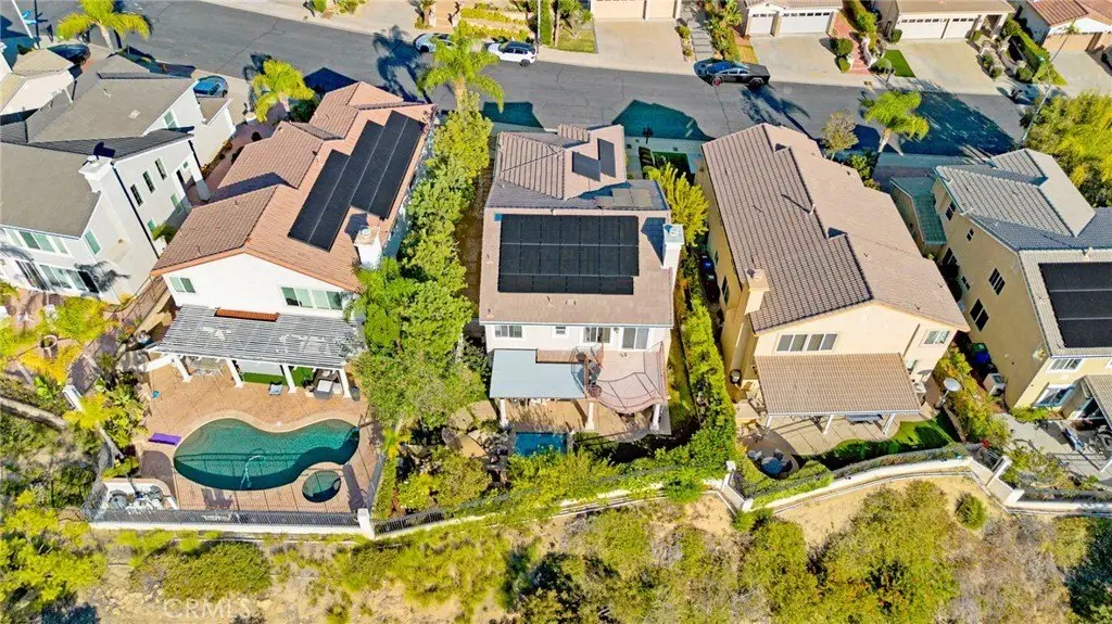 Unrivaled Views – Sorrento Living at Its Finest. DO THE COMPARISON! Unmatched value in the exclusive, guard-gated Sorrento community of Porter Ranch with sweeping city views. Elegant two story home, manicured landscaping and a serene sunset backdrop. 2,709 square feet of elegant & bright living space featuring striking curved staircase with wooden banister. The two story foyer highlights the beautiful chandelier and tiled flooring with decorative inlays. The walls are painted a warm, light yellow, complemented by custom white crown moldings. Adjacent to the living room is the dining section and a family room that seamlessly flows into a gourmet kitchen with granite counter tops, light wood cabinetry, large center island, custom backsplash and built in appliances like fridge, stainless steel double oven, cooktop, and dishwasher. Abundance of windows plus sliding door leads to the backyard from the family room to a resort backyard + paved patio area under a pergola supported by columns. An inviting spa among decorative rocks and unbelievable sunsets! First floor includes 1 bedroom, 1 full bathroom and a separate room for laundry adjacent to a direct access three car garage. Ascend to the second floor and you will find 5 bedrooms and 2 bathrooms. Spacious second floor landing is bathed in natural light from well placed high custom windows, natural toned carpet and expansive transition to the bedrooms and the private primary suite. 3 spacious bedrooms and a primary bedroom. The primary suite is the highlight of this home, the major highlight is the direct access to the private terrace with views of the hills and city. Views all the way to Santa Monica mountains, Santa Susana mountain, and the entire the valley. The primary en suite bathroom features tiled walk in shower and deep soaking tub with a perfect window placement to absorb in all the views. The dual sink vanity with ample counter space highlighted by two ornate, matching mirrors and stylish sconce lighting. Also not to forget the generous walk in closet ensuring a high end primary suite experience. Additional property feature includes solar panels. The home is in a desirable 24-hour guard-gated community with a TWO community pool/spa with low HOA dues of $305 per month. Come experience the difference in Porter Ranch.