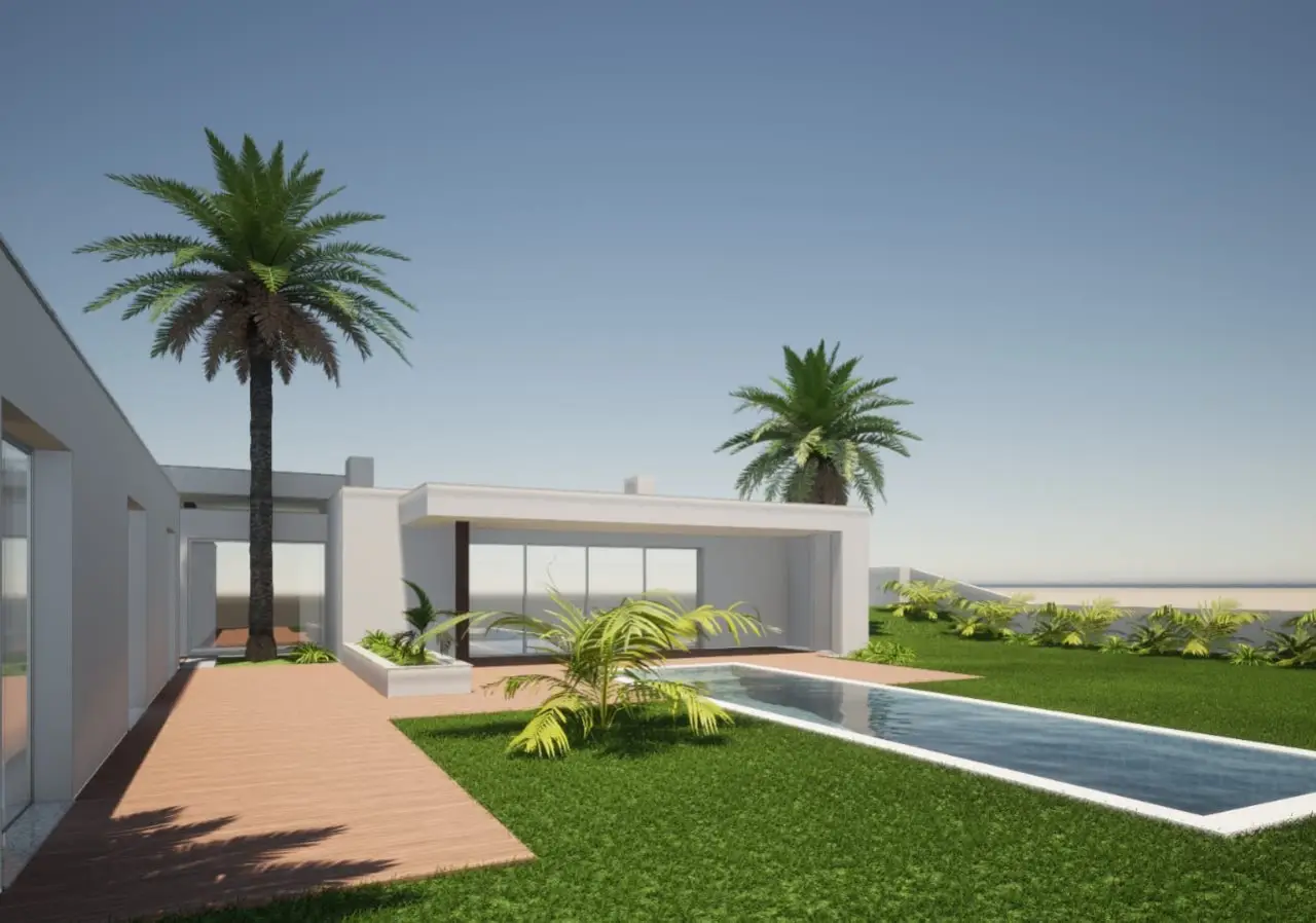 Modern 3-bedroom villa, in a fantastic plot of 1270 m2, in the quiet area of Mexilhoreira Grande, a village on the outskirts of Portimão. This contemporary villa has large interior rooms, and because of the numerous large windows, the villa is filled with natural light, which perfectly blends the interior with the tranquillity of the suburbs. On entering, to the left is the open-plan living room, dining room and kitchen, fully equipped with top-of-the-range appliances, with the main focus on the spectacular island. The living room has access to the garden and pool via the terrace. From the kitchen, you can access the laundry room, utility room, service bathroom and garage. To the right of the hall there is a corridor that leads to the three bedrooms, all en suite, with built-in closets and direct access to the outside, namely the garden and swimming pool. The outdoor's property consists of a well-kept and easily maintained garden, a 32m2 rectangular swimming pool, a barbecue area and additional covered parking. Just about 10 minutes from Alvor beaches or the city of Portimão and less than 20 minutes from the city of Lagos, close to excellent renowned golf courses, and easy access to the highway. The plot is less than 50 minutes from Faro International Airport. CHARACTERISTICS: Plot Area: 1 270 m2 | 13 670 sq ft Bedrooms: 3 Bathrooms: 4 Garage: 2 Energy efficiency: A FEATURES: Big plot of land One stage house 3 Bedrooms en suite Equipped kitchen Barbecue Garden Swimming Pool Garage