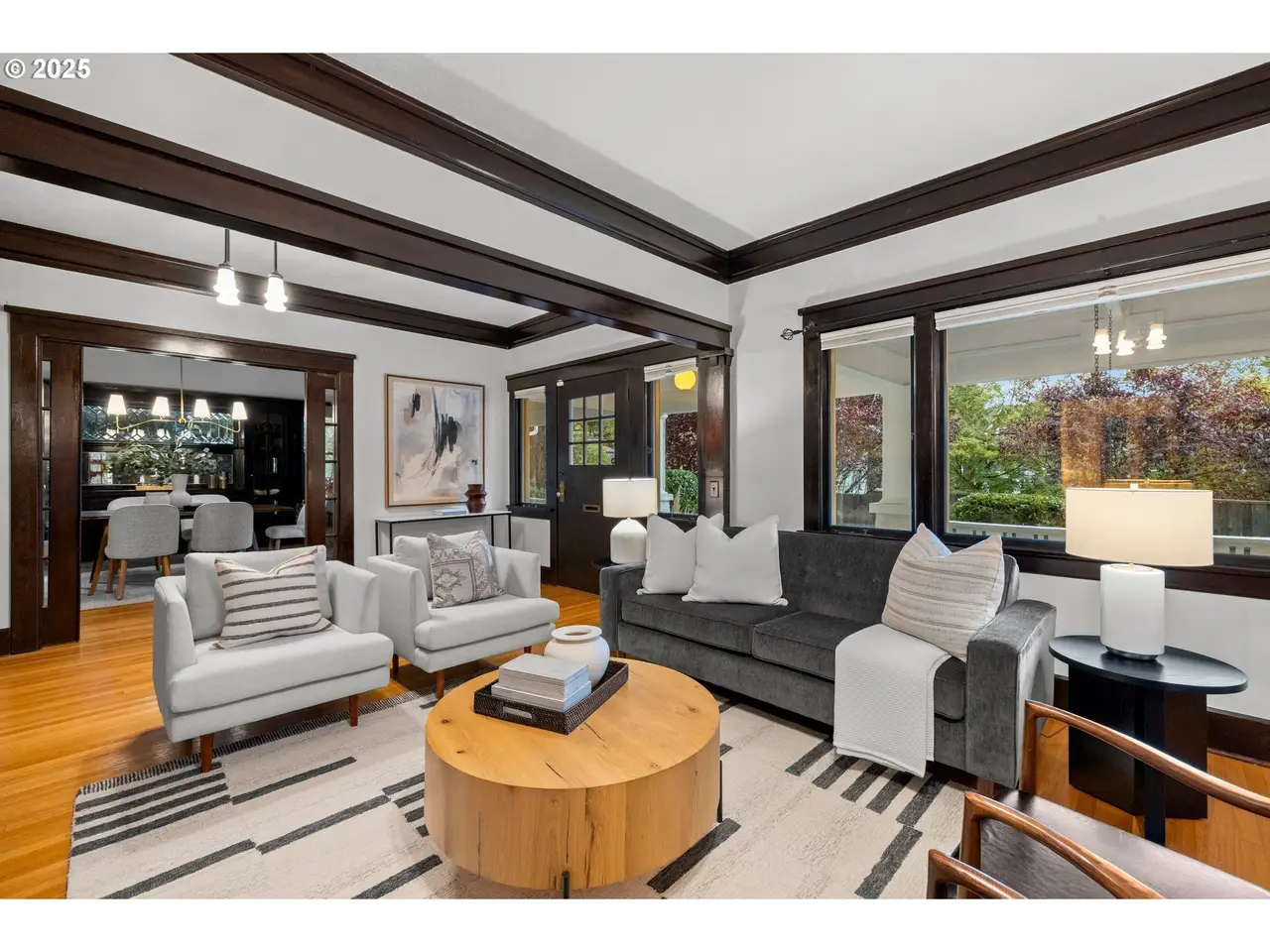 Classic 1910 Alameda Craftsman set on a rare 9,276 SF corner lot, offering timeless character and modern versatility. This 3,976 SF Arts & Crafts beauty features a permitted ADU—ideal for multi generational living, rental income, or extended guest space. Inside, the home’s craftsmanship shines with exposed beams, leaded glass windows, built-in bookshelves, and original hardwood floors. Large, light-filled rooms create a welcoming flow, perfect for entertaining and everyday living. The spacious living room centers around a classic fireplace, while the formal dining room showcases period details and built-ins. The kitchen blends modern updates with vintage charm, providing ample counter space, storage, and room for gathering. With five bedrooms and four bathrooms, there’s space for everyone—whether you need multiple work-from-home offices, guest rooms, or a private retreat. The primary suite offers comfort and character with vaulted ceilings, while additional bedrooms provide flexibility for family or visitors. The finished lower level and ADU expand your options even further, with space for a family room, home office, gym, guest quarters, or income-producing unit. Outside, enjoy a large corner lot with mature landscaping and outdoor areas perfect for gardening, play, or summer evenings with friends. A free standing shed adds storage and convenience and two driveways allow space for additional parking or RV parking. Situated in one of NE Portland’s most desirable neighborhoods, this home is close to Wilshire Park, Beaumont Village shops, top rated schools, and local dining. With its perfect balance of history, space, and versatility, this Alameda Craftsman is truly NE Portland’s best value. [Home Energy Score = 3. HES Report at https://rpt.greenbuildingregistry.com/hes/OR10182651]