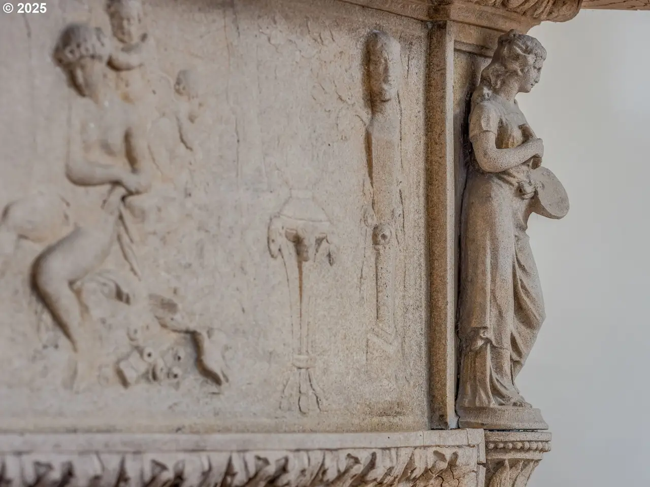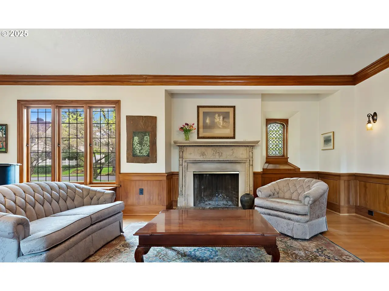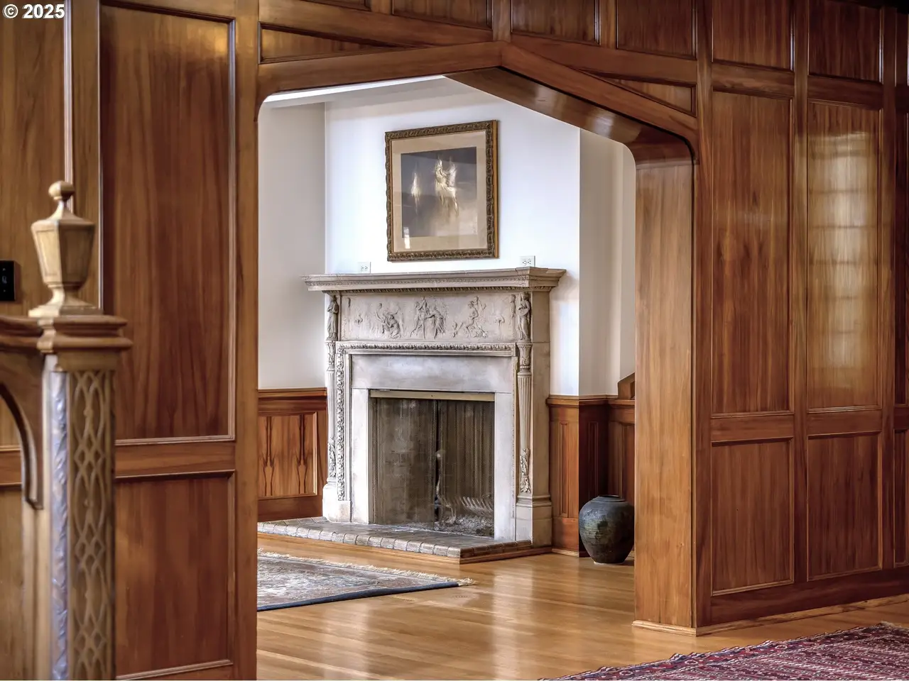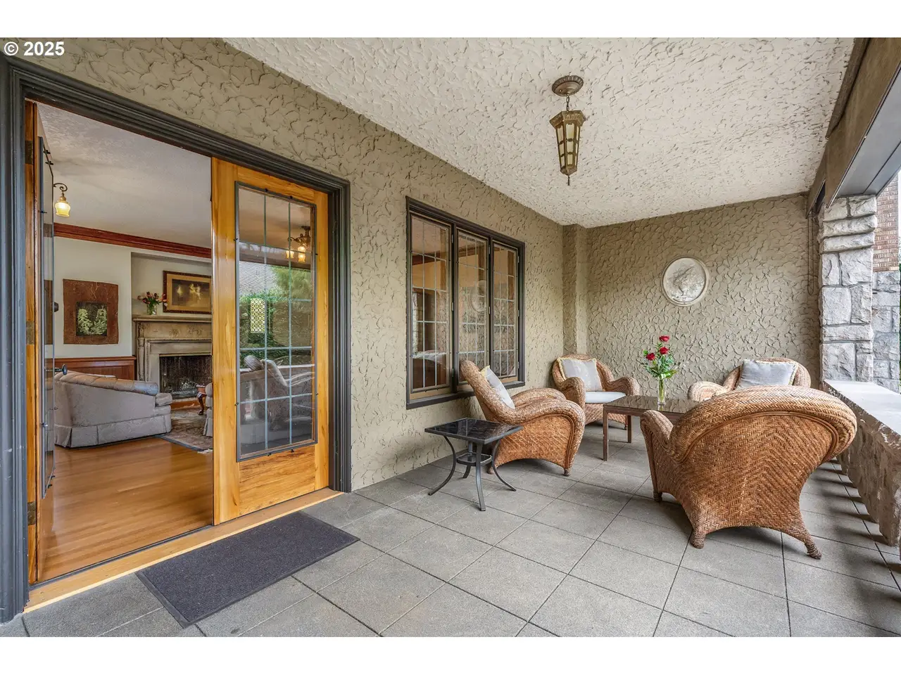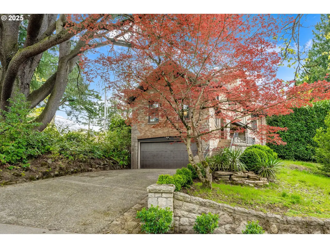 Yes, this is *that house*! Legendary Eastmoreland English Cottage with stunning stone, brick, & stucco exterior graced with an elaborate rolled roof. Pristine, honey-warm gumwood glows throughout the house, particularly astonishing in the fully paneled foyer and carved staircase/landing gallery with its three gorgeous leaded and stained glass windows. Designed for entertaining, the circular floor plan leads to a 20 x 25 living room with sculptural stone fireplace and French doors to a covered patio, expanding your gathering space. Explore the exquisite library with its vaulted ceilings, extensive built-ins, & cozy fireplace; greet the day in the brilliant morning room which is the lower level of the remarkable architectural turret. Period-sensitive, incredibly practical chef's kitchen w/handmade tile, pillowed marble flooring, granite countertops and island, huge gas range with pot-filler; carry your creations through to the long, gracious dining room where there is always room for one more at table. Everyone has their own retreat with four ensuite bedrooms on the second level, each with a delightful Art Deco-inspired Pratt & Larson full tile bath; the primary bedroom has a huge rooftop deck on top of the turret, with a beautiful view. The finished top level provides home office, media, game, & casual relaxation space, with its own heating/cooling system for ideal comfort. On the sleek, spacious lower level you'll find a wine cellar, storage, laundry, a bath with dog wash/gardener shower, & a full 1 BR/1BA apartment with its own entrance. The 14,900 SF lot provides gardening spaces as well as an extensive patio to enjoy the magisterial presence of the castle-like west side of the home. Shopping and dining are nearby in Woodstock and Sellwood/Moreland; you're also blocks from Eastmoreland Golf Course, Reed College, and MAX Orange Line.Located on a coveted street in SE Portland's premier destination neighborhood, this is more than a house: it's an experience. [Home Energy Score = 1]