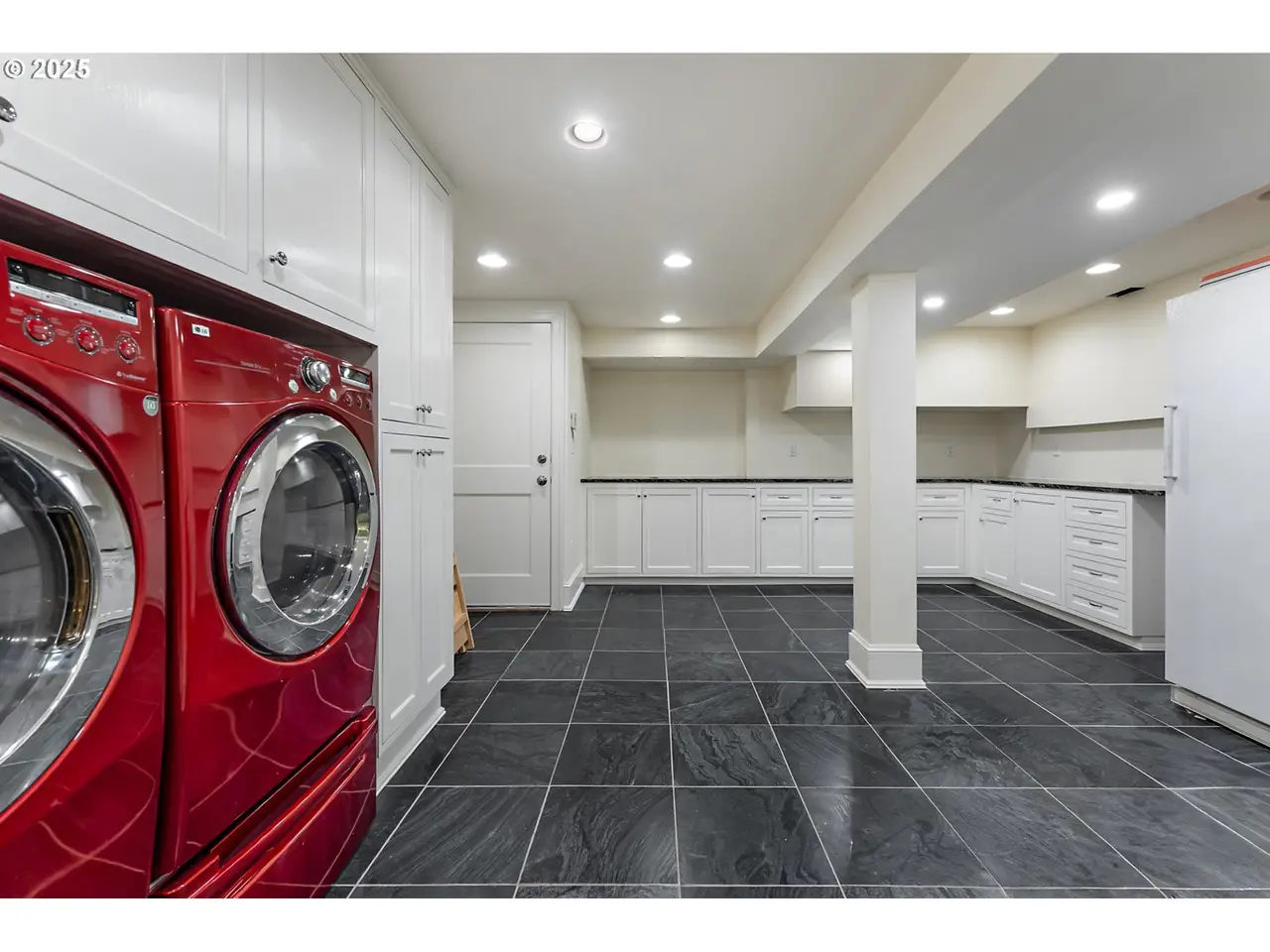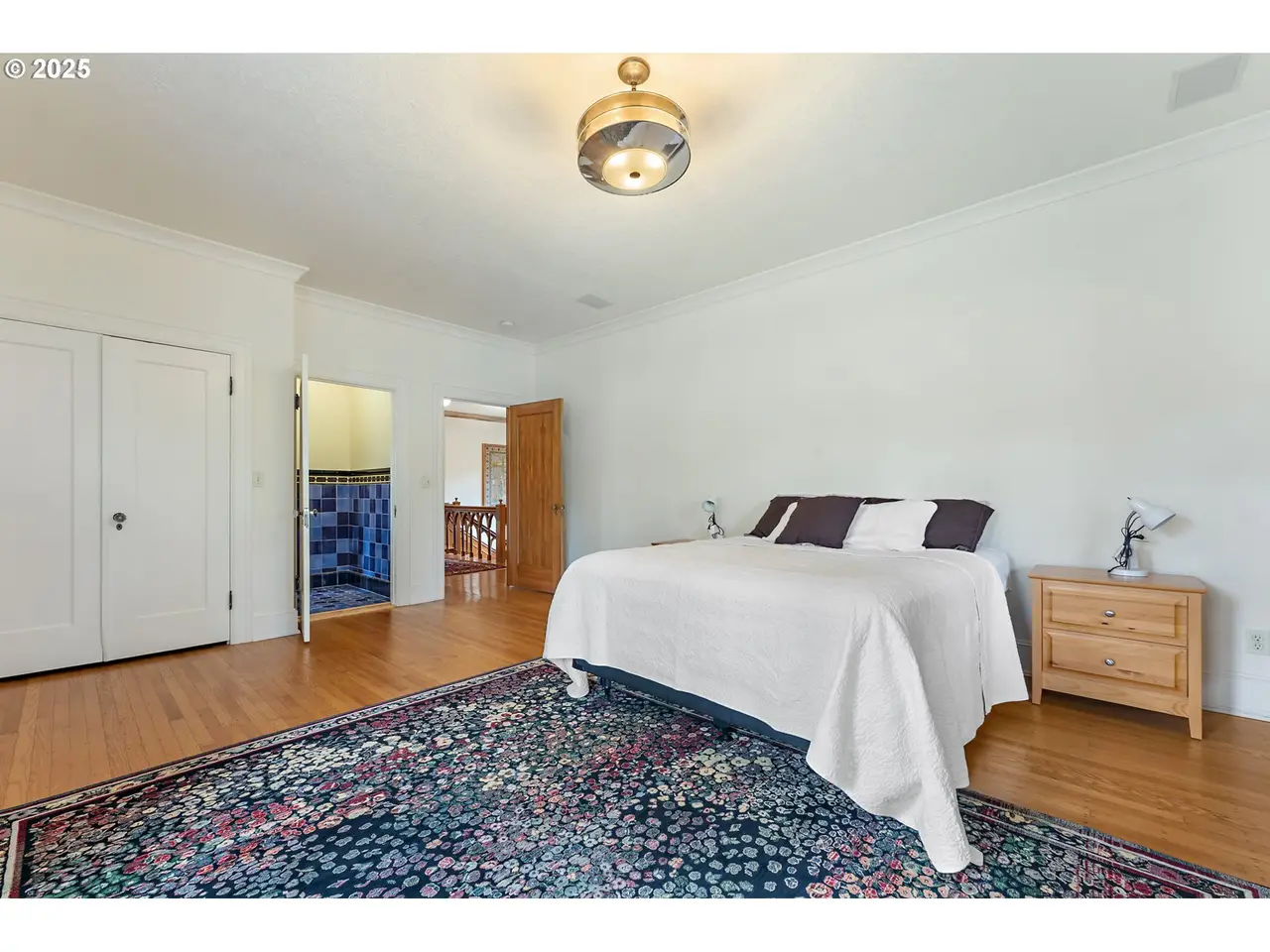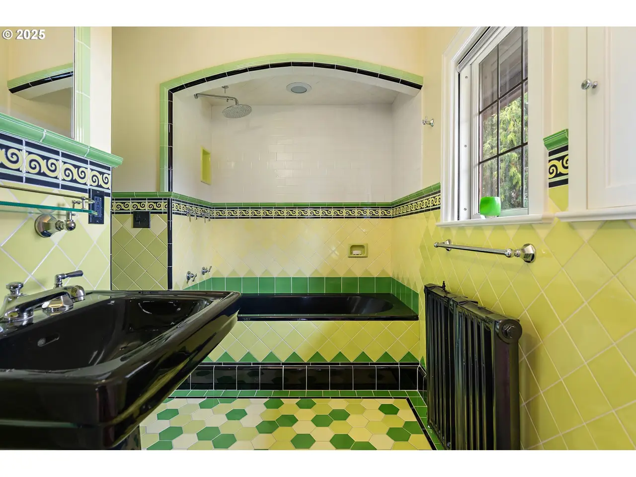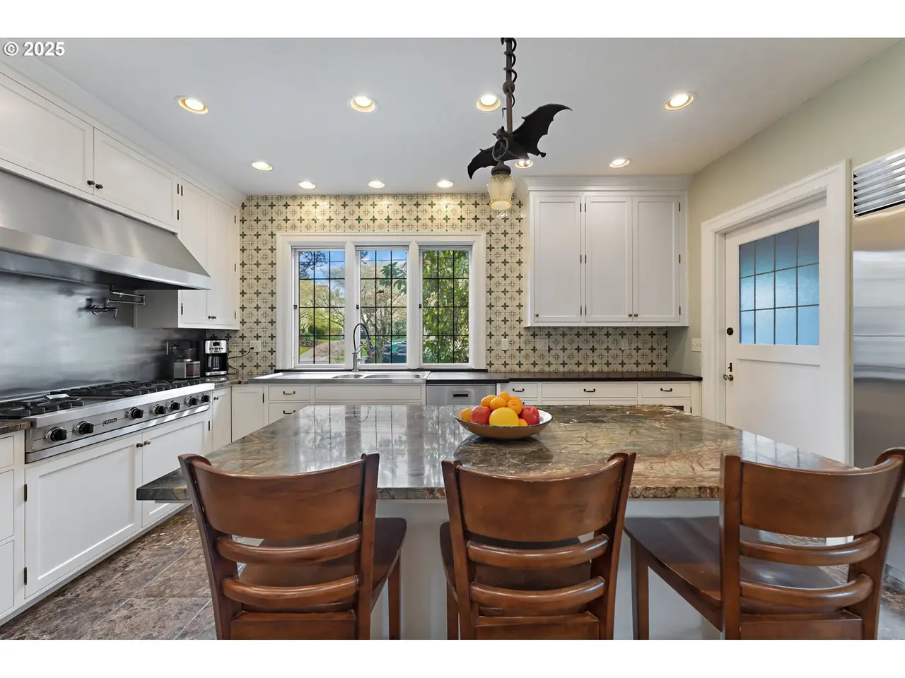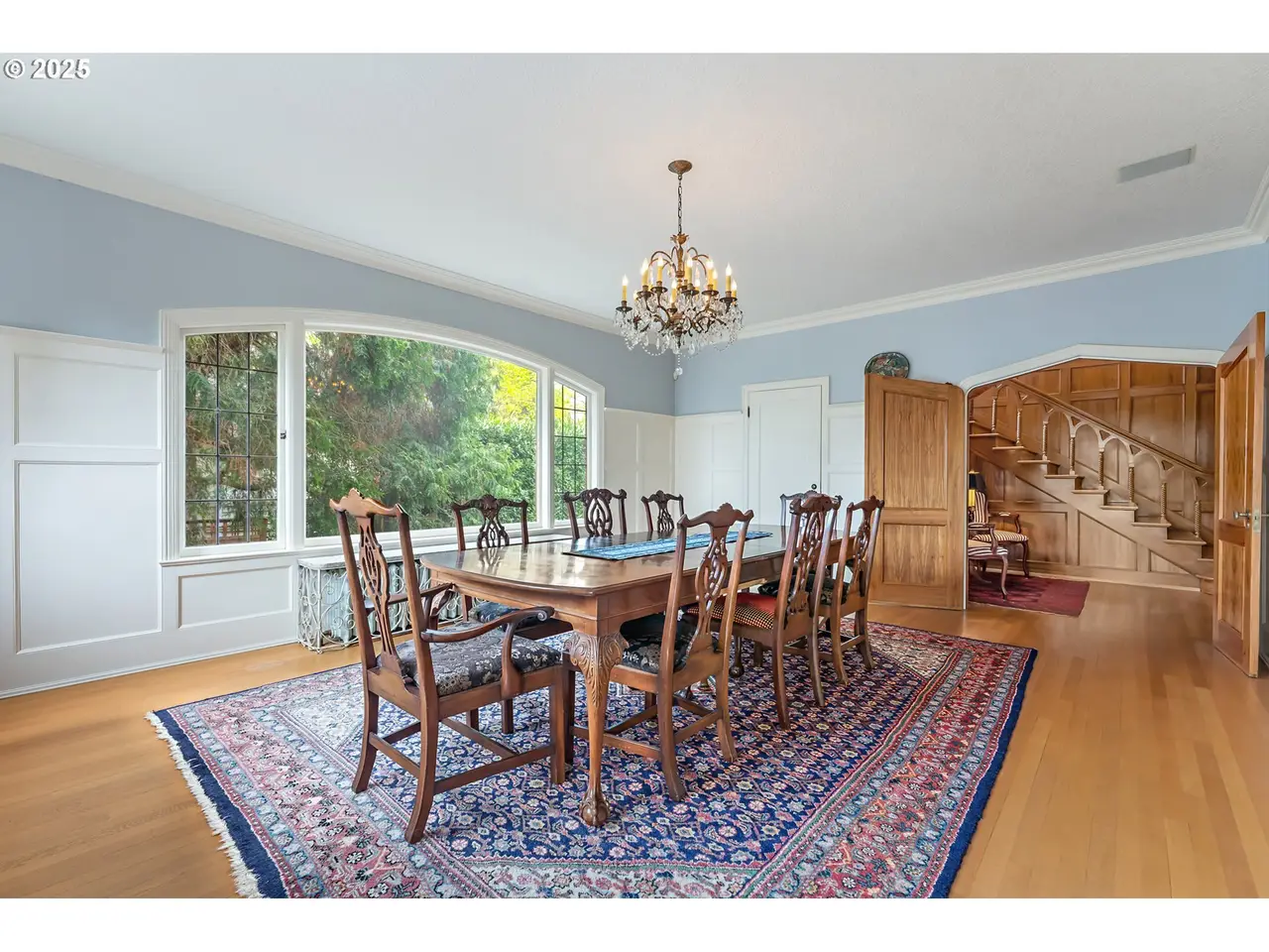 Yes, this is *that house*! Legendary Eastmoreland English Cottage with stunning stone, brick, & stucco exterior graced with an elaborate rolled roof. Pristine, honey-warm gumwood glows throughout the house, particularly astonishing in the fully paneled foyer and carved staircase/landing gallery with its three gorgeous leaded and stained glass windows. Designed for entertaining, the circular floor plan leads to a 20 x 25 living room with sculptural stone fireplace and French doors to a covered patio, expanding your gathering space. Explore the exquisite library with its vaulted ceilings, extensive built-ins, & cozy fireplace; greet the day in the brilliant morning room which is the lower level of the remarkable architectural turret. Period-sensitive, incredibly practical chef's kitchen w/handmade tile, pillowed marble flooring, granite countertops and island, huge gas range with pot-filler; carry your creations through to the long, gracious dining room where there is always room for one more at table. Everyone has their own retreat with four ensuite bedrooms on the second level, each with a delightful Art Deco-inspired Pratt & Larson full tile bath; the primary bedroom has a huge rooftop deck on top of the turret, with a beautiful view. The finished top level provides home office, media, game, & casual relaxation space, with its own heating/cooling system for ideal comfort. On the sleek, spacious lower level you'll find a wine cellar, storage, laundry, a bath with dog wash/gardener shower, & a full 1 BR/1BA apartment with its own entrance. The 14,900 SF lot provides gardening spaces as well as an extensive patio to enjoy the magisterial presence of the castle-like west side of the home. Shopping and dining are nearby in Woodstock and Sellwood/Moreland; you're also blocks from Eastmoreland Golf Course, Reed College, and MAX Orange Line.Located on a coveted street in SE Portland's premier destination neighborhood, this is more than a house: it's an experience. [Home Energy Score = 1]