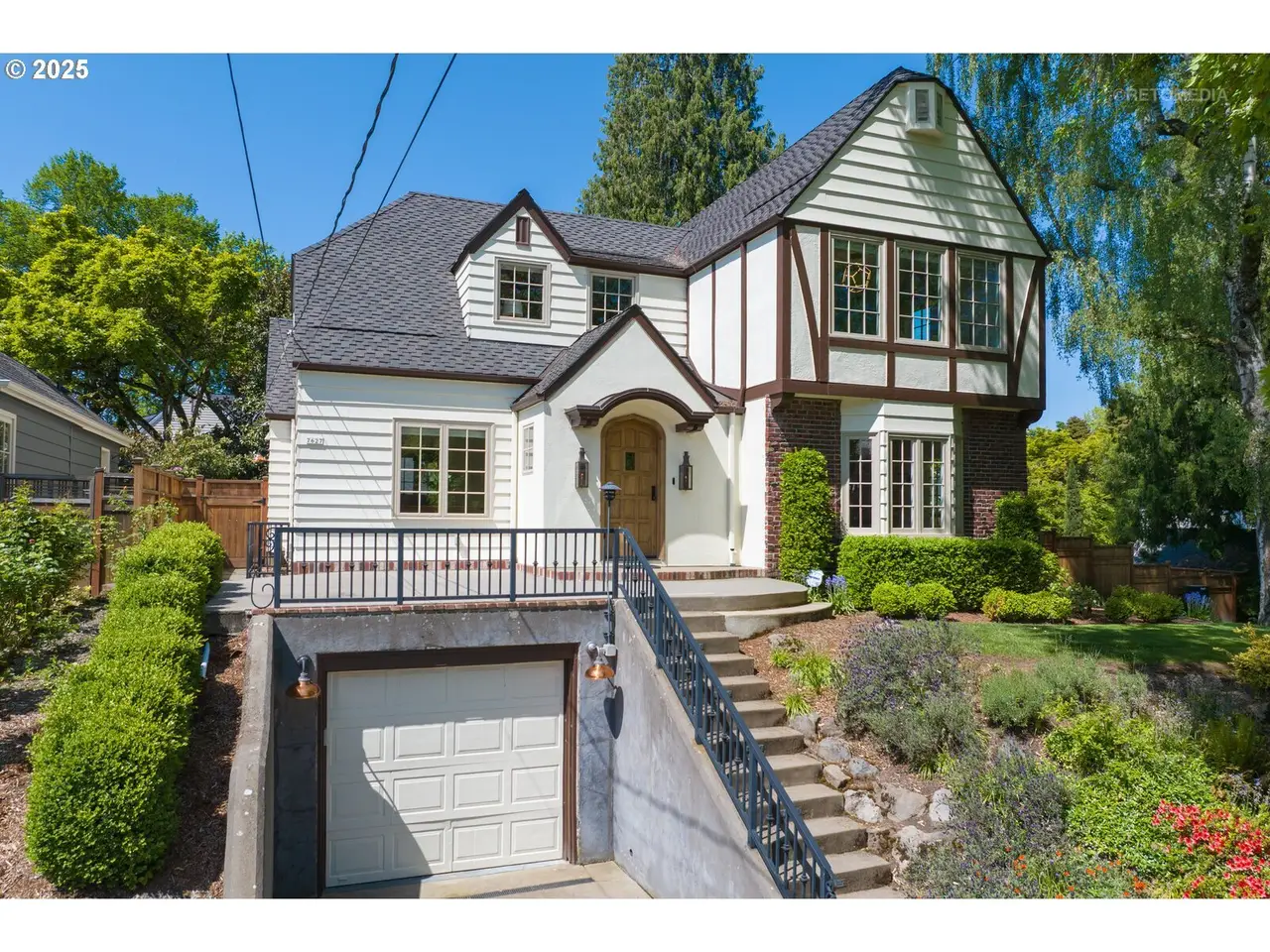 Situated on a rare double lot in Portland’s iconic Eastmoreland neighborhood, this masterfully reimagined 1927 Tudor blends historic character with luxurious, contemporary design. Following a complete studs-out renovation completed in 2021, every detail was curated to elevate both form and function — a true showcase of craftsmanship and style. Original architectural charm remains at the heart of this home, highlighted by custom millwork and handcrafted staircase railings that echo the Tudor lineage. Leaded glass windows, a stucco fireplace, and push-open cabinetry seamlessly conceal storage in the elegant living room. An architectural light fixture from the San Francisco MoMA welcomes you in the entry, while gas lanterns by Bevolo of New Orleans illuminate the front porch with timeless ambiance. The chef’s kitchen is a stunning focal point, outfitted with top-of-the-line appliances including dual Miele dishwashers, a statement LaCornue range, Fulgor wall oven, Sub-Zero refrigerator, and elegant lighting from Original BTC in England. Entertain in style with intuitive flow between kitchen, dining, and living spaces, complemented by a main floor office with custom built-ins and a refined powder room. Upstairs includes the luxurious primary suite with a walk-in closet and adjacent bedrooms reconfigured to maximize space and storage. The lower level offers a finished basement with generous ceiling height including a bonus/media room. A dedicated laundry room with custom drying racks and a full bath complete the space. Outdoors, the beautifully landscaped backyard is a private retreat with raised garden beds, blueberries, and a fenced pumpkin patch. Included with the property is the adjacent lot, bringing the combined property size to an impressive 10,000 sq ft — a rare and valuable find in this established neighborhood. With a 50-year Presidential roof and every detail carefully considered, this Eastmoreland gem offers historic elegance paired with modern livability. [Home Energy Score = 4. HES Report at https://rpt.greenbuildingregistry.com/hes/OR10238881]