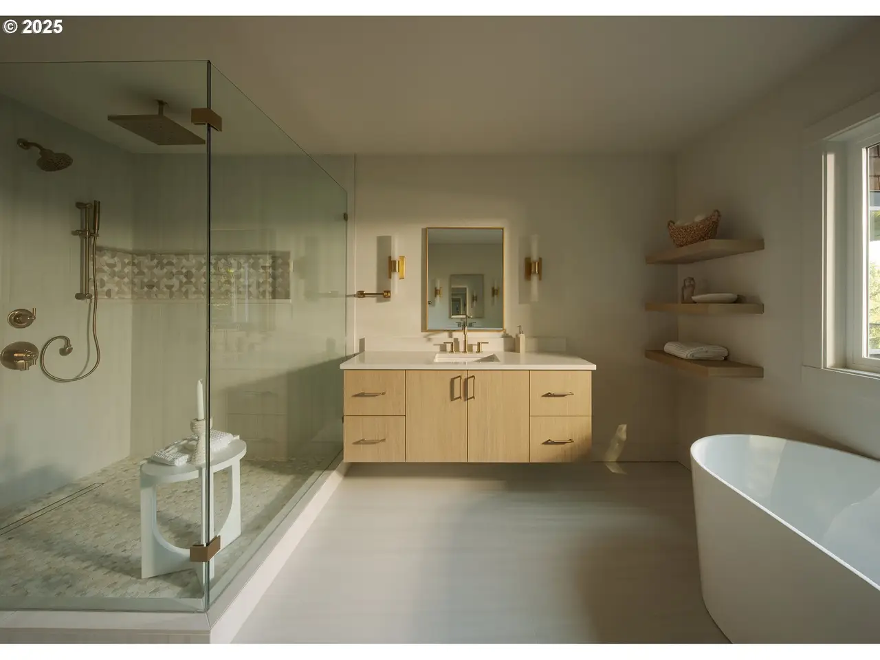 Set above Marquam Nature Park, this home offers privacy, quiet, and horizon views. New remodel in 2025, bringing a fresh perspective to the design while honoring the home's original feel. The main level opens with vaulted ceilings and hardwood floors that carry through the spacious living room, dining area, and modern kitchen, all filled with natural light. A generous island makes space for conversation while wide glass doors lead to a deck suspended above the forest. Morning coffee, casual dinners, or evenings with friends all seem to belong here. A gas fireplace adds warmth and atmosphere to the living room. The primary suite provides a spa-inspired bath with a walk-in shower, soaking tub, two walk-in closets with built-in storage, and private access to the deck. Downstairs, three bedrooms and a full bath surround a large bonus room ready to become a home theater, game room, or wet bar. A second fireplace here makes the space especially inviting. A walk-in laundry, expansive storage room, and private sauna add thoughtful touches. Outside, a two-level deck extends the living space into the trees. The upper deck frames long views, while the lower places you closer in the canopy. The three-car garage, a rare find in the West Hills, leaves room for more than cars--bikes, tools, and hobbies all have their place. This location combines retreat and connection. Neighborhood schools and shops are nearby, and OHSU is only minutes away. It's a home that makes both city and nature feel equally close. With its full remodel, open layout, and rare setting above the trees, this property offers a way of living that is both elevated and grounded. A place to gather, to rest, and to step easily between forest paths and city streets. Schedule your private showing today.