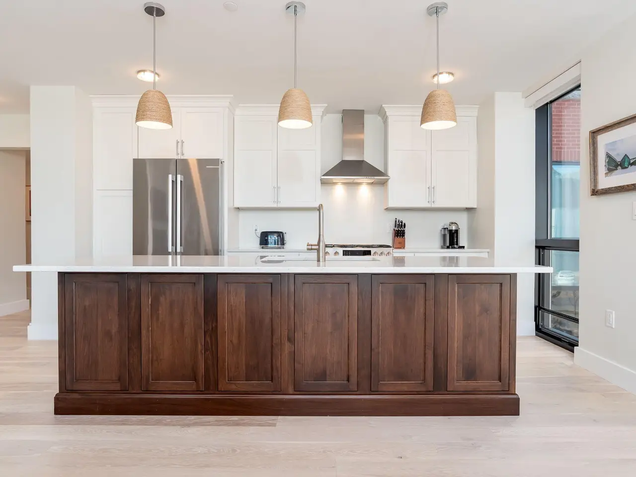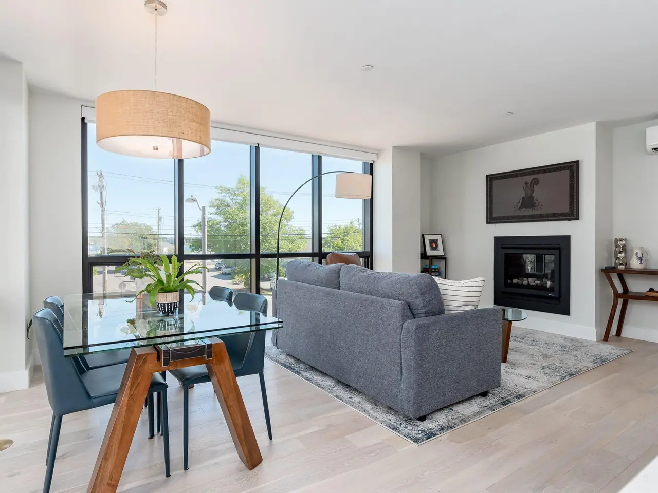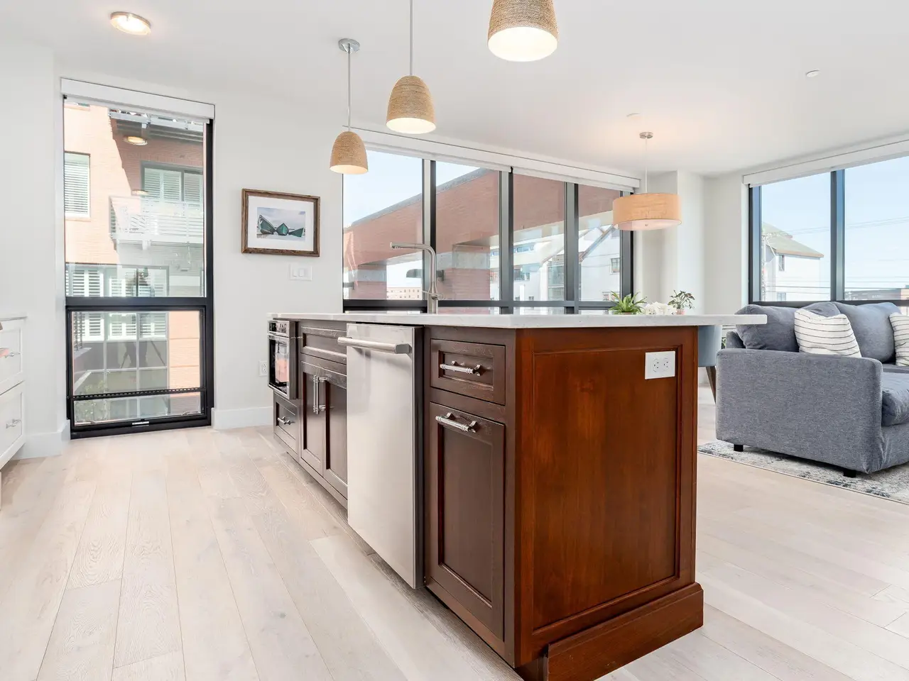 Stunning, sun-drenched corner unit with floor-to-ceiling glass and sparkling water views! Pristine, two-bedroom, two-bath condominium in Hobson's Landing features a gorgeous kitchen with custom walnut cabinetry and crown molding. Gracious entry hall, ensuite primary bedroom with spacious walk-in closet, plus an ensuite guest bedroom. Deeded garage parking for two cars, including a private EV charging station. Building amenities include a lobby with concierge, club room with TV, deck, fireplace and full kitchen, landscaped terraces, fitness center, shared work/study space, dog wash, reservable guest suite, shared bikes and Tesla. Fabulous lifestyle in the midst of Portland's historic waterfront neighborhood!