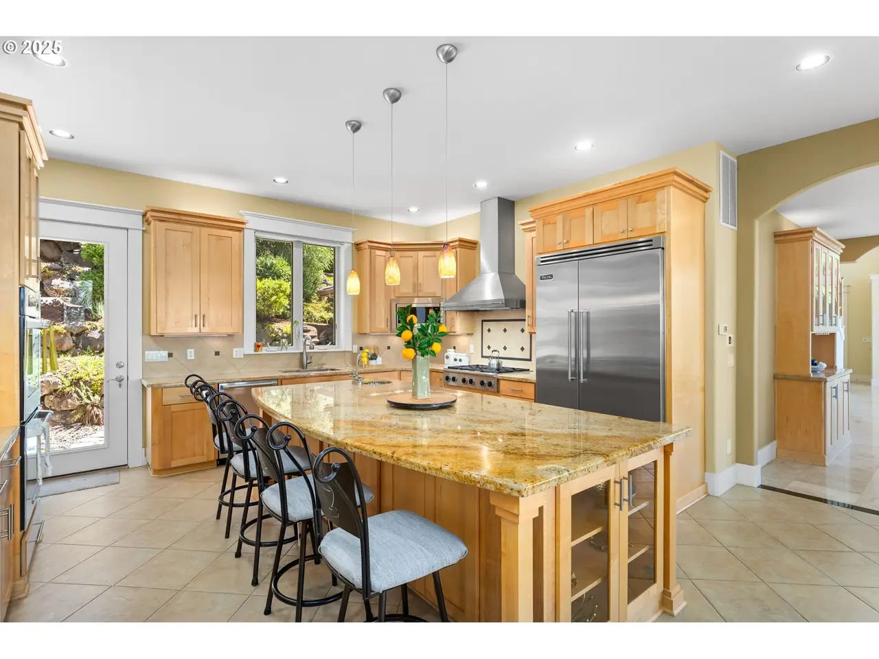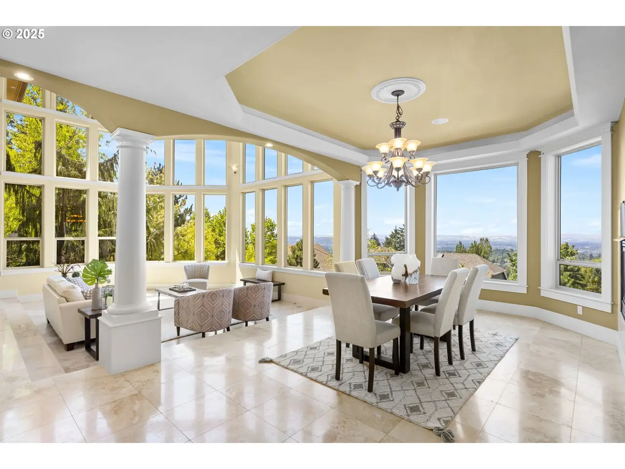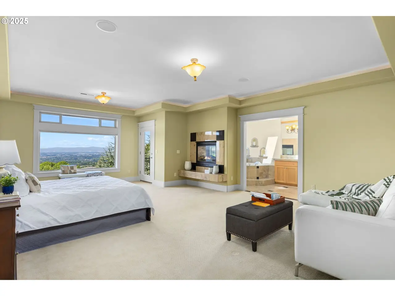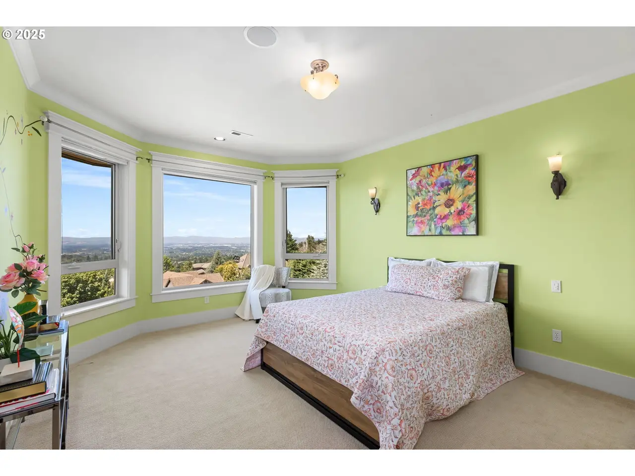 Resort Living Near Work. First time on the market for this stunning custom-built home by Fred Buller in highly sought-after Forest Heights! This luxury residence features a sought-after southwest orientation with commanding panoramic views of the Tualatin Valley and Coast Range. Soaring 21-foot ceilings in the great room greet you upon entry, setting the tone for this one-of-a-kind home. Ideal for entertaining, the open-concept design includes a formal dining room with a pass-through fireplace, a Chef's kitchen with high-end appliances, oversized island, custom cabinetry with unique glass shelving allowing for light to pass through to each level, walk-in pantry, and a cozy sitting area. Plus a main floor guest bed and bath suiting accommodating all ages of visitors. Step outside to a private garden retreat featuring a 15-foot waterfall with three distinct water patterns, koi pond, lotus plants, lighting, and serene landscaping - designed for year-round relaxation. Upstairs, the luxurious primary suite includes dramatic views, fireplace, spa-style bath with walk-in double shower, soaking tub, and a custom dressing room with built-ins. Additional upstairs features include guest bedrooms, full baths, and a dedicated home office. Lower level includes a full home theater, game room with pool table, full entertaining bar, and guest suite with private exterior entry - perfect for extended stays, storage and wine cellar. Enjoy the mature landscaping including a custom grape trellis. Three-car garage, high-end finishes throughout, and an unbeatable location close to work and recreation. Ideally situated with a green space lot across the street will provide a protected view in the future. Truly resort living in the city. [Home Energy Score = 1. HES Report at https://rpt.greenbuildingregistry.com/hes/OR10240059]