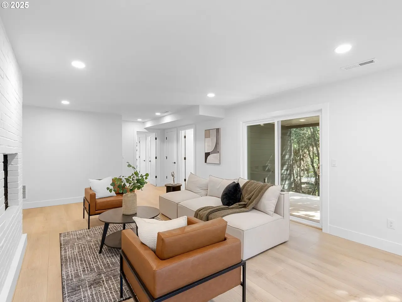 Stunning!! Remastered Mid-Century. No corner left untouched in this meticulous remodel. Large open floor plan with engineered hardwoods and a rock fireplace that steals the show when you enter. Gorgeous chefs kitchen with custom cabinetry, a gigantic quartz island and undercab lighting makes you want to cook for everyone you know. Fill your home with events that stretch out onto the deck, bbq or just enjoy the landscape and quiet surround that's amplified with the park like hardscape. Each bathroom has stunning unique tile work, and quartz countertops. Basement is a fantastic entertaining space that includes another wood burning fireplace and custom bar with granite. Perfect ADU w/separate entrance and full kitchen- included in basement sqft, host out of town guests or use for additional income. This home is a show stopper!!