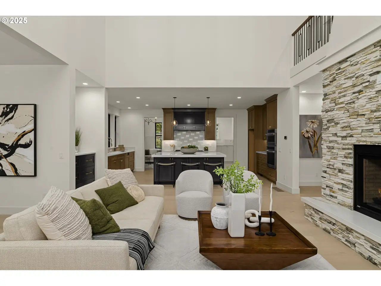 Stunning new construction, backing to private greenspace in coveted West Haven neighborhood! Built by Jorgenson Design and Development this home is thoughtfully created with a Primary Suite on the main level and secondary suite upstairs. As you enter into an expansive foyer you are welcomed with a large 2-story great room with full height fireplace and walls of windows looking out to the private scenery. The Kitchen is a focal point of this home with a 9' island, 42" gas range with custom hood, full height cabinets and working pantry with plenty of room for storage, counter appliances and daily goods. A lounge area off of the kitchen is a surprising treat offering a quiet place for morning coffee or an evening beverage as it comes complete with wet bar and access to outdoor patio. The upper level offers secondary suite w/ large walk-in closet and access to private covered deck overlooking greenspace. Additional guest bedrooms, bathroom, office and second laundry area located upstairs. A masterful landscape plan includes multiple outdoor destination areas specifically designed for owners to enjoy the quiet outdoor setting on their own or while entertaining friends and family year round. Interior selections include quartersawn oak cabinetry, 9" wide plank engineered wood flooring, oversized Calacatta flooring and walls in the Primary, exquisite hardware and lighting, and much more. for floorplan or to schedule private showing. Home is under construction, estimated completion is 8/30/25. Renderings as shown are for illustration purposes only. On site build may vary. Actual lot not represented in photos. Taxes not yet assessed.