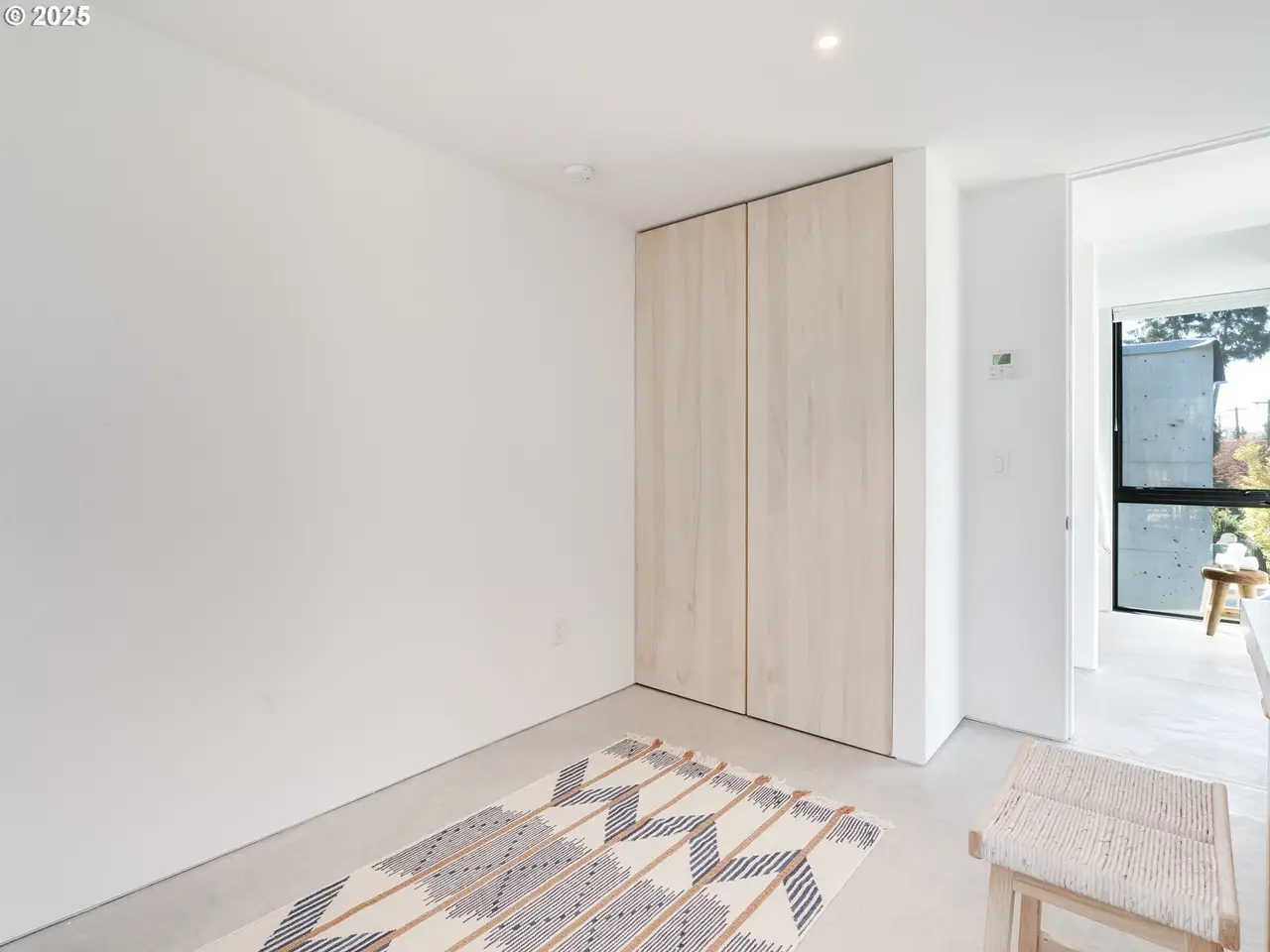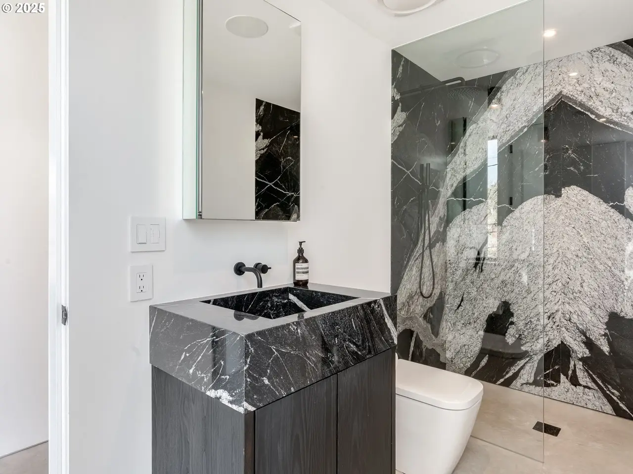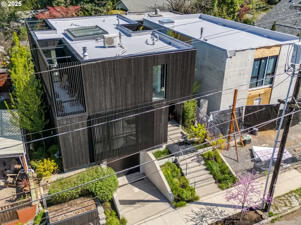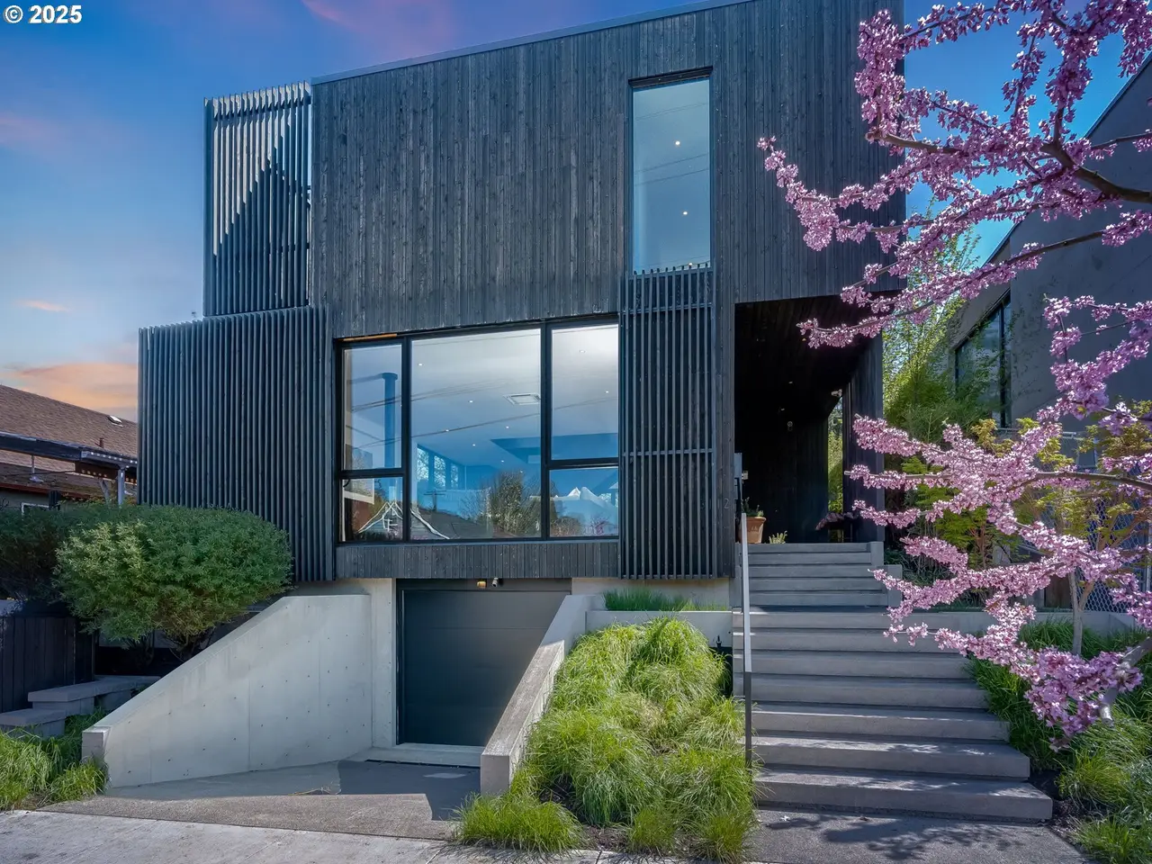 The Atrium House is a rare architectural gem in the heart of the Richmond neighborhood, just blocks off trendy Division Street. This infill project by Capsule Development brings custom-quality design to the Eastside--where creativity, craftsmanship, and nature meet. This modern masterpiece features soaring ceilings, heated concrete floors, and a stunning three-story atrium. Anchoring the living space is a steel staircase, fabricated locally in Portland, spanning all three levels. The lower level boasts a cedar sauna paired with a custom steel cold plunge and shower, creating a private wellness retreat. Lush, curated greenery surrounds the space, enhancing the sense of calm and relaxation. On the main floor, the chef's kitchen is equipped with high-end, built-in appliances from Bertazzoni and Fisher & Paykel. Throughout the home, solid oak custom cabinetry offers enduring beauty and a refined, timeless aesthetic. Luxury materials like Maori Brazilian granite slabs elevate the kitchen and baths. Just off the dining room, sliding doors open to the back patio for seamless entertaining. In the living room, a RAIS rotating wood stove serves as both a cozy heat source and a striking sculptural centerpiece. Upstairs, you'll find all three bedrooms, a dedicated laundry area, and a guest bath. Each bedroom features its own balcony--perfect for enjoying fresh morning air or a relaxing evening breeze. Floor-to-ceiling windows flood the space with natural light, enhancing the open, airy feel throughout. Out front, rolling shutters add a dramatic architectural touch while offering both privacy and adjustable light control. A truly one-of-a-kind property that celebrates thoughtful design and modern living in one of Portland's most sought-after neighborhoods. [Home Energy Score = 8.]