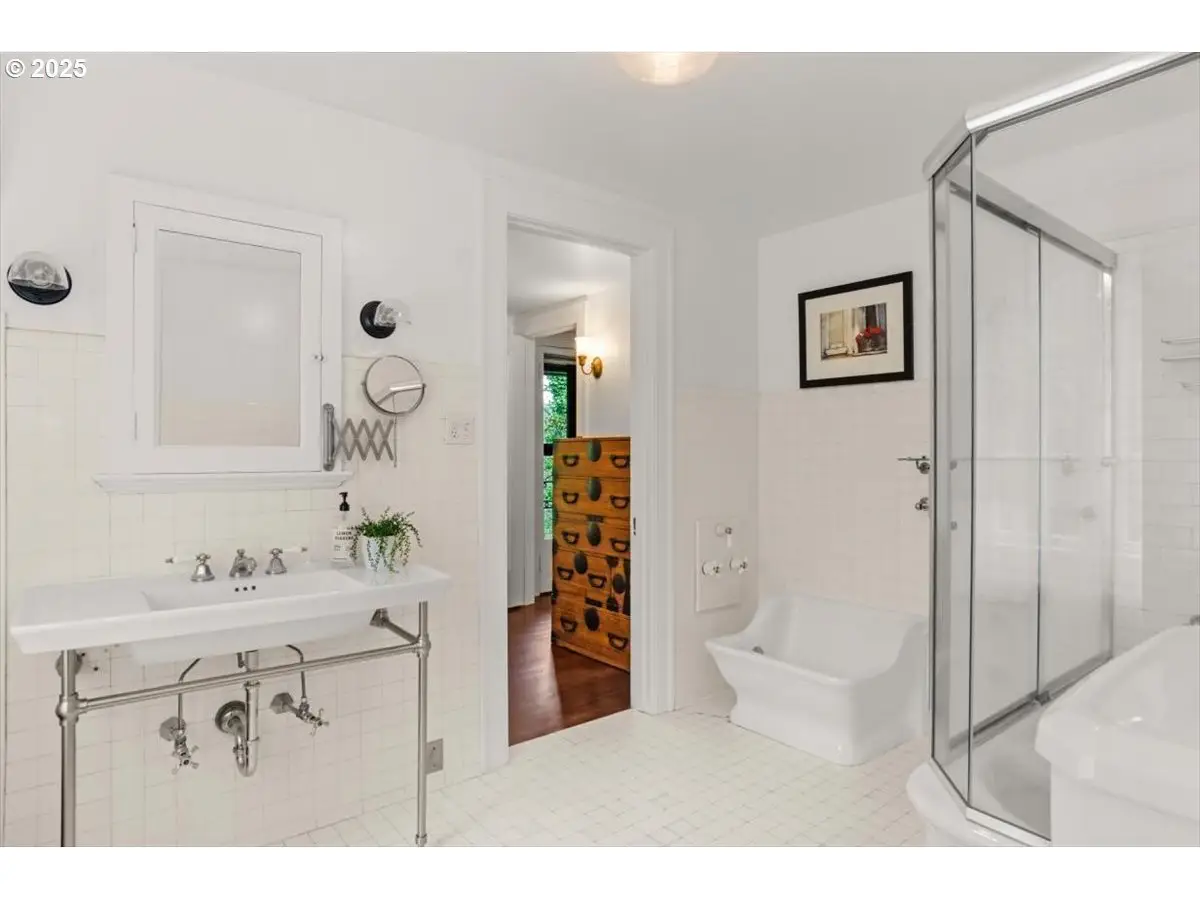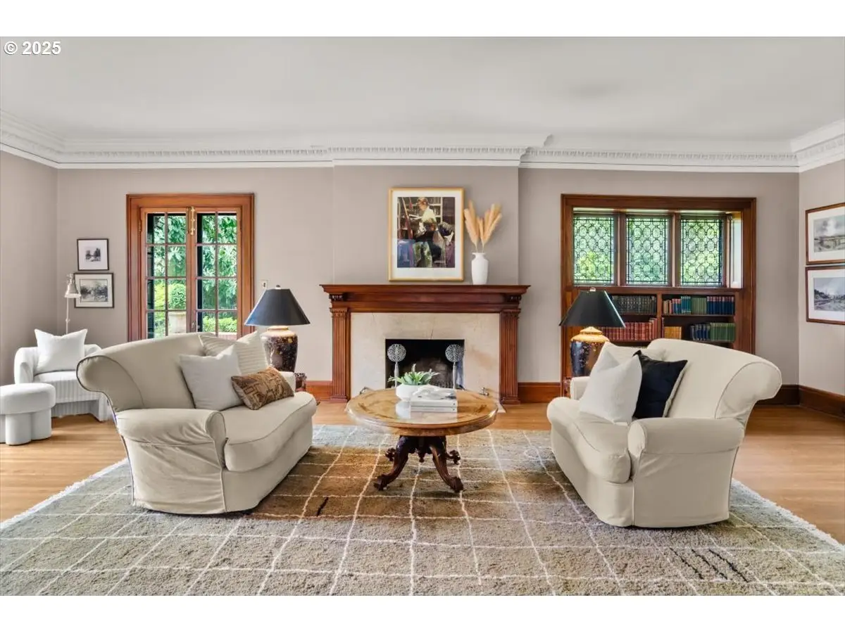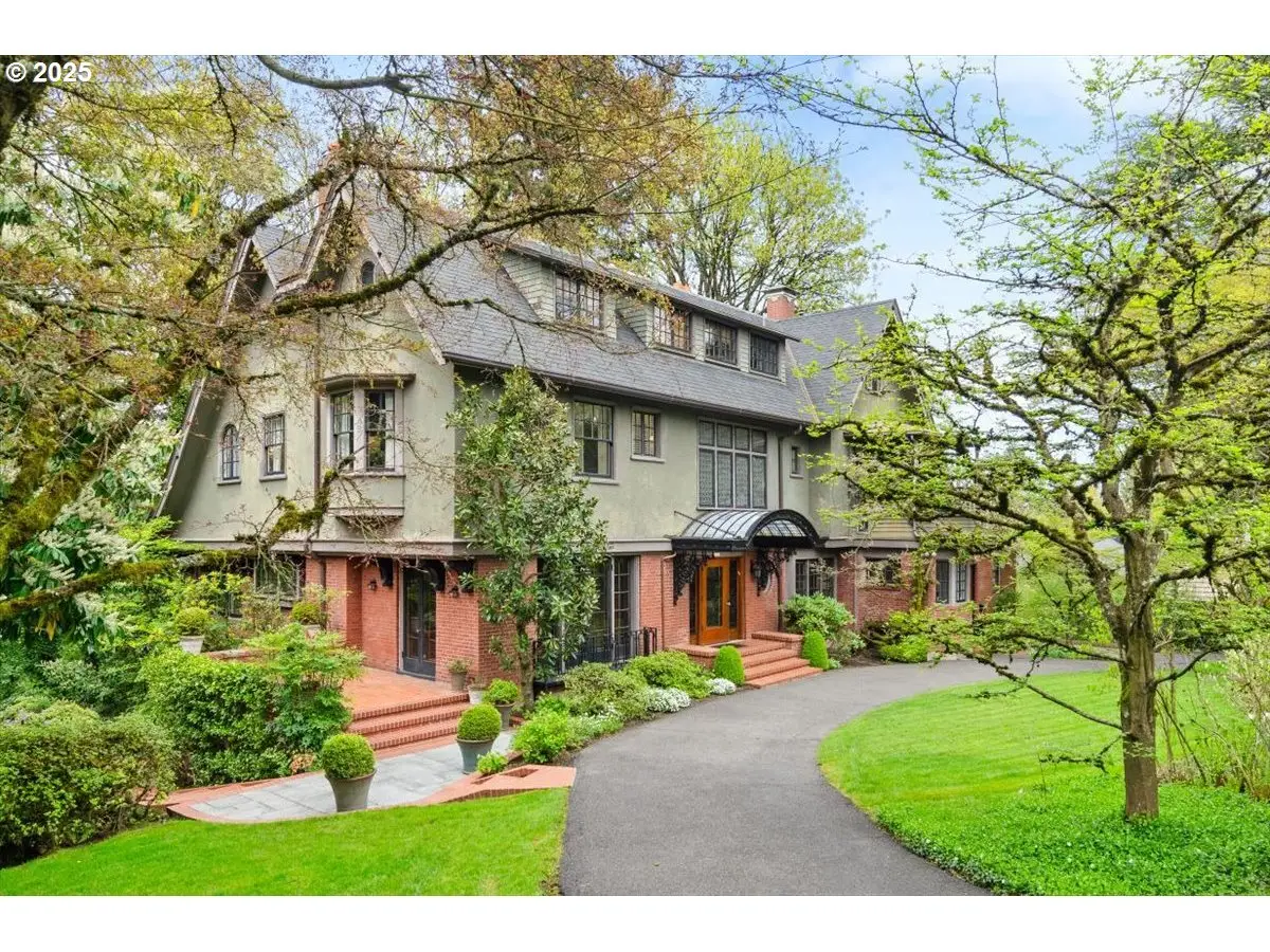 Designed in 1912 by Architect Josef Jacobberger, the Giesy/Failing House is a stunning blend of Craftsman and Arts and Crafts styles, offering an unparalleled sense of grandeur. Ideally located in the coveted West Hills on 1.55 acres, this property features steep intersecting gabled roofs, a cantilevered stucco second floor, and exquisite wrought-iron detailing. The distinguished arched glass and wrought-iron canopy at the entrance sets the tone for the home's stately interiors. Inside, the high ceilings throughout, wood paneling, leaded glass windows, intricate moldings, and multiple fireplaces create an atmosphere of timeless sophistication. With five bedrooms, four full and two half bathrooms, and expansive living spaces — including a grand foyer, sunroom, library, formal dining room, and recently remodeled kitchen — this residence seamlessly blends architectural heritage with modern convenience. Listed on the National Register of Historic Places and located on a dead-end street just minutes from parks, trails, the city, major hospitals, schools and high tech, this is a rare opportunity to own a true Portland landmark. [Home Energy Score = 1.]