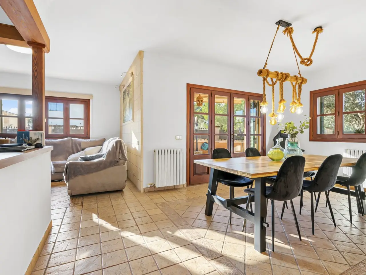 For sale is a well-kept Mediterranean villa in the municipality of Marratxí, in the district of Portol, which impresses with a generous living space of approx. 222 m² and a plot area of approx. 420 m². The detached house, built in 2005, is located in a quiet residential area and offers a harmonious combination of living comfort and practical room layout. The villa has a total of six rooms, including five bedrooms and three bathrooms. Two of the bedrooms are located on the first floor and three further bedrooms are located on the second floor. The master bedroom is particularly noteworthy as it has its own dressing room and en-suite bathroom and offers direct access to a spacious terrace of approx. 30 m². The comfort of this property includes oil central heating and air conditioning, which ensure a pleasant indoor climate. Another highlight is the private pool for outdoor sports activities. A garden area creates an inviting atmosphere. A garage is also available and offers space for vehicles as well as additional storage space. Connections to mains water and mains electricity ensure a reliable supply to the property. The villa is equipped to modern standards and offers all the necessary amenities for comfortable and practical living. The location in Marratxí offers a combination of tranquillity and proximity to urban amenities. Stores, schools and public transport are within easy reach, making daily life convenient and stress-free. If you are interested in this property or would like to arrange a viewing, please do not hesitate to contact our office. Take the opportunity to get to know this attractive residential opportunity in a sought-after region.