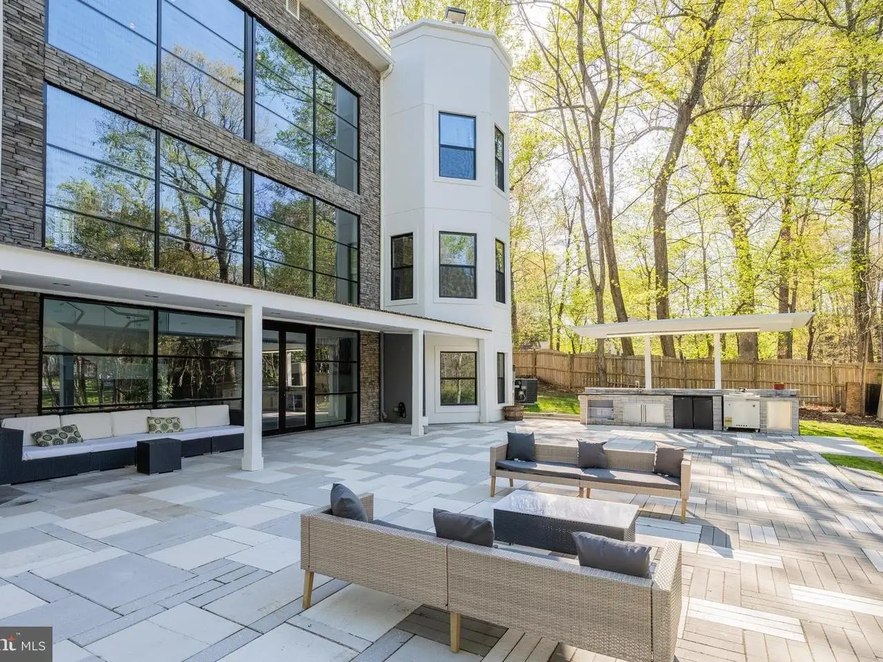 Designed by a seasoned architect home owner as a personal legacy estate, this 6-bedroom, 7 full + 2 half bath residential tour de force spans approximately 13,000 sq ft of masterfully curated interiors, nestled within one of Potomac's most prestigious enclaves. Inspired by the beauty of French chateau and elevated with sleek, modern innovations, this home blends old-world elegance with cutting-edge materials sourced from across the globe. Step through a dramatic Acasa security steel door entry into a vast tiled foyer and soaring 2-story central Living Room, crowned by an imported three-tiered artisan glass chandelier. From there, experience airy, sun-drenched interiors defined by walls of glass, steel beam construction, and striking floating glass staircases. From solid-core Canadian doors to premium bamboo flooring, handcrafted Turkish tiles, and porcelain accents, every finish tells a story. The result is a seamless flow of light and energy throughout the home-perfectly complementing the estate's bold, contemporary vision. Designed for effortless grandeur, the formal Dining Room offers the perfect backdrop for elegant entertaining on any scale. The open-concept Kitchen, featuring custom cabinetry, double sinks, two large pantries, center island, and sleek finishes, flows into a spacious Family Room with a gas fireplace. Two main-level Bedrooms include a private Guest Suite with its own entrance, living space, full bath, driveway access, and separate 2-car Garage-ideal for multi-generational living or long-term guests. A private, coded-entry Office, additional Powder Room, and panoramic views of lush grounds complete the level. A showstopping architectural centerpiece, the upper level features a glass-enclosed Gallery anchored by the majestic three-tiered glass chandelier, overlooking the open Living Room below. This unique construction frames the upstairs in light and openness. The Primary Suite is a sanctuary of refined tranquility, featuring spa-caliber finishes, expansive dressing areas, and serene views. Three additional spacious Bedrooms each enjoy ensuite baths and generous storage. A versatile Flex Room- perfect for a wellness space, prayer room or additional office, a stunning Family Lounge framed by walls of windows with panoramic views, and a fully appointed Laundry round out this floor. The spectacular above-ground lower level is wrapped in a dramatic wall of 3-story high windows that flood the interior with natural light and showcase breathtaking views of the rear grounds. A sculptural glass staircase connects the lower level to the main floor above while serving as a visual statement piece. This is a true entertainer's haven, complete with a quartz and Melamine designer Bar, three beverage centers, dishwasher, sink, mounted TV, and custom built-ins. The adjacent private Theater boasts tiered recliners, projection screen, and immersive surround sound. A bonus room with Full Bath access and large storage spaces adds flexibility for guests or work-from-home needs. Outside, enjoy the ultimate in al fresco living. A steel-roof covered patio and full outdoor kitchen with granite countertops, dual refrigerators, and professional hardscaping are framed by lush, landscaped grounds-ideal for intimate gatherings or large-scale celebrations. Additional features include a 5-zone HVAC system, two commercial-grade 100+ gal water heaters, three fireplaces, and rare access to public water and sewer. Infrastructure for a future elevator is already in place. Garage parking for three completes this extraordinary offering. Every inch of this home has been meticulously crafted to deliver the pinnacle of elegance, privacy, and innovation. This is not just a residence-it is a bold expression of luxury living at its finest. Nothing compares!