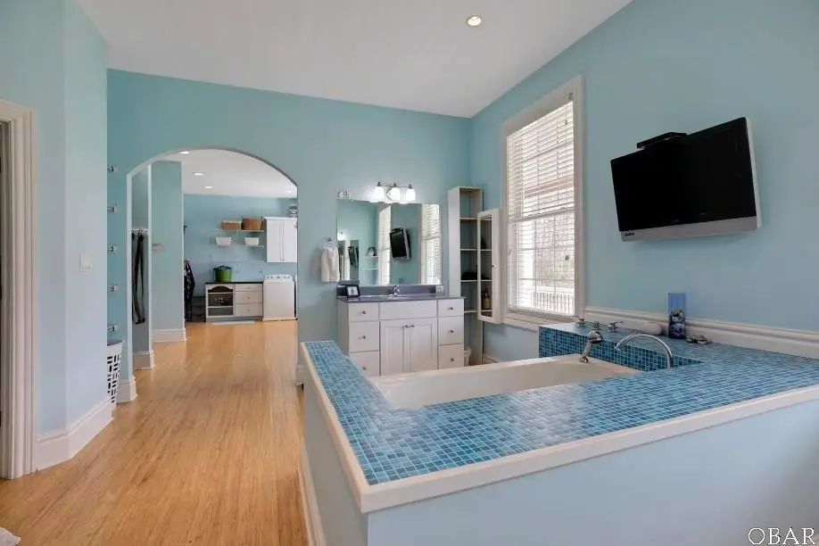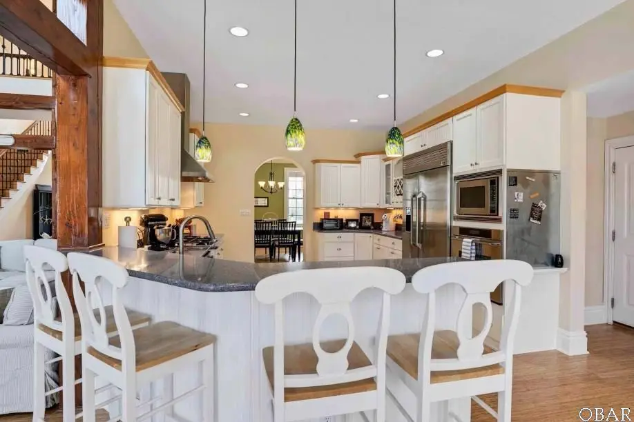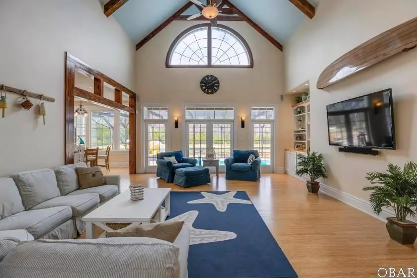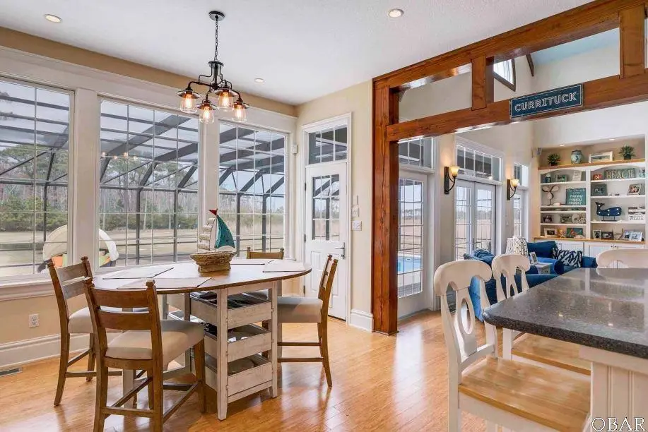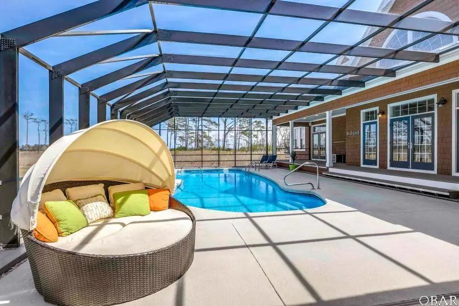 There are so many things to love about this home but the pool area might be the area you love most! Large pool, spacious patio, perfect bar/kitchen area, all screened in! Plenty of room to park either in the driveway or in the oversized two-car garage. Other features include cedar shake exterior, standing seam metal roof, North Carolina mountain rocks, 2x6 framing, custom interior trim, strand woven bamboo floors and spray foam insulation under house with conditioned crawl space. Sitting on over 8 acres, privacy is yours! Sound access is seconds away at the end of the street or jump in your golf cart to head to the Point Golf club after practicing on your own private three hole practice course out back!