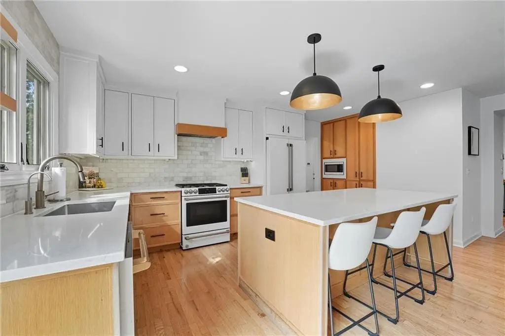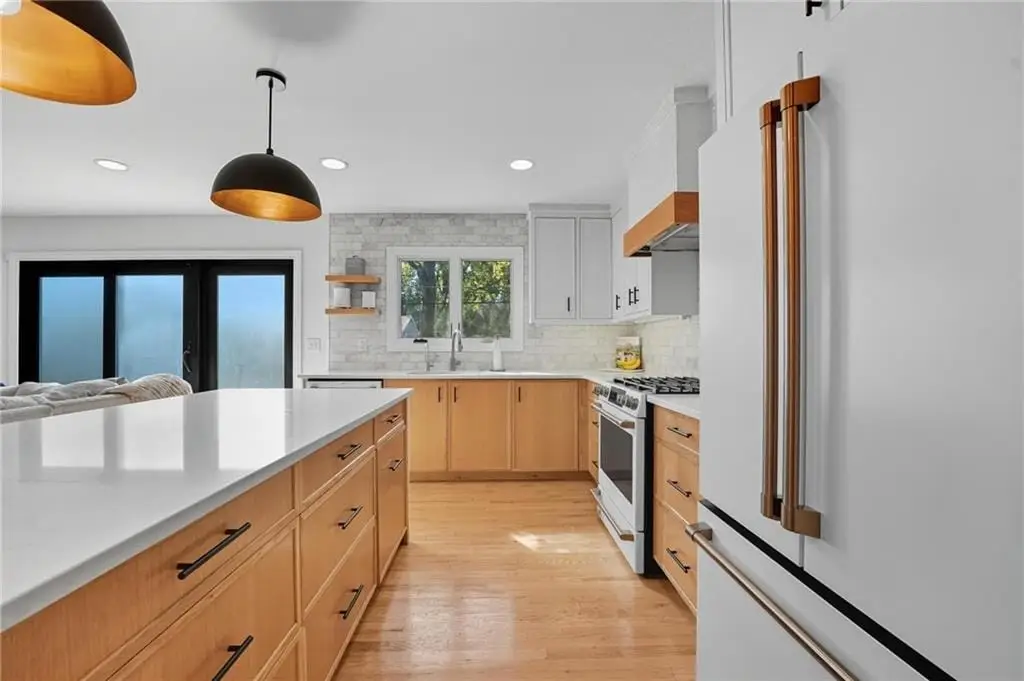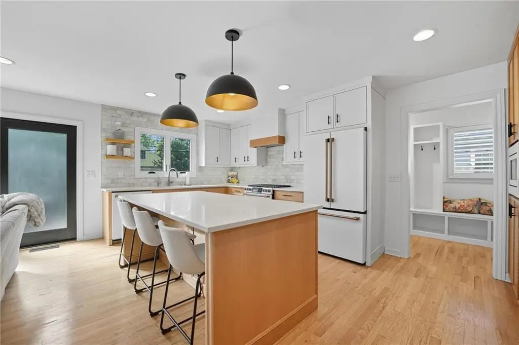 If you have been looking for a new home in Prairie Village, but don't want to pay new home prices? Then look no further! This Modern Designed Home was a complete remodel in 2020. The Open Concept has an eat in kitchen with space for breakfast table & Sitting Area, that opens to a hearth/family room. Plus a versatile area that could be used as a formal dining room or living room with a custom bar. This 1.5 Story Home Includes master Suite W/Large Walk In Closet, Double Vanities & Gorgeous Tiled Shower. A second master on the second floor, along with two additional bedroom & 2 Full Baths are featured. The Main Design Theme For This Home Is Modern Chic Incorporating Natural Wood, White Accents & Brass Finishes. One laundry and mudroom are off the kitchen with utility sink, plus a second laundry closet with a stacked washer and dryer are located upstairs. The finished basement and half bathroom offer plenty of additional living area to stretch out in. The new owner will enjoy the fall evening on your patio in the fenced, treed backyard. Or choose to sit on the front patio with friends and family and enjoy your wonderful neighbors. This home truly offers all that PV has to offer. Just moments away from The Village where you will enjoy shopping, dining on all levels and a community feeling like no other. Yes, this location truly offers easy access to schools, highways all the amenities you can imagine. In the last five years the following items have been updated: roof, gutters, three of four hvac units, added insulation, electric and plumbing, Built-in bar, custom plantation shutters, frameless glass shower doors, water filtration system, irrigation system, gutter guards, security system, gas logs and more! Enjoy all the newer items with out the new home price. DONT MISS THE DRONE VIDEO IN THE BRANDED VIRTUAL TOUR TAP.