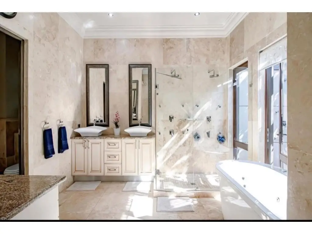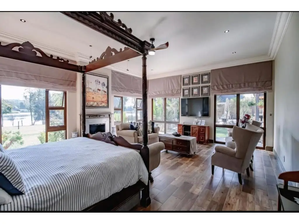 This opulent 1680 sqm residence graces us with its presence, boasting a sprawling and exquisitely designed residential mansion that is truly a masterpiece. Nestled within the prestigious and secure game reserve within Silver Lakes Golf Estate, this extraordinary 6-bedroom, 8-bathroom luxury mansion boasts uninterrupted views over the serene lake, creating a tranquil retreat for the discerning buyer. The 2160sqm property is a true oasis with lush gardens, panoramic views and most outstanding location. MAIN HOUSE FEATURES: - Outstanding Location - Spacious luxurious reception areas - 6 spacious bedrooms, with four bedrooms boasting their own private living a spaces. - 8 luxurious bathrooms, with four designed as en-suites - Expansive, private master bedroom on ground floor with charming living area, stunning lake views and outside shower for an added touch of luxury - Gourmet chef's kitchen with separate scullery and walk-in pantry - Walk-in cooler room - Large separate laundry room - Executive office with assistant office, bathroom, and kitchenette - Wine cellar and cinema room for entertainment - Indoor entertainment area with built-in bar - Expansive outdoor entertainer's patio with pizza oven, barbecue facilities and sparkling swimming pool - Indoor and outdoor entertaining areas seamlessly interflow, creating the perfect space for hosting lavish gatherings - Travertine tiles throughout - Sauna, steam room and 6-seater jacuzzi for relaxation - Air conditioning systems - A featured koi pond for ambiance of tranquility - Boma area with front row seats for breathtaking sunset views over the lake ADDITIONAL FEATURES: - Separate 2-bedroom flat with kitchen and living area, perfect for guests or staff - Solar inverter system and generator for sustainable energy - Double staff quarters for added convenience - Four Automated garages - Parking for six vehicles - Enclosed courtyard at entrance for security and privacy LUXURY FEATURES: - No expenses has been spared in ensuring the utmost comfort and convenience for the residents of this magnificent property. - This is the perfect place to escape the hustle and bustle of everyday life and immerse yourself in the beauty of nature. - This magnificent property offers a unique blend of luxury, security, and natural beauty! - Come and experience this property for yourself, as neither the photos or the description can truly capture its beauty and charm. See first hand the elegance and comfort it has to offer. ESTATE SECURITY: - Security is paramount in Silver Lakes Golf Estate with comprehensive measures in place. Call me for your private viewing!
