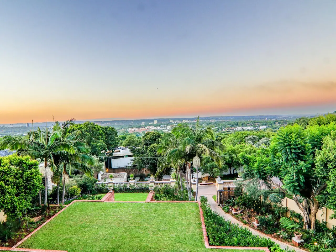 Palatial lavishly appointed mansion on 3 levels situated in the highly sought after suburb of Waterkloof / Waterkloof Ridge, with breathtaking never ending 180 degree views over Pretoria. Prime location in the very prestigious "Silver Oak Place" gated estate, set within the Safe Waterkloof security estate - it affords this flamboyant stylish villa double security. Surrounded by Embassies and Billionaires residences. Formal and informal living and entertainment areas, as well as bedrooms, all with huge stack and sliding doors, open onto the wrap around verandas with its beautiful vistas. This magnificent residence has recently been completely re-imagined and refurbished. No expense was spared, resulting in a "beyond perfection" masterpiece with its own special flair, unique taste and the very best quality finishes. The landscaped garden, swimming pool and "Babylonstoren" back/kitchen garden are a work of art. The 1 119 sq m main house, thatched 2 bedrm garden cottage and outbuildings comprising a huge gym, laundry and double staff living quarters are impeccable and move-in ready. The main residence comprises * 1st level: flowing formal and informal entertainment and dining areas, study (work from home office), magnificent kitchen & scullery, cloak room PLUS huge patio/veranda with gas braai and wooden braai all with spectacular views* top level: 5 en suite bedrooms, family room/pajama lounge, kitchenette, linen closets - PLUS the huge covered and open patio/veranda overlooking Pretoria* ground level: bar, entertainment area, wine cellar, undercover entertainment area, pool (with change room and WC facility)* 5 lock up garages with direct access to the main residencePlease contact me for an exclusive viewing of this impressive residence.