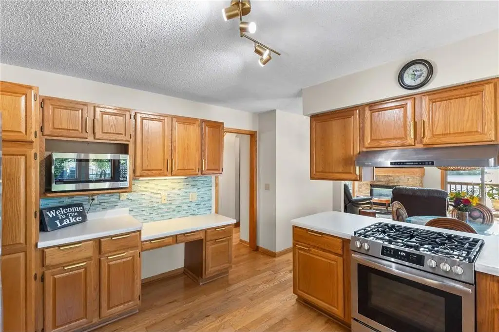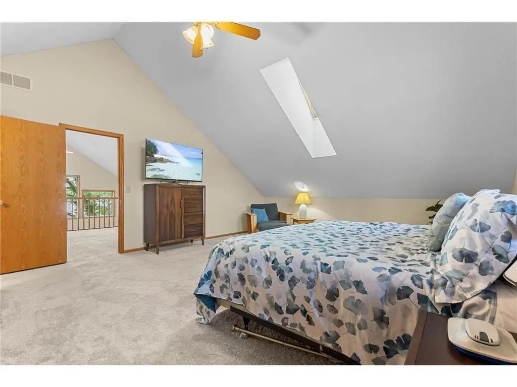 Enjoy life on Lower Prior Lake! This well-maintained home is perfectly situated on Grainwood Bay, just before Martinson Island-offering stunning views, a wraparound deck, and direct backyard access to the lake. Inside, you'll find hardwood floors, large windows, and multiple sliding glass doors that bring the outdoors in. The main level includes a bedroom, full bath, and laundry just off the three-car garage. Upstairs, the loft and spacious primary suite offer panoramic lake views, a walk-in closet, and a luxurious bath with soaker tub and walk-in shower. The walkout lower level features a second gas fireplace, wet bar, two bedrooms, and another full bath-plus two more sliding doors that open to a lakeside patio. Whether you're relaxing or ready to launch your boat, this is lake living at its best!