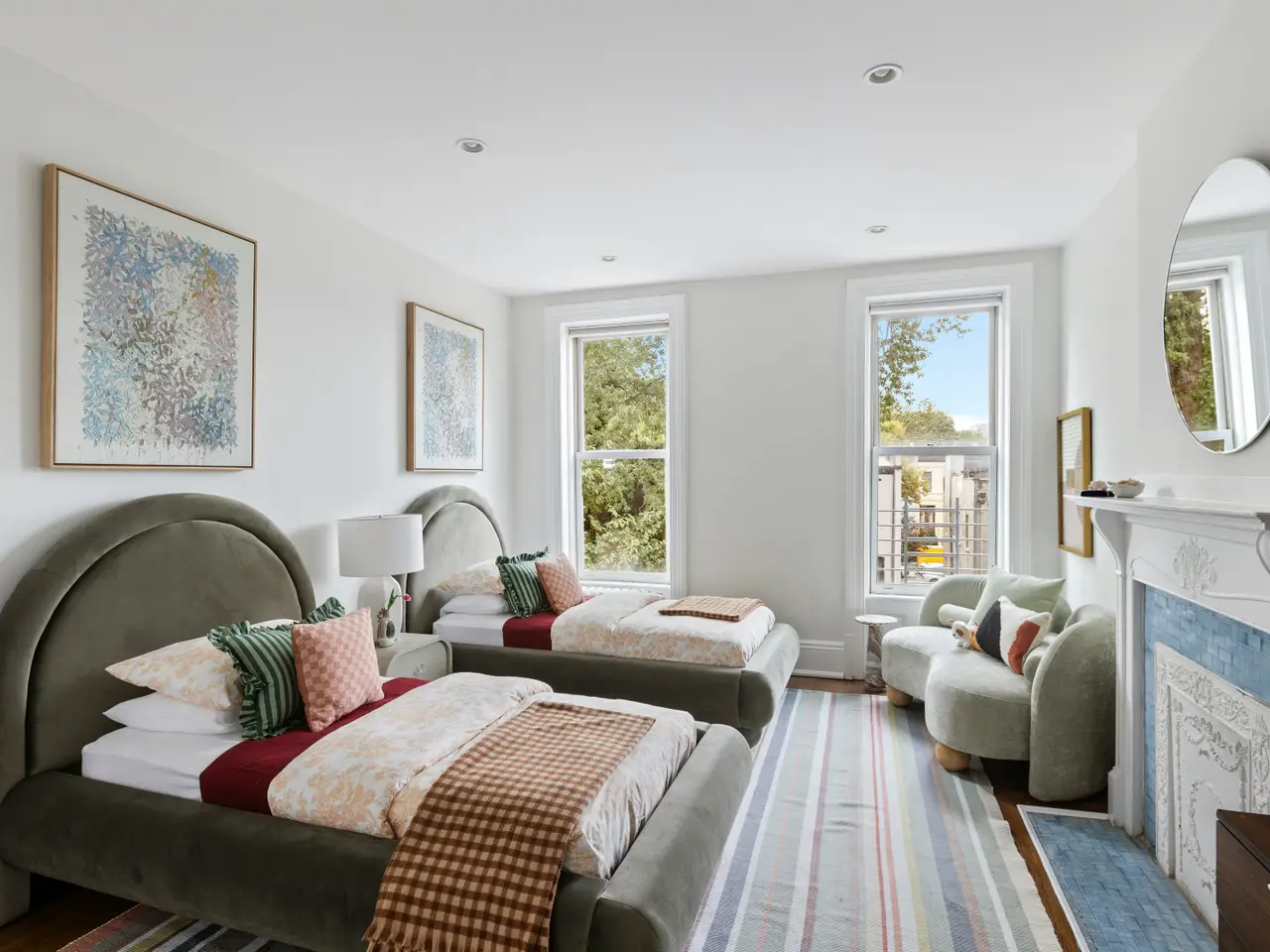 With a two-car garage and long driveway with space for four additional parking spots, an expansive backyard patio, and a full lounge level with a wet bar, 36 Rutland Road is designed for effortless entertaining both indoors and out. The home offers a rare combination of historic charm, modern luxury, and unmatched space in the heart of Prospect-Lefferts Gardens. On the parlor level, original details and antique brass lighting frame an airy, open layout ideal for hosting. At the rear, the eat-in kitchen is a chef's dream-professionally outfitted with a gas range and hood, refrigerator, dishwasher, and Summit wine cooler, all set against Caesarstone quartz countertops and custom cabinetry. A large center island anchors the space, while luminous hardwood floors flow seamlessly throughout. The garden level offers a spacious bedroom with an original fireplace mantel, an oversized walk-in closet, and an en-suite bath. Toward the back, a fully equipped wet bar-complete with an under-counter wine cooler and refrigerator-connects to a casual lounge and mudroom with backyard access, creating the ultimate gathering space. Occupying the full second floor, the primary suite is a private retreat with over 100 square feet of closet space, a dressing area, and abundant light streaming through multiple windows. Two fireplace mantels add character, while a flexible alcove is perfect for a sitting room, home office, or yoga space. The en-suite bath and dedicated laundry room complete this serene hideaway. The top floor offers two additional bedrooms, each with custom walk-in closets and en-suite baths. One features a soaking tub, standing shower, double vanity, and a skylight that floods the space with natural light. Additional storage, a second laundry area, radiant heated bathroom floors, central air conditioning, and a new intercom and security system ensure modern comfort and convenience throughout. Set on a picturesque tree-lined street in the Prospect-Lefferts Gardens Historic District, just steps from Prospect Park, this location offers the best of Brooklyn living. The Prospect Park Zoo, Brooklyn Botanic Garden, and Brooklyn Museum are moments away, along with neighborhood dining favorites. With the B, Q, S, 2, and 5 trains nearby, you can be anywhere in the city in minutes.