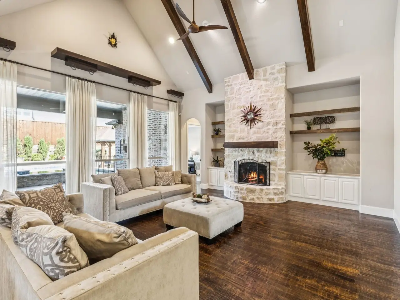 Experience timeless elegance and rustic charm in this extraordinary Pfiefer Custom Home, nestled in the heart of Saddle CreekProspers sought-after community. Inspired by the picturesque villas of the Italian countryside, the homes striking stone and brick faade sets the stage for refined living. Inside, rich hardwood floors, arched doorways, a dramatic winding staircase, exposed ceiling beams, and a floor-to-ceiling natural stone fireplace create a warm, inviting ambiance. This thoughtfully designed, multi-generational home includes a private mother-in-law suite, complete with a full kitchen and direct access to the sparkling pool and outdoor retreat. The chef-inspired kitchen is the heart of the home, featuring custom solid wood cabinetry, an oversized island with extensive storage (drawers on one side, cabinets beneath the bar), and two walk-in pantries. The open-concept layout connects the kitchen to a spacious great room, offering unobstructed views of the covered outdoor living area, fireplace, resort-style pool, spa, and cabanaperfect for year-round entertaining. Retreat to the luxurious primary suite with serene backyard views and a spa-like bathroom boasting a soaking tub, oversized walk-in shower, dual vanities, and an enormous walk-in closet. Upstairs, behind French doors, youll find a formal study with built-in bookcases and a walk-in closet. The second floor also offers three generously sized bedroomsincluding one with an en-suite batha private game room, and a dedicated media room. This one-of-a-kind home offers the perfect blend of functionality, beauty, and craftsmanship. Schedule your private tour today and experience the exceptional lifestyle Saddle Creek has to offer. Easy access to Prosper's shopping and dining district and the North Dallas Tollway.