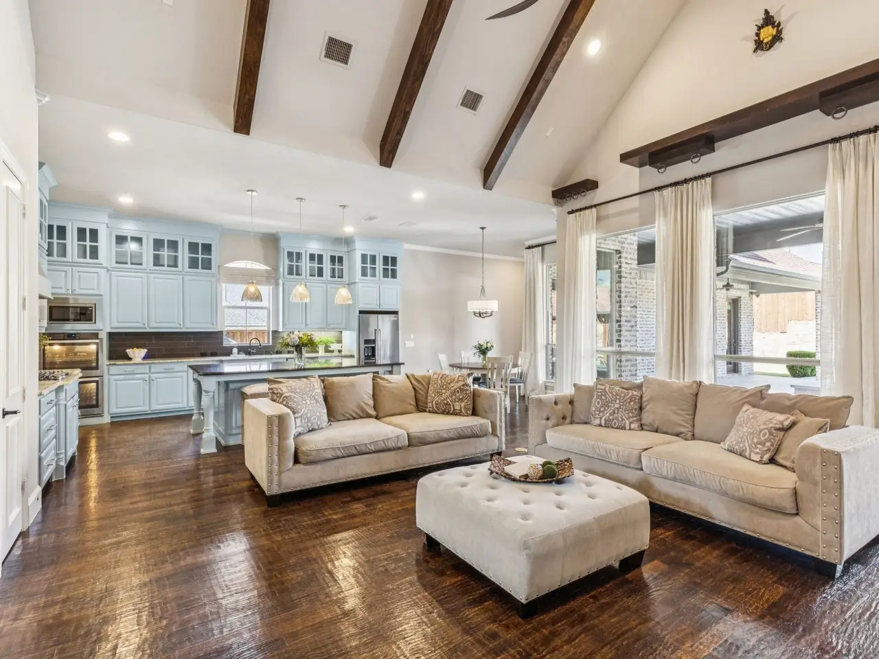 • Hardwood floors and exposed ceiling beams