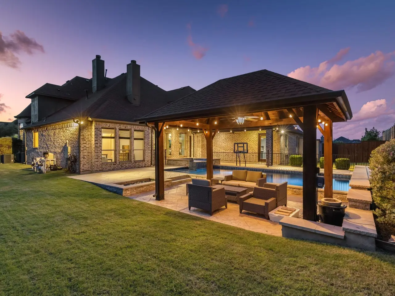 • Covered outdoor living area with fireplace