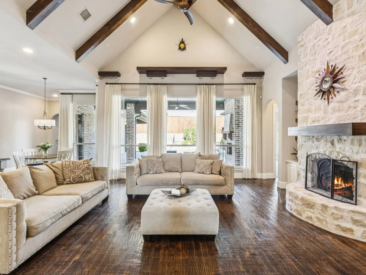 • Natural stone fireplace