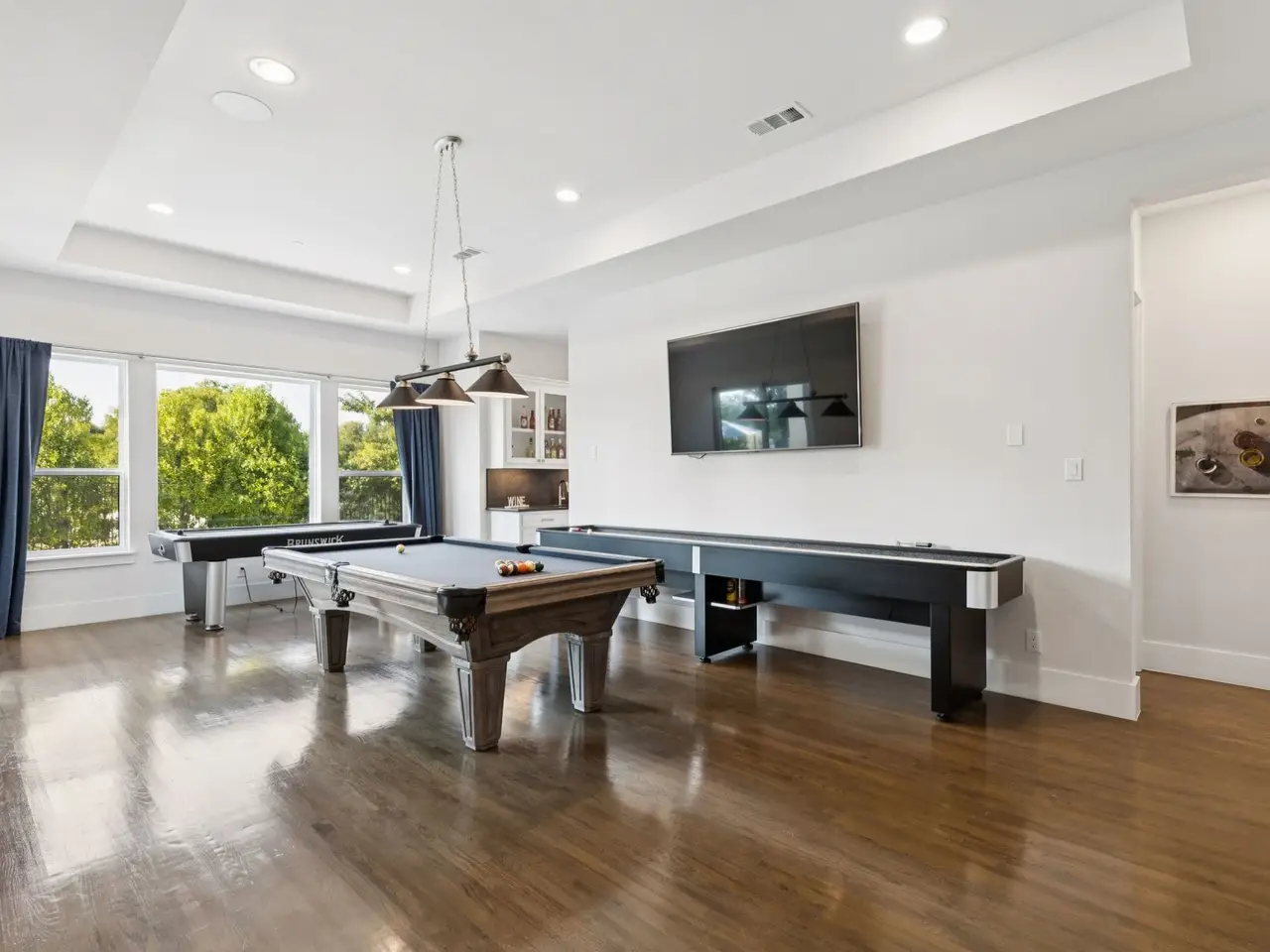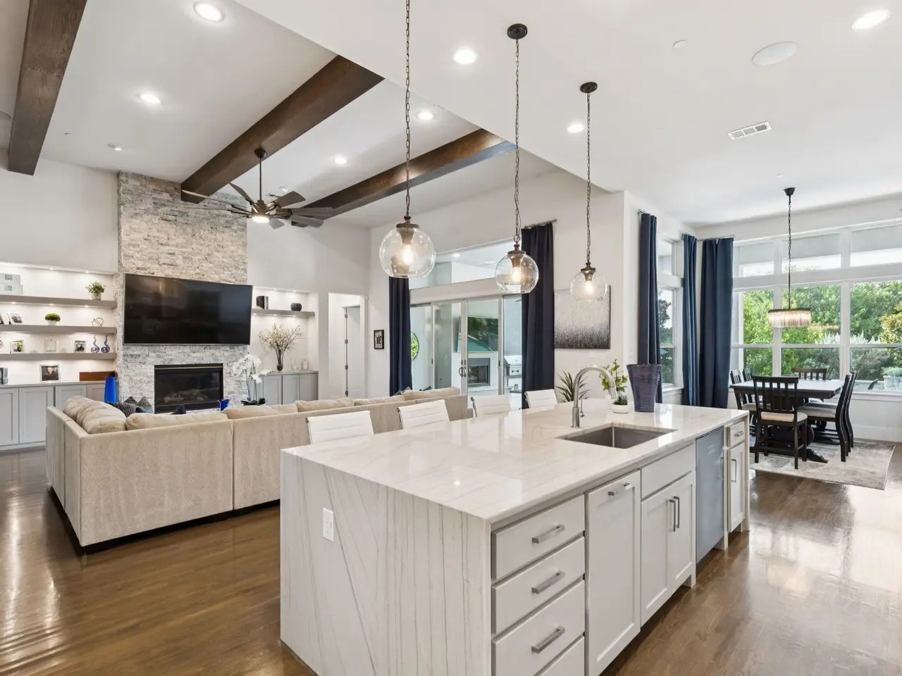 Luxury, comfort, and function come together in this stunning single-level custom home offering five bedrooms, a study, game room, media room, and two oversized two-car garages. From the moment you enter, soaring ceilings, rich wood floors, and expansive windows fill the home with natural light and set a tone of refined elegance. The heart of the home is the showpiece kitchen featuring a dramatic waterfall quartz island, professional-grade appliances, an oversized wine chiller, glass-front cabinetry for displaying your finest pieces, and a huge walk-in pantry. The open layout flows seamlessly to spacious living and dining areas, creating an ideal space for entertaining or relaxing with family. The owner’s suite is a private retreat with a spa-inspired bathroom boasting a walk-thru shower, stand-alone soaking tub, and two large walk-in closets. Secondary bedrooms with ensuite baths, are generously sized, offering comfort for family or guests. Step outside to your own private resort. A gorgeous pool and spa with water features, dramatic fire bowls, and a state-of-the-art water chiller ensure perfect swimming temperatures year-round. Enjoy evenings by the fire pit or gather under the expansive covered patio with its own fireplace and built-in grill. Every detail of this home was designed for both beauty and function inside and out. Located in an upscale boutique community in the highly sought after Prosper ISD. Close to shopping, dining and minutes from the PGA, this property delivers an unparalleled lifestyle for the discerning buyer.