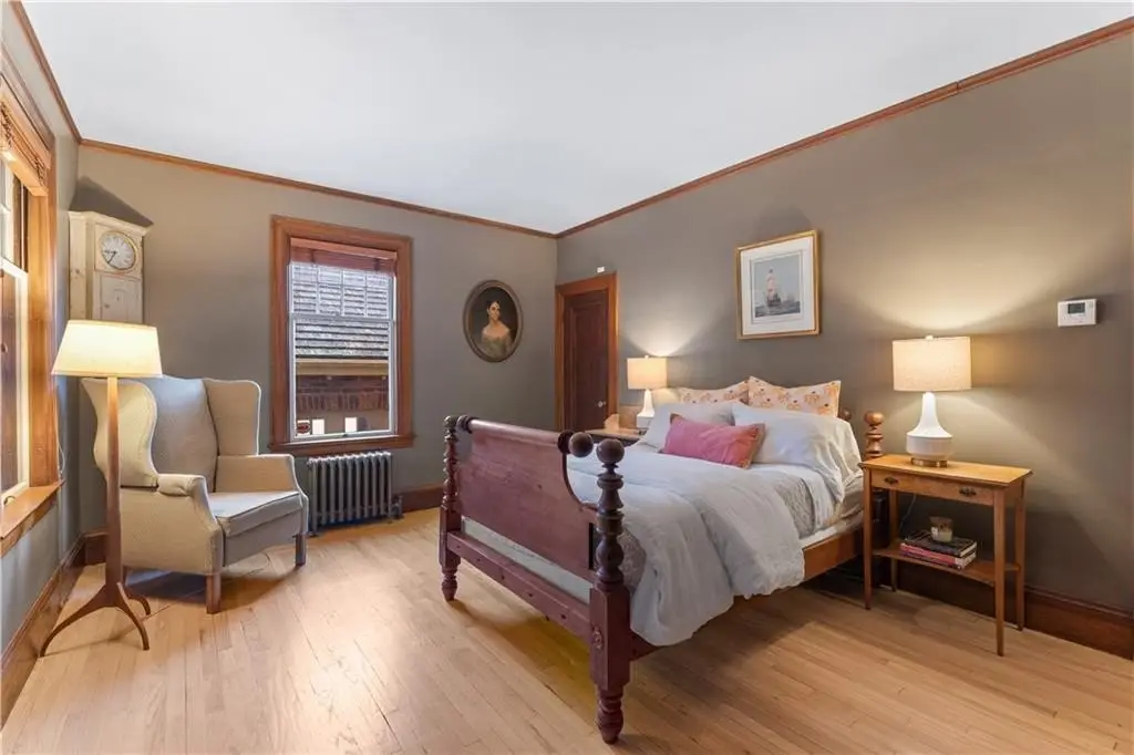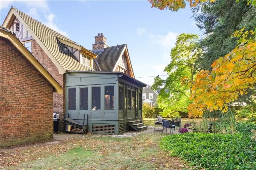 Enjoy cozy evenings in front of your fireplace in the 1928 Auger House, a 1-1/2 story red brick Tudor Revival style cottage with such original features as diamond-patterned windows, newly refinished oak floors, and period built-ins. The charming entry vestibule leads to a living/dining room with bay window and coffered ceiling that instantly transports one to another time. A breakfast room extends the original tiled kitchen with alcove stove. A ground floor bedroom with attached 3-season porch and a full bathroom complete the first floor. The second floor offers 3 more bedrooms and a full bathroom. The partially finished basement includes 400 SF of usable space, currently outfitted as a recreation room perfect for game nights, movies with friends, or binge-watching the latest season of your favorite shows. A plumbed sink and mini-fridge offer opportunities for entertaining. Nearby is the laundry room and several storage rooms. Just off the kitchen is a two-car garage with radiant heated floors. Located on Providence's popular East Side, you are within an easy walk of Hope Village’s shops and restaurants, Blackstone Boulevard, and the Summertime Saturday farmer’s market in Lippitt Park. Although you could just as easily stay home, enjoying a verdantly-landscaped double lot with koi pond.