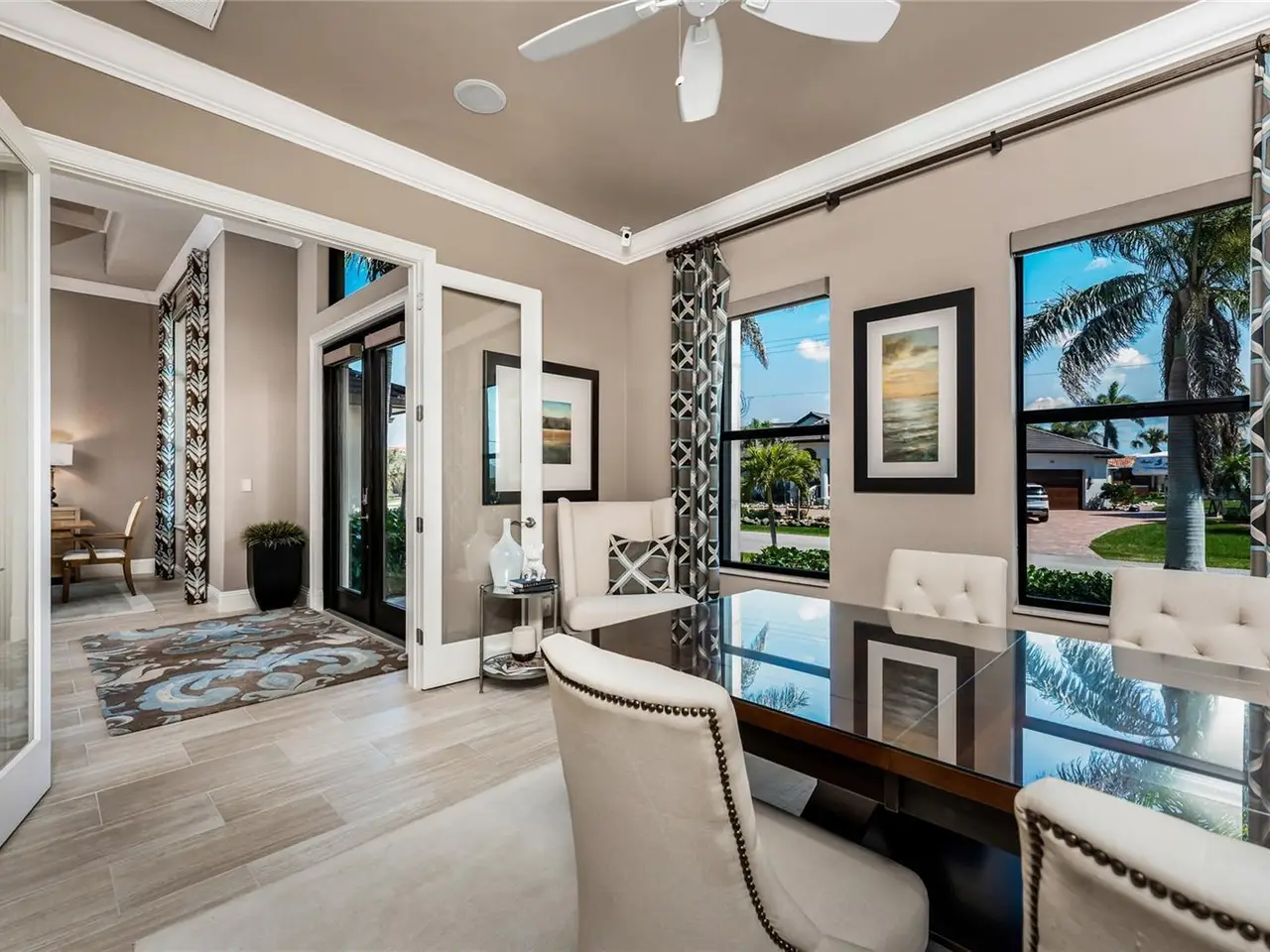 • Soaring ceilings with crown molding