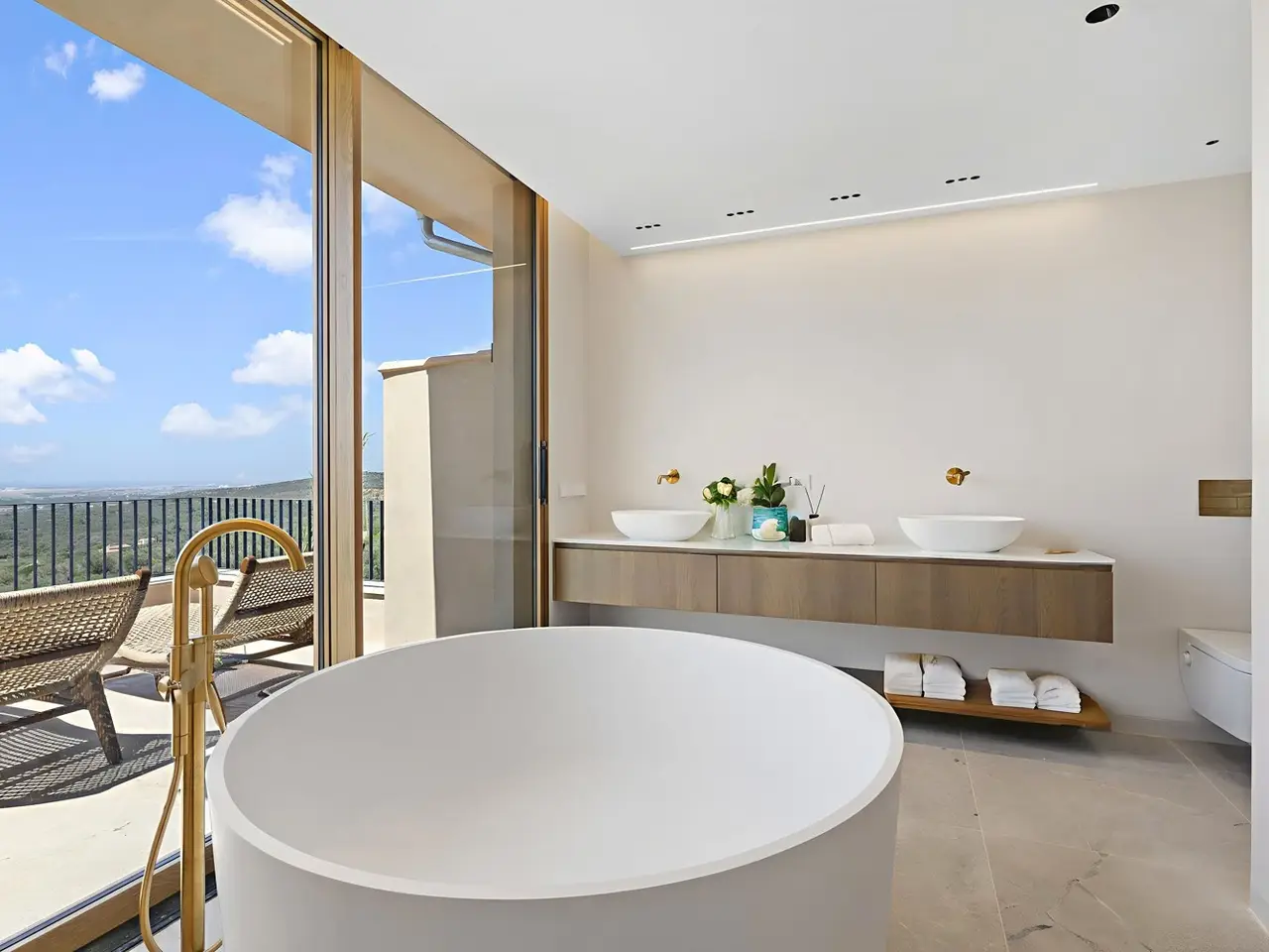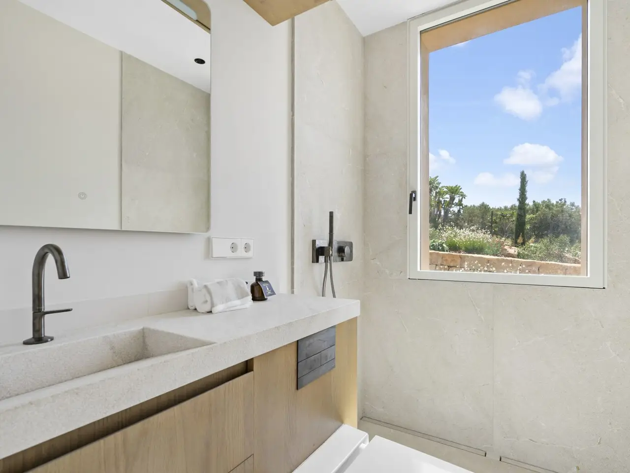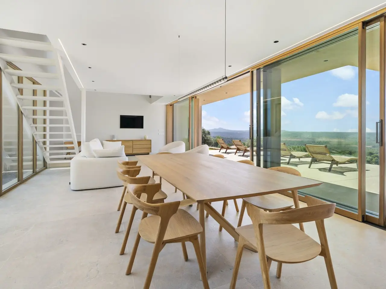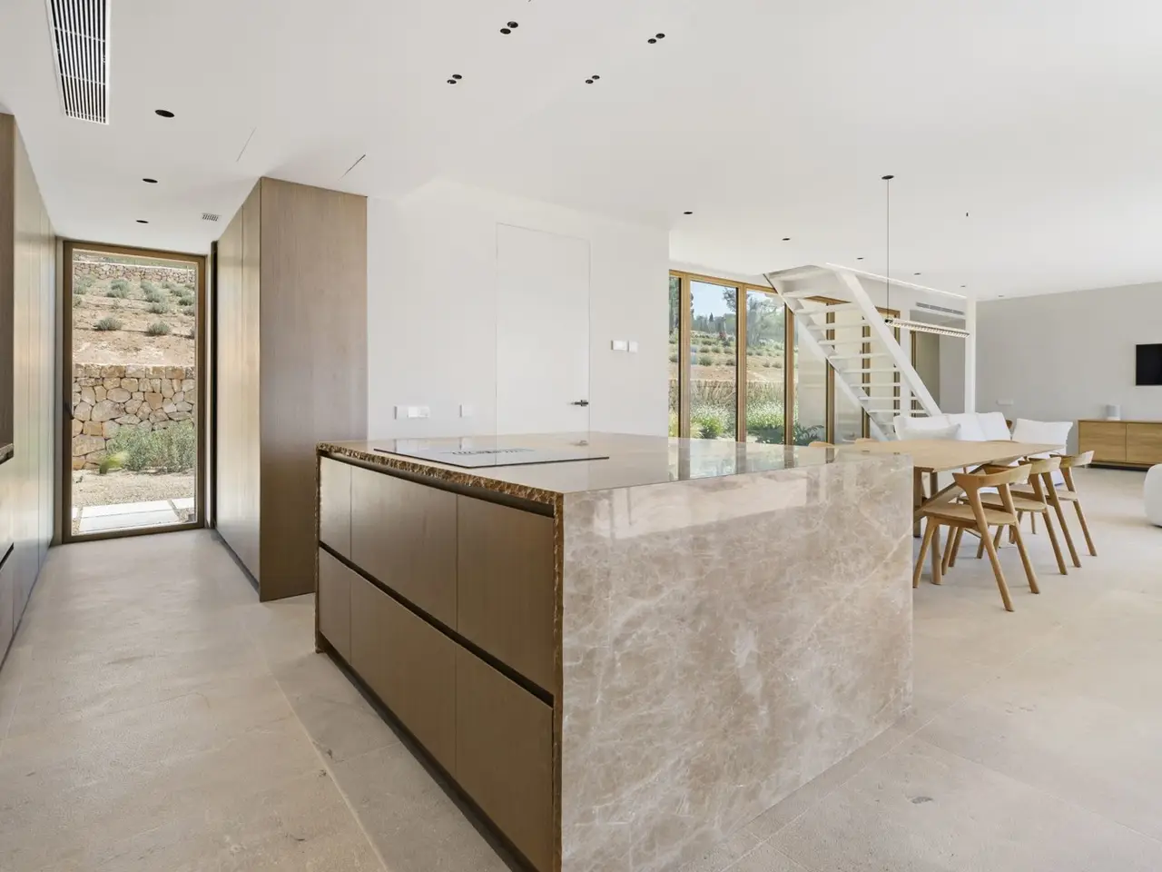 Magnificent House on a Plot of Approximately 7,200m2, Just 8 Minutes from Santa Maria del Camí. This modern and minimalist design house with top-quality finishes will not leave anyone indifferent. Distributed over three levels and located on an elevated plot, it offers unobstructed and unique views of the Mediterranean countryside, the center of Mallorca, and even the sea. The house boasts ample space, hosting a living-dining room with access to the outdoor area with garden and fabulous pool, a kitchen, 3 bedrooms with en-suite bathrooms, as well as a pantry and an office. The living room is filled with natural light from both the interior and exterior of the house. On the upper floor, there is the master bedroom with luxury bathroom, dressing room, and 2 terraces. There is also a spacious area in the basement that can be used as a private spa zone with gym, sauna, or Turkish bath. As an extra, the house includes: underfloor heating, air conditioning, high-end kitchen appliances, natural stone floors, sliding shutter windows, double glazing, rainwater tank. A great opportunity for all types of buyers, even the most demanding! For more information, please contact us.