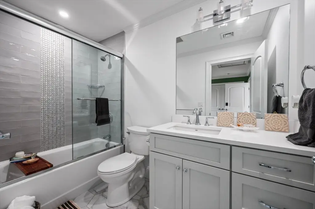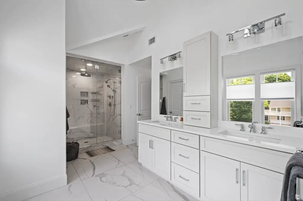 Located on the beautiful peninsula of Squantum and only 7 miles from Boston, this stunning 4+ bed, 5.5 bath open-floor plan home with top-tier finishes includes a gourmet kitchen with oversized pantry, gas fire place, home office, laundry, half bath, and a large deck-perfect for entertaining. A hot tub was recently added for ultimate relaxation! Both floors offer opulent primary en-suites. The 2nd floor en-suite with water/city views, includes a private balcony, his/her walk-in closets and a spa-like bath. All bedrooms have their own luxurious bathroom. An additional laundry room is located on the 2nd floor. A "bonus" room above garage with full bath and private entrance, can serve as a guest quarters, an au-pair suite or game room. The finished basement includes a gym with treadmill & TV. Two garage bays attached to the home with 2 additional bays in a detached structure. Professionally landscaped with custom exterior lightening. A rare opportunity in a coveted seaside neighborhood!